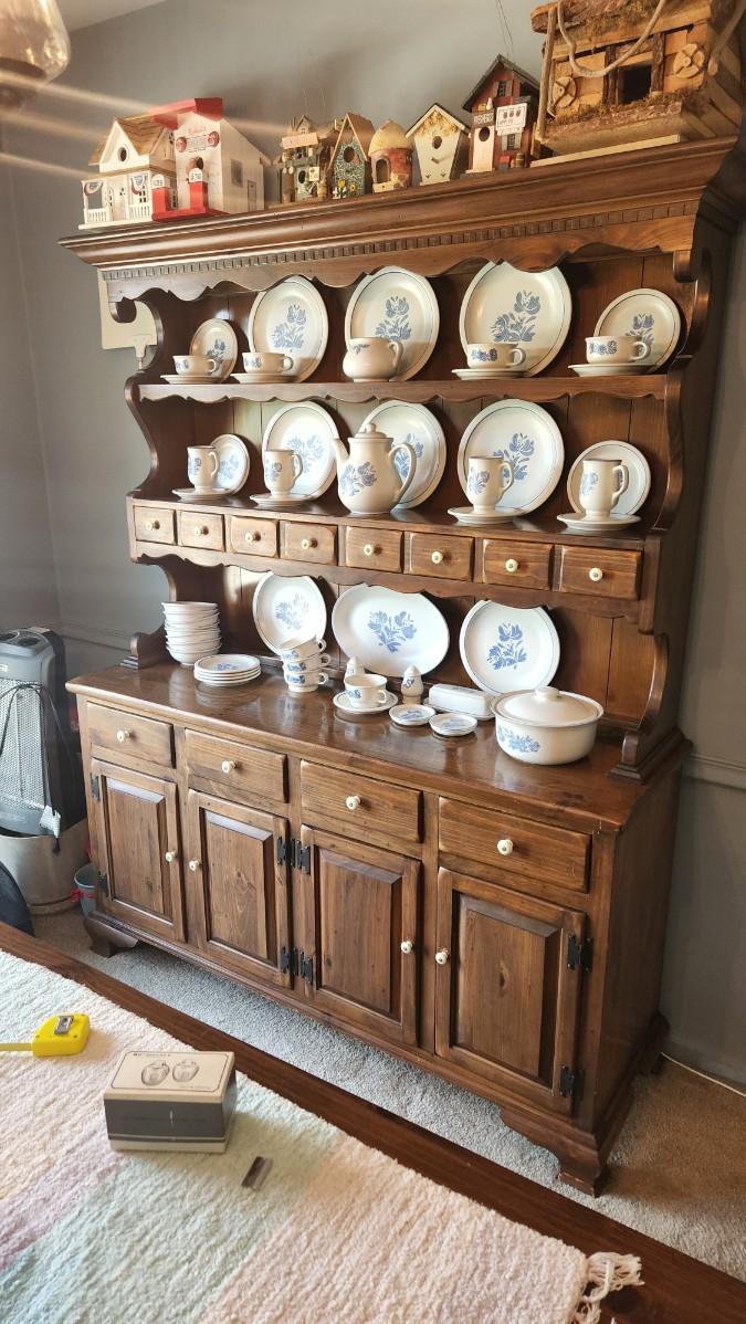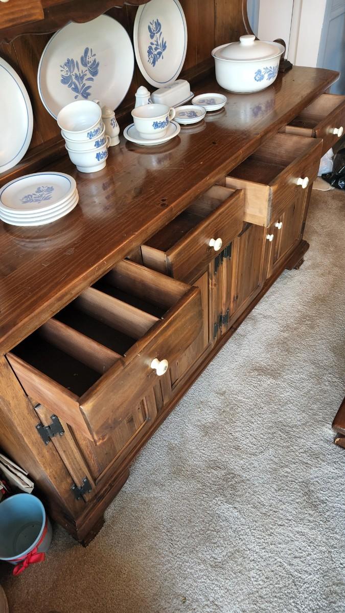 Ethan Allen Old Antiqued Pine Solid Wood China Hutch