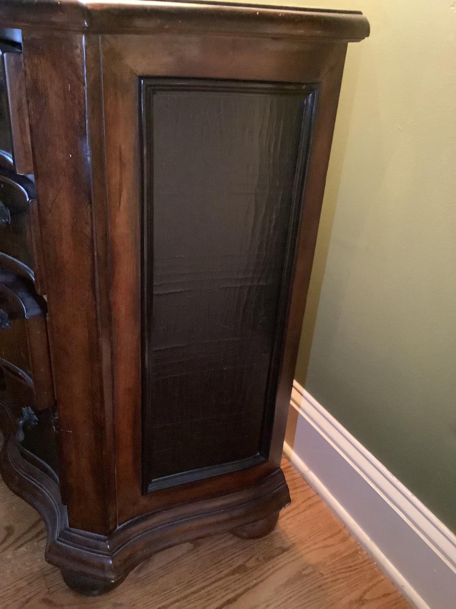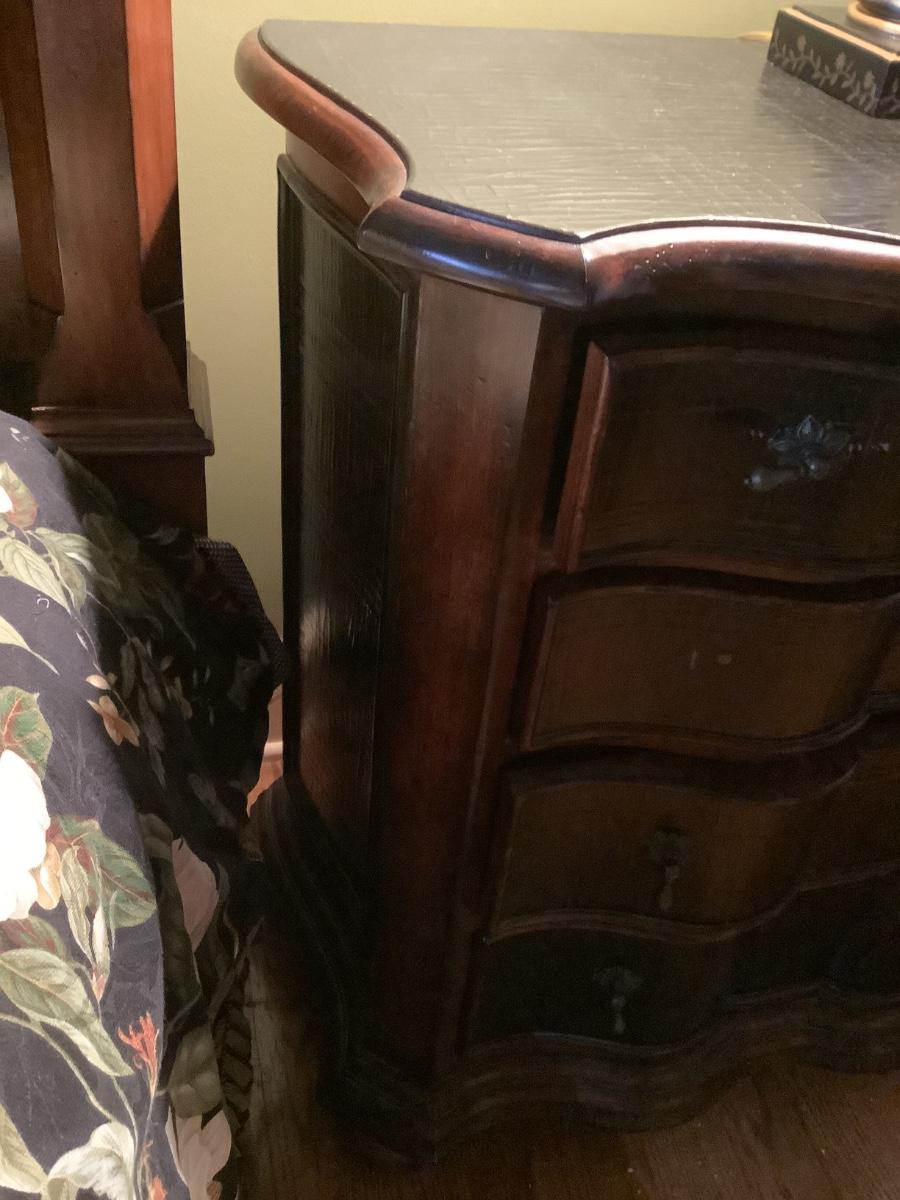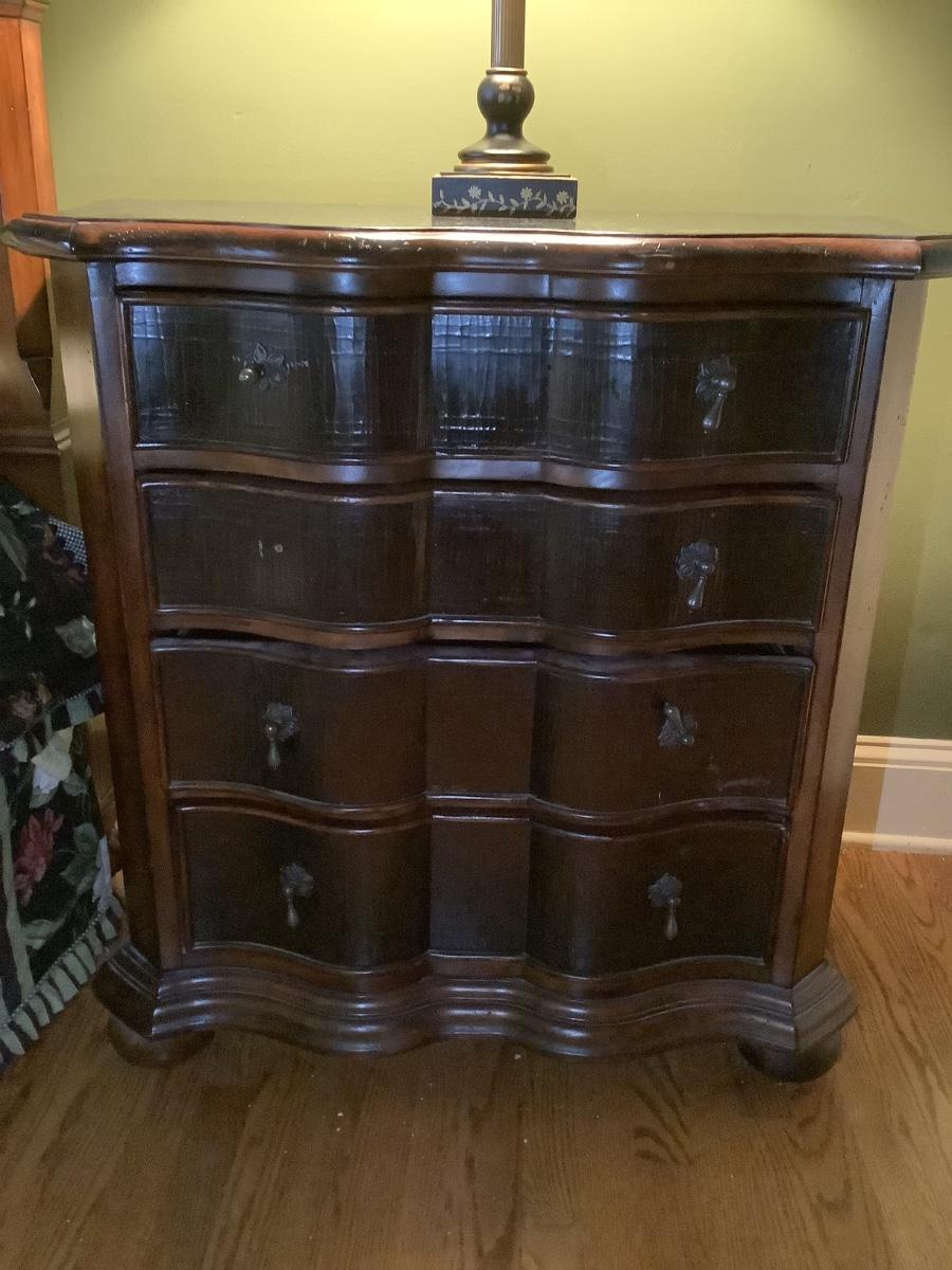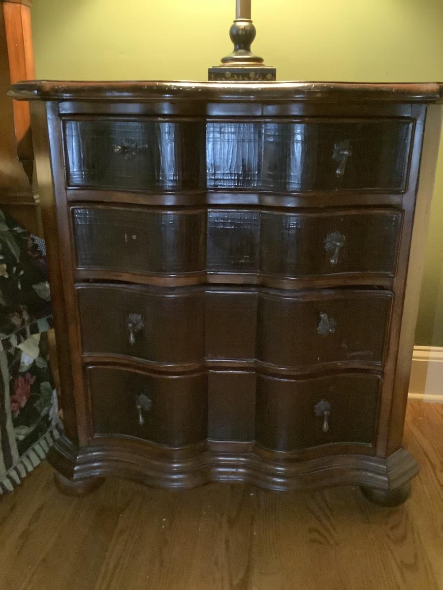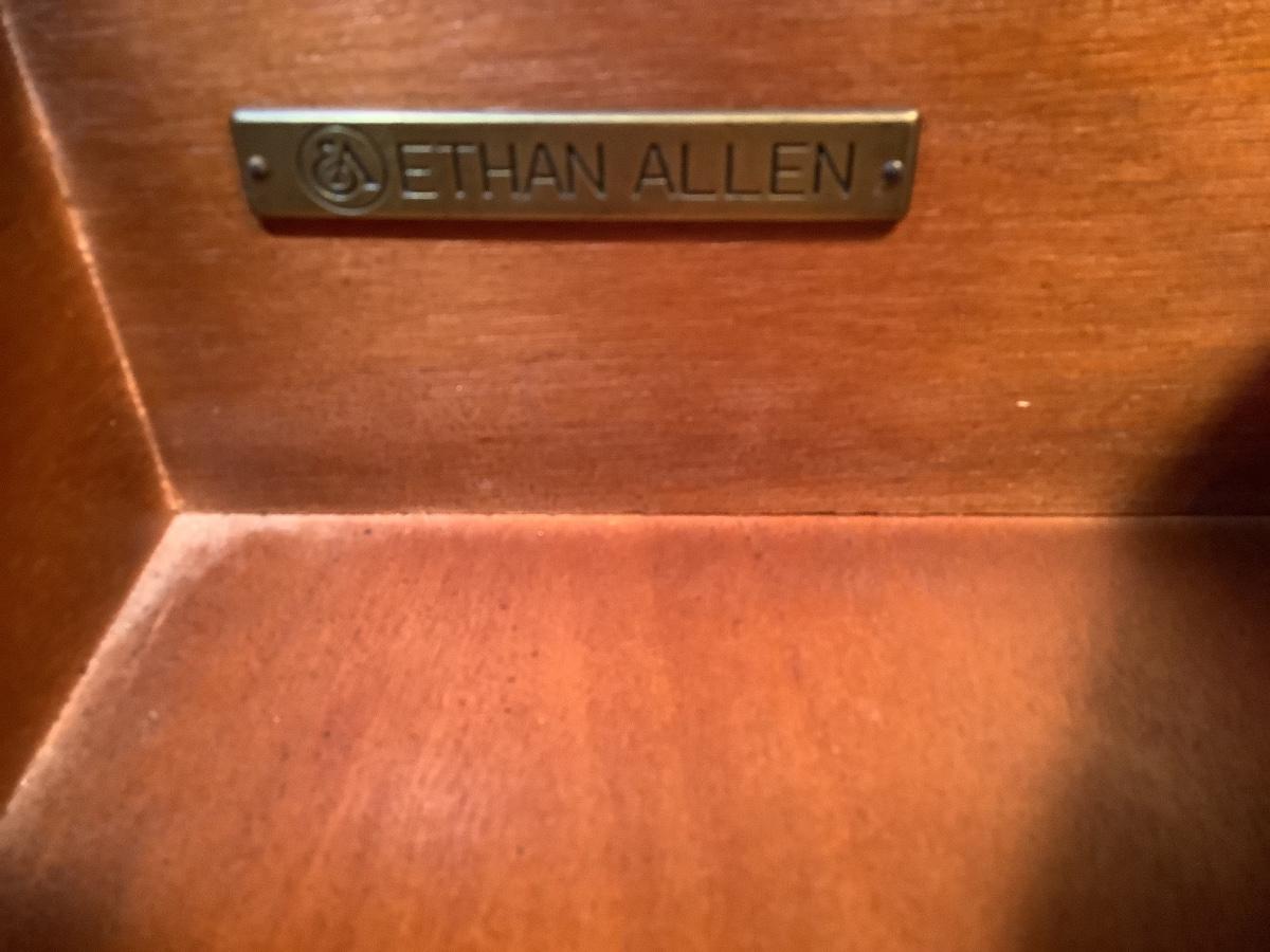 Ethan Allen painted nightstand, crackled top, front, sides- bronze pull knobs- ball feet (there are 2 in the auction if you would like a pair)