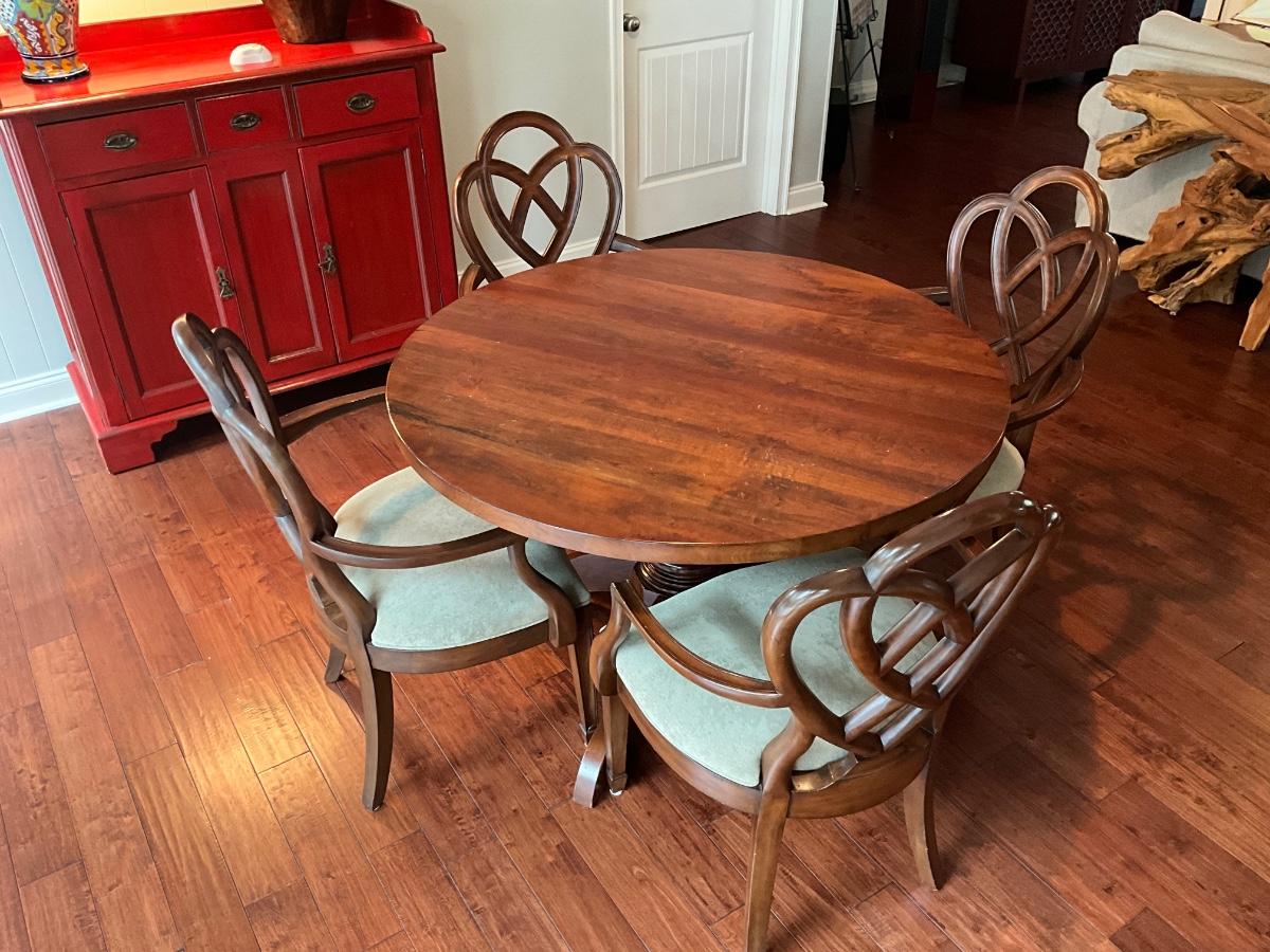Custom Made Pedestal Table And Ethan Allen Ribbon Back Armchairs