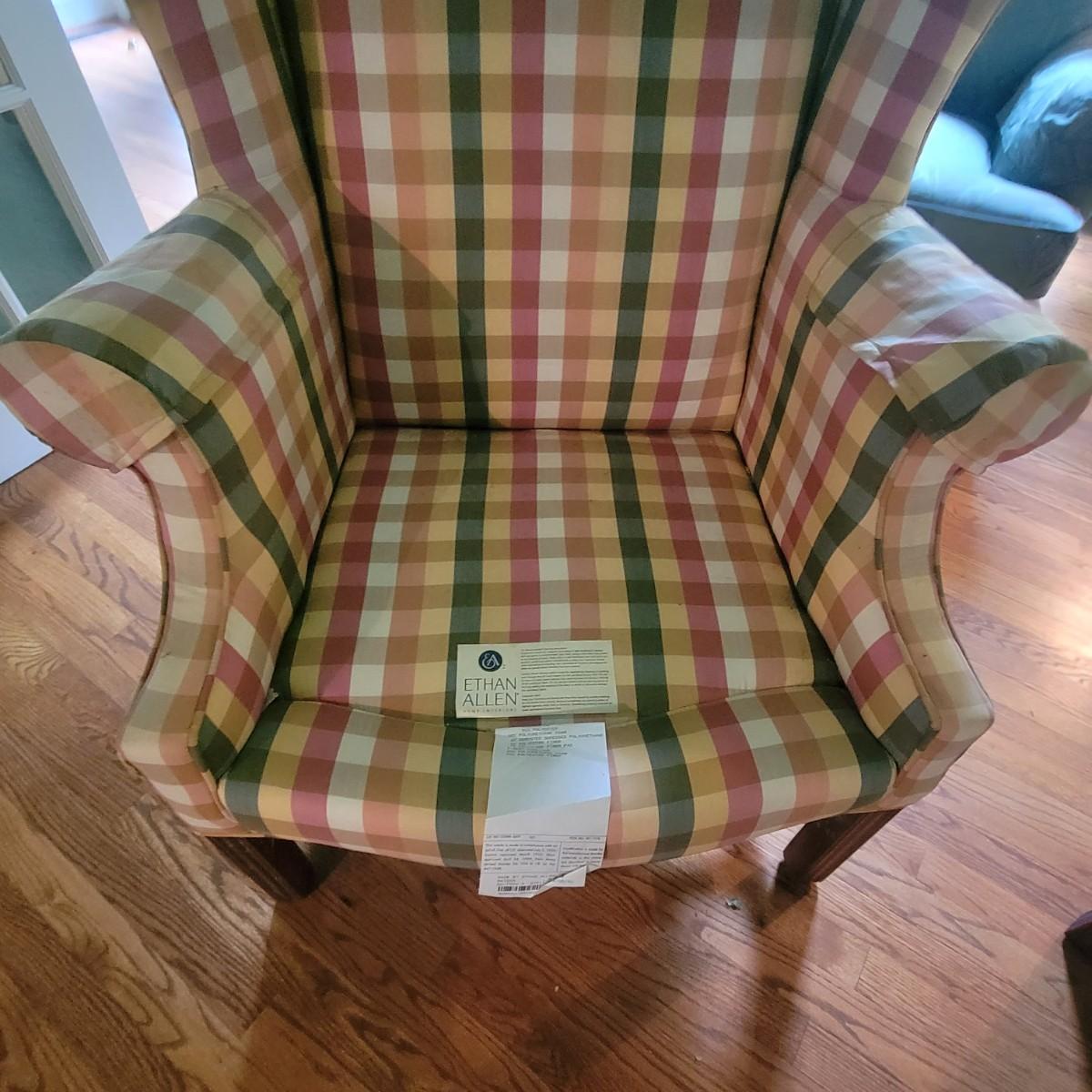 Ethan Allen Plaid Wingback Chairs (LR-DW)