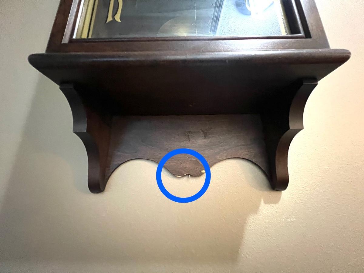 ETHAN ALLEN REGULATOR KEY CLOCK Measures 29 1/2 inches tall, 15 1/2 inches wide and 6 1/2 deep. Blemish on the bottom, middle part of the clock, see pictures.