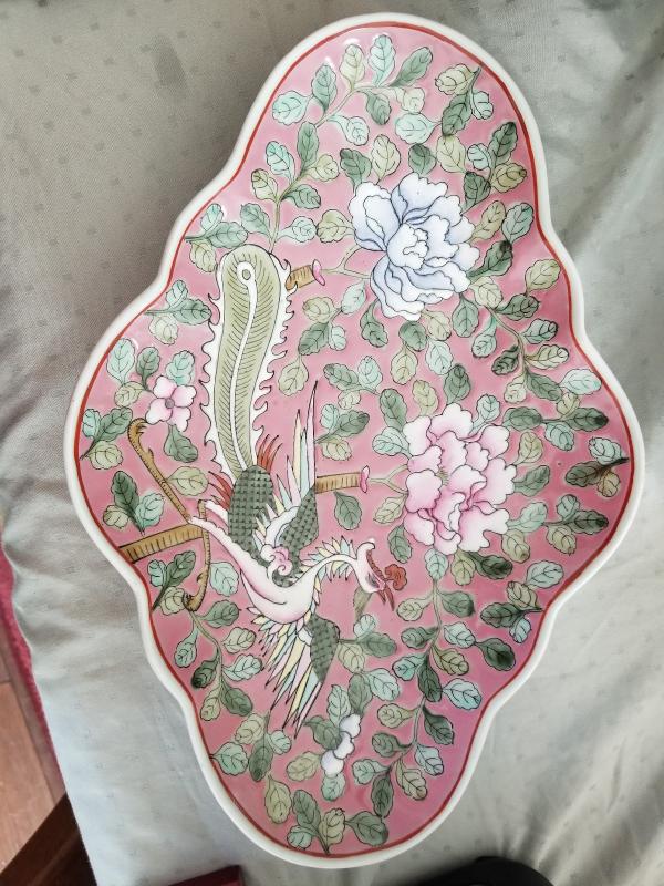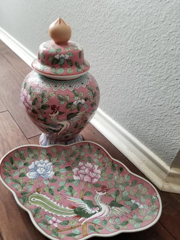 beautiful Ethan Allen vase and platter set. Vase approx. 12" tall and the platter measures approx. 12"x9".