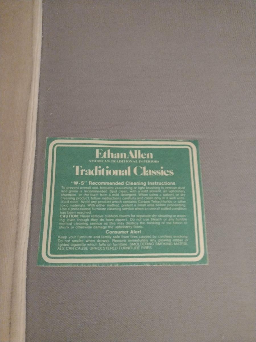 Ethan Allen Sofa- Approx 78" Long. Item stored within feet of driveway for easy and quick load.
