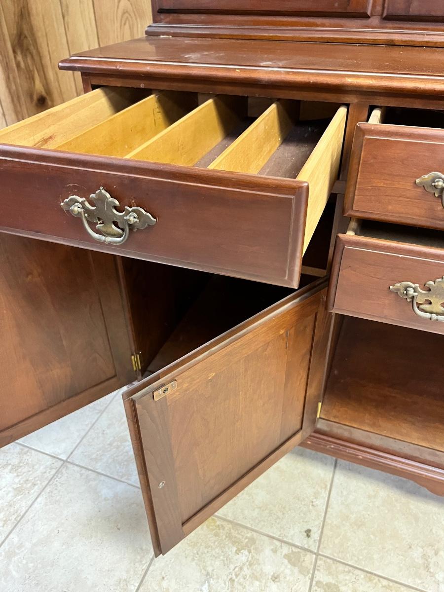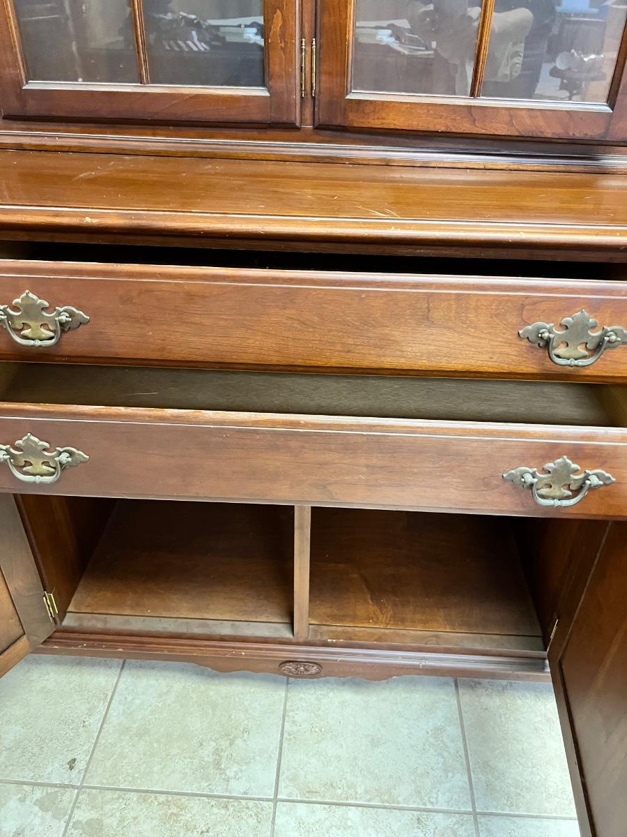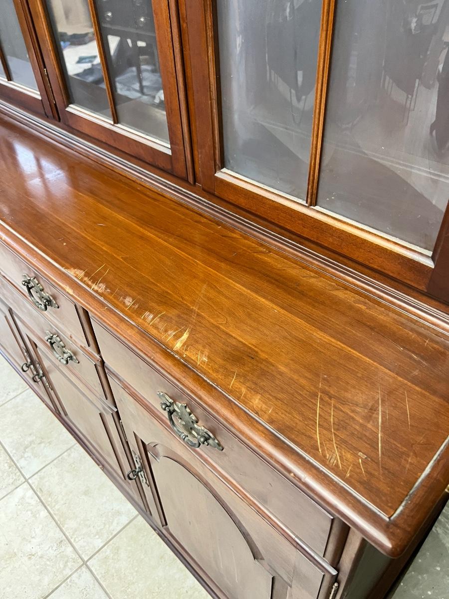 2 pieces totaling 78” tall. Scratches as shown in pics but a good solid quality piece. NOTE: PICK UP ONLY IN DUNKIRK MD.