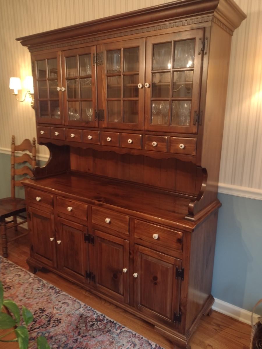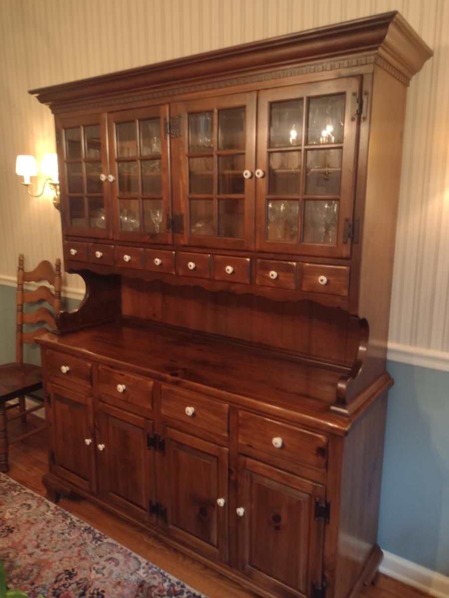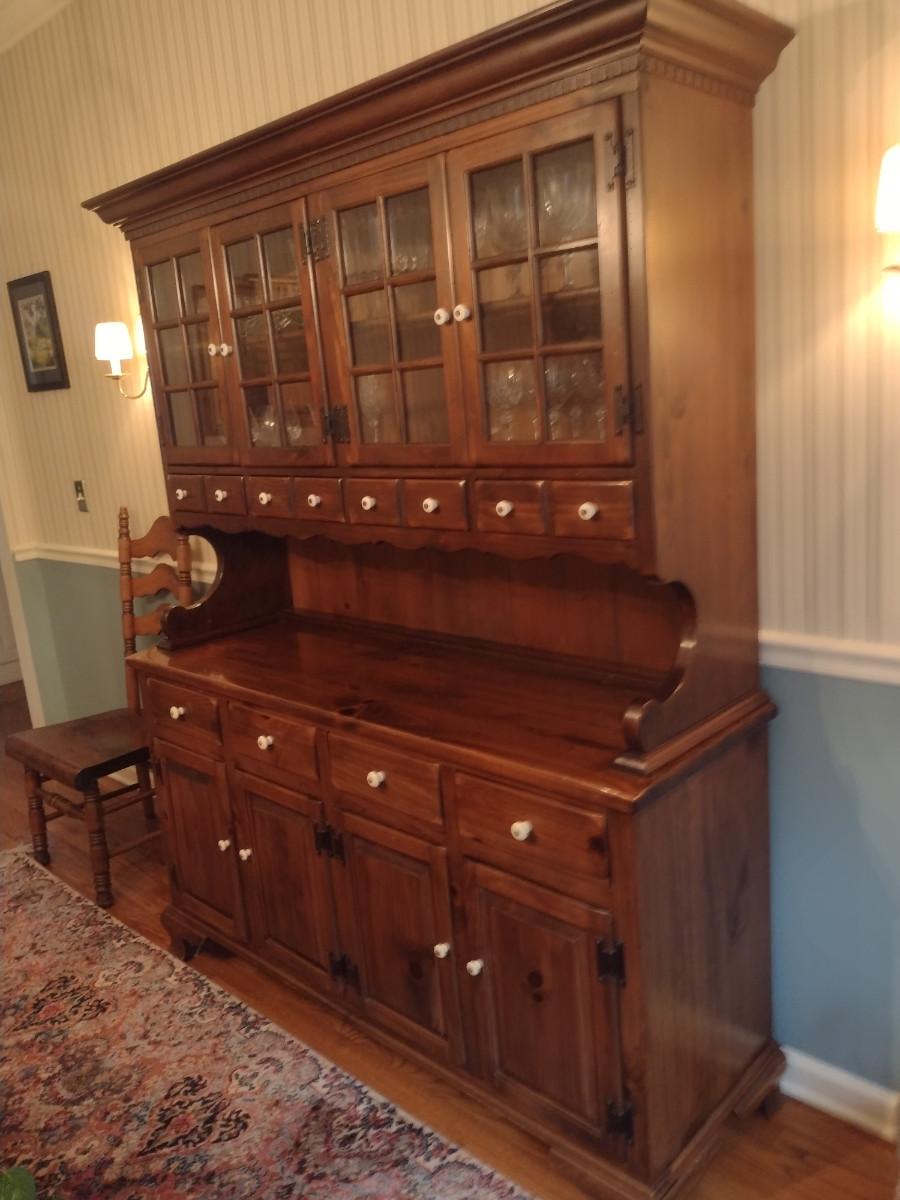 Ethan Allen Solid Wood Dining Room Hutch Buffet- Approx 59" Long. No contents included. Item has been repaired- please see all pictures for repair area.