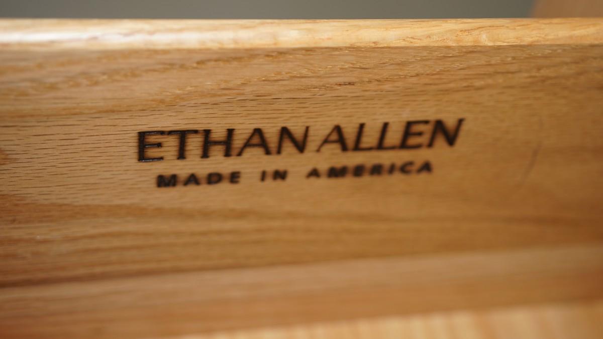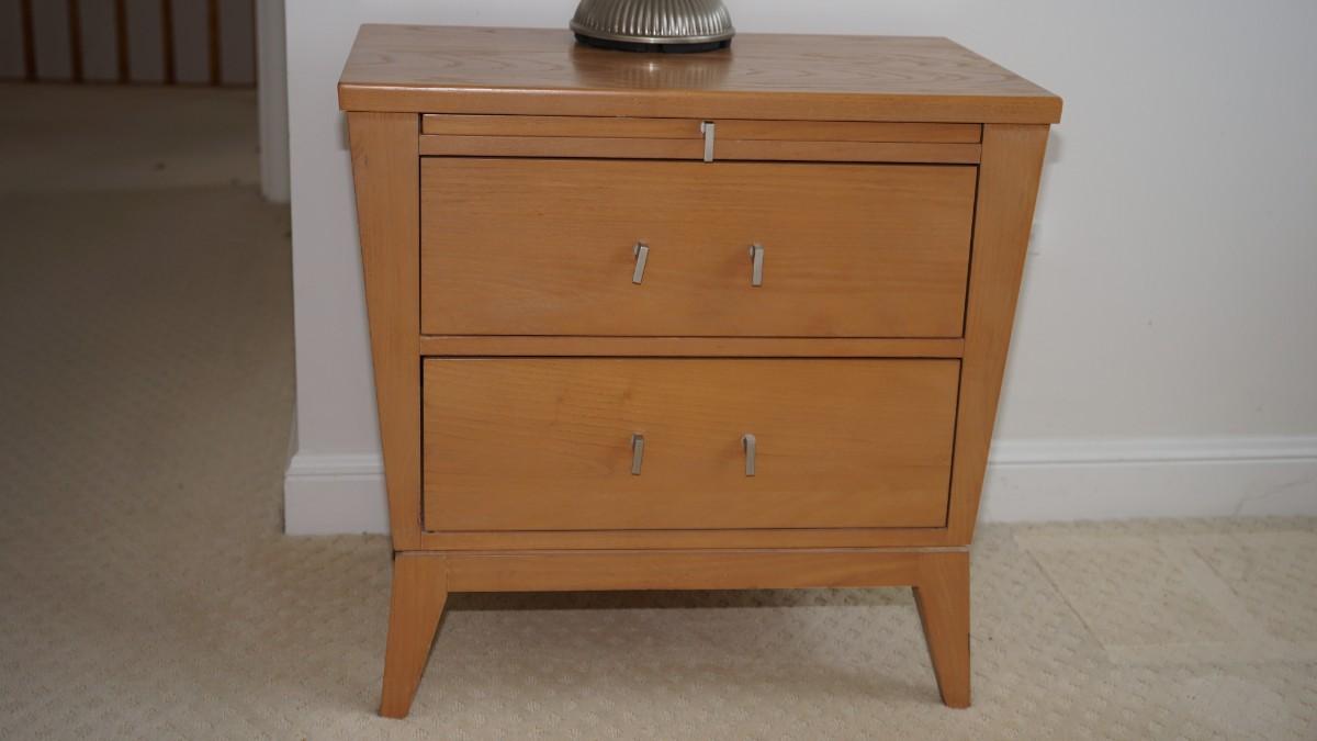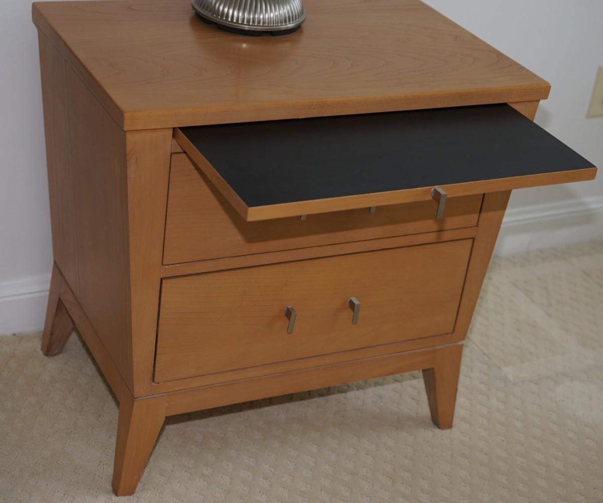ETHAN ALLEN TWO DRAWER / PULL OUT TOP SHELF OAK MODERN STYLE END TABLE