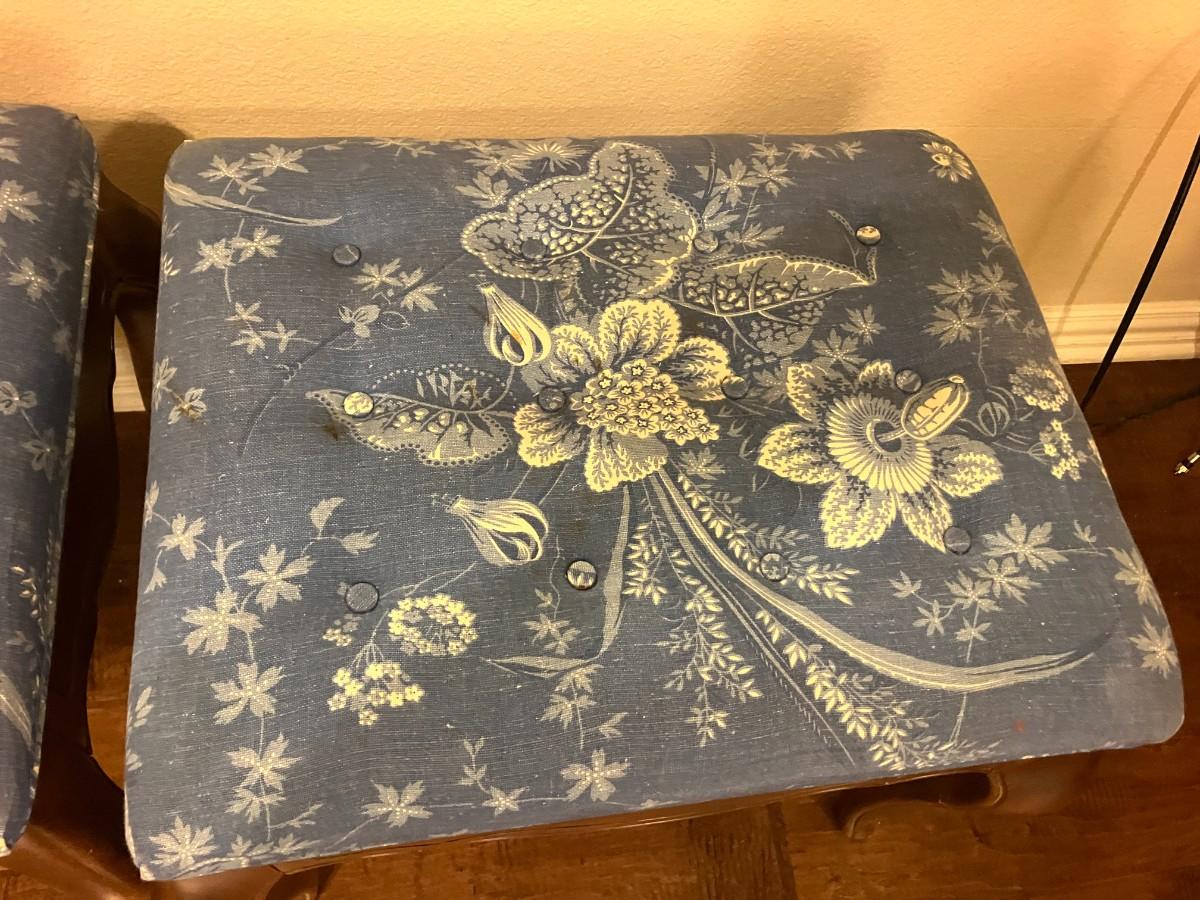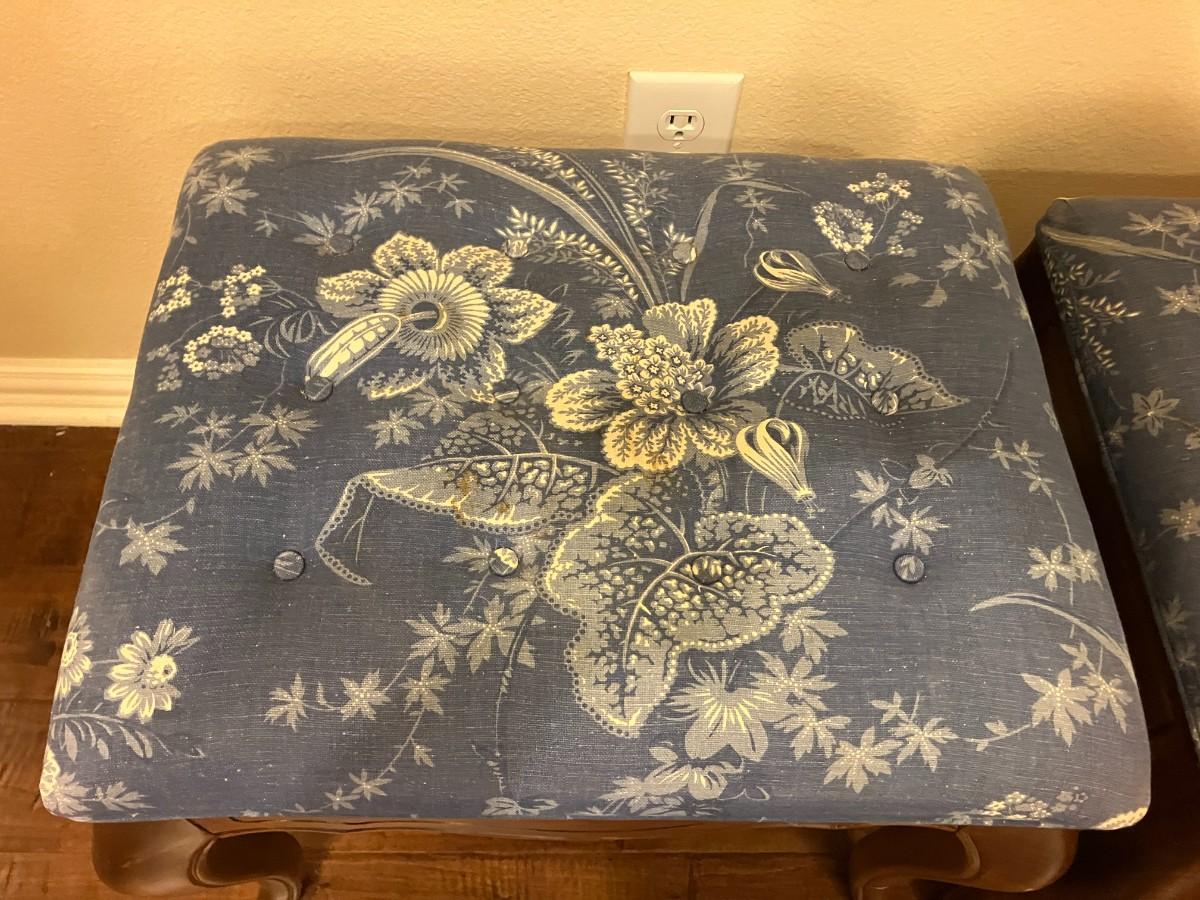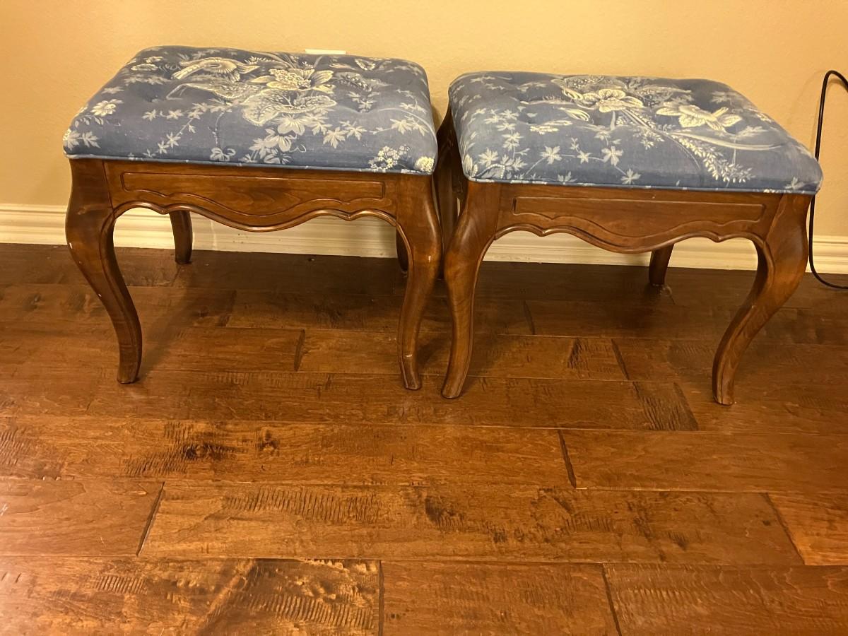 Pair of upholstered Late 20th Century Ethan Allen attributed ottomans. 17" H x 20" W x 17" D