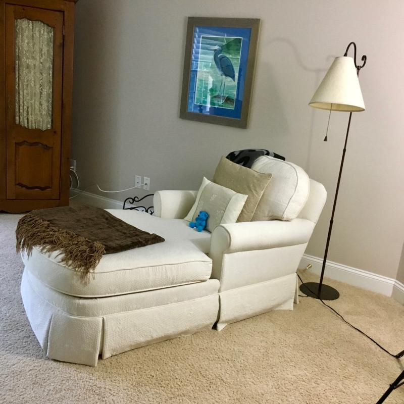 Off white Ethan Allen "Victoria" Chaise Lounger. ***DIMENSIONS: 52" L X 29" T X 33" W | CONDITION: Very Good*** Local pick up only, Newtown CT