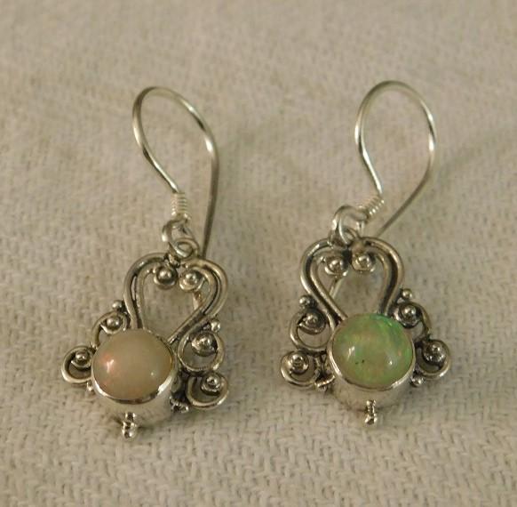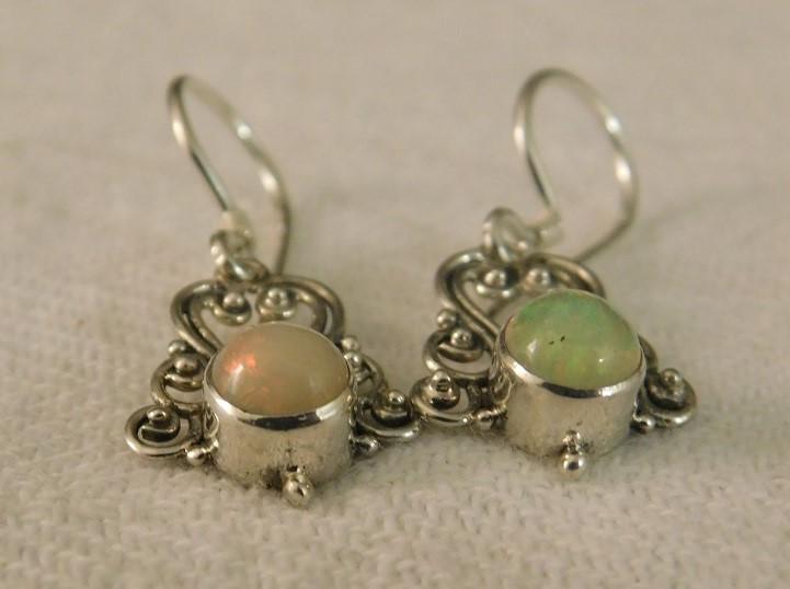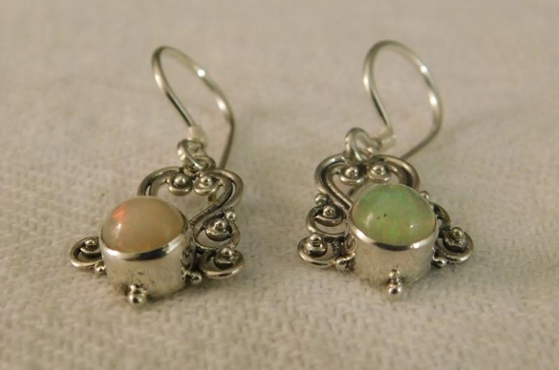Ethiopian Welo Opal Earrings with Artisan Crafted Sterling Silver Setting