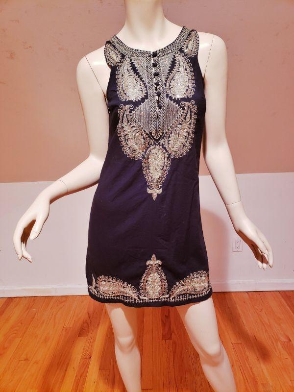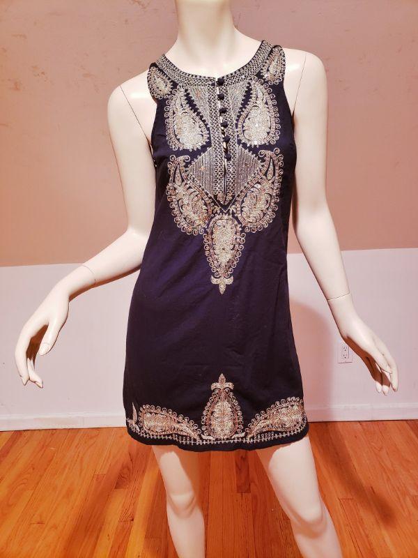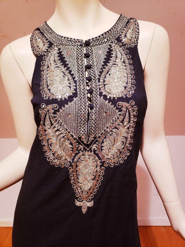 This one is a beauty all Ethnic Gold Embroidery. On a Short Tunic Dress or long Tunic Top,