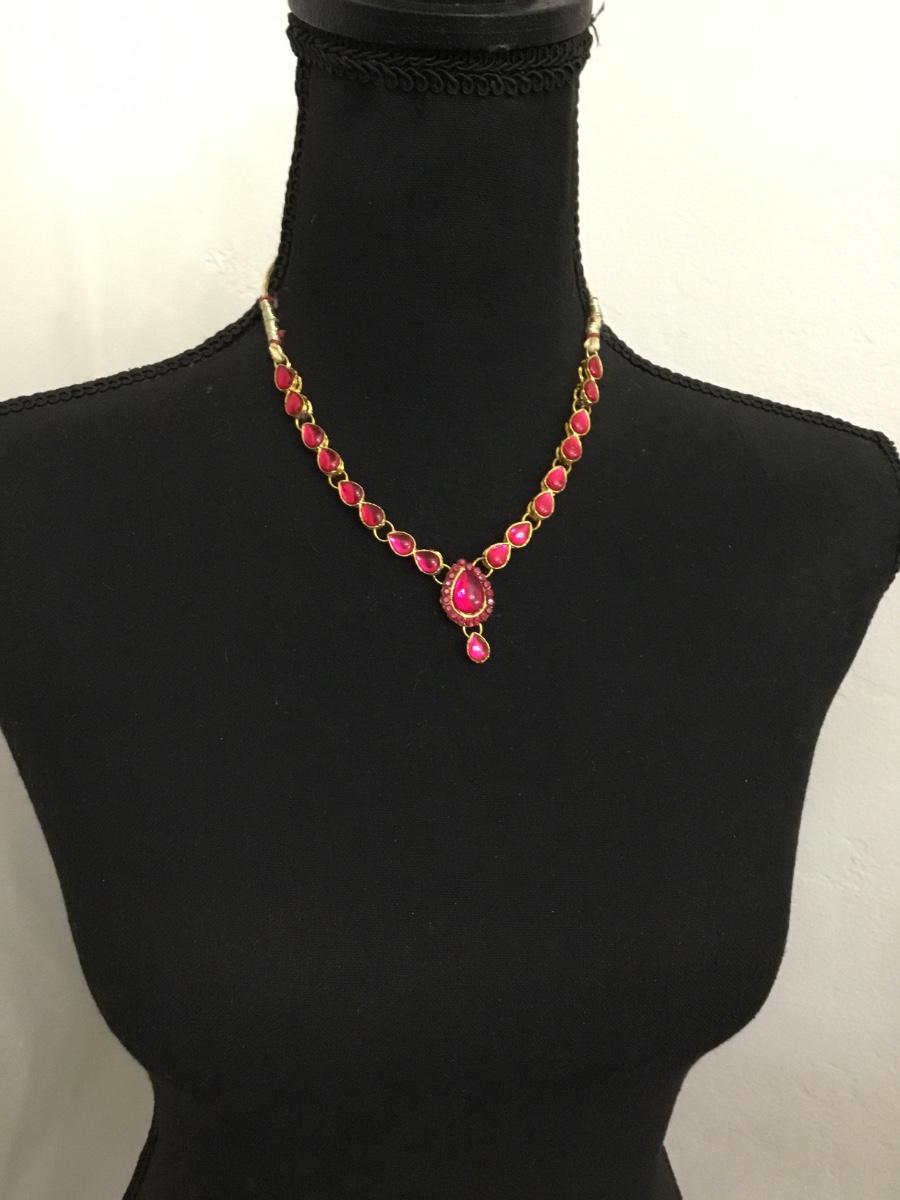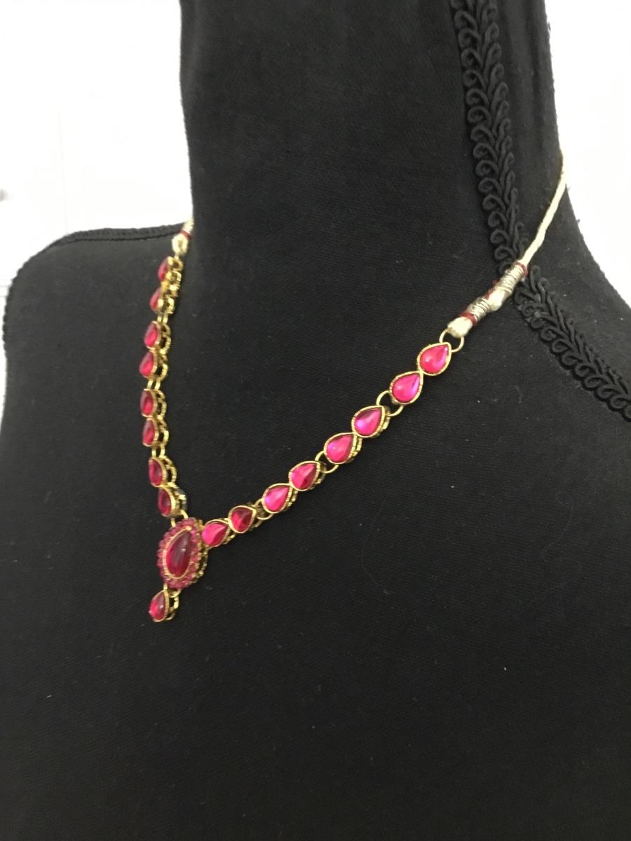 Ethnic, pink, rhinestone, goldtone necklace