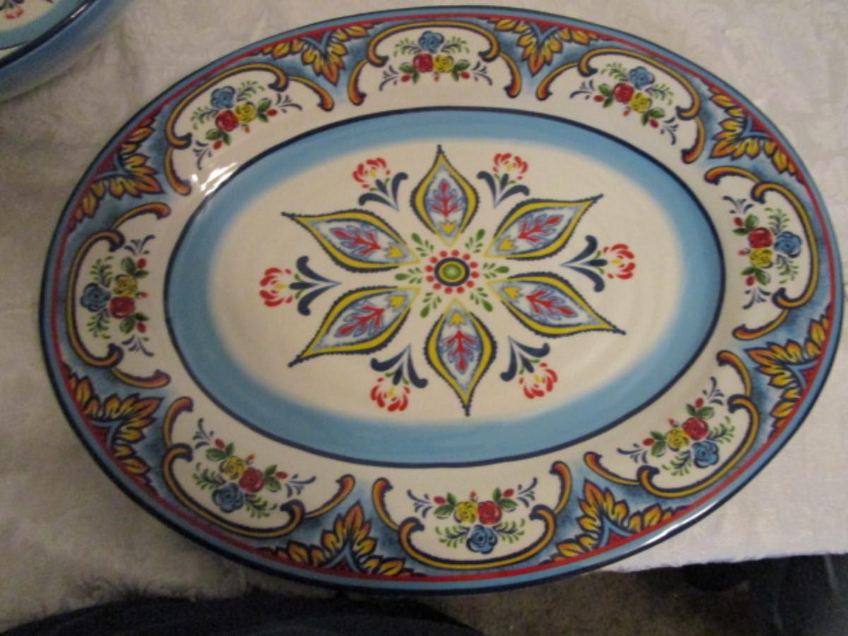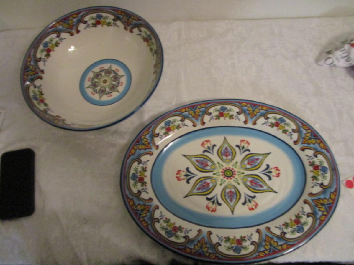 New with stickers, microwave safe, dishwasher safe, Large bowl & platter