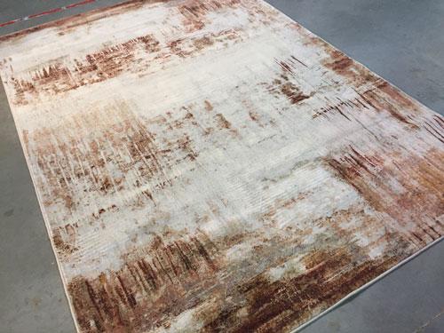 7x10 Decorative Contemporary Design Brand Name Rug, in Tan, copper and terra cotta Multi Colors made of Durable and easy to care , Polypropylene Pile ,Premium dense and high resolusion Quality Power Loomed in Belgium.