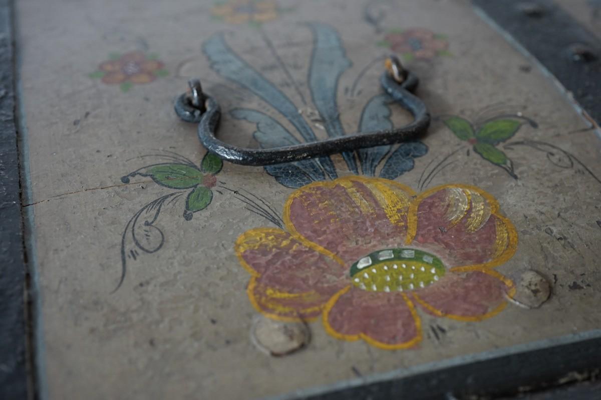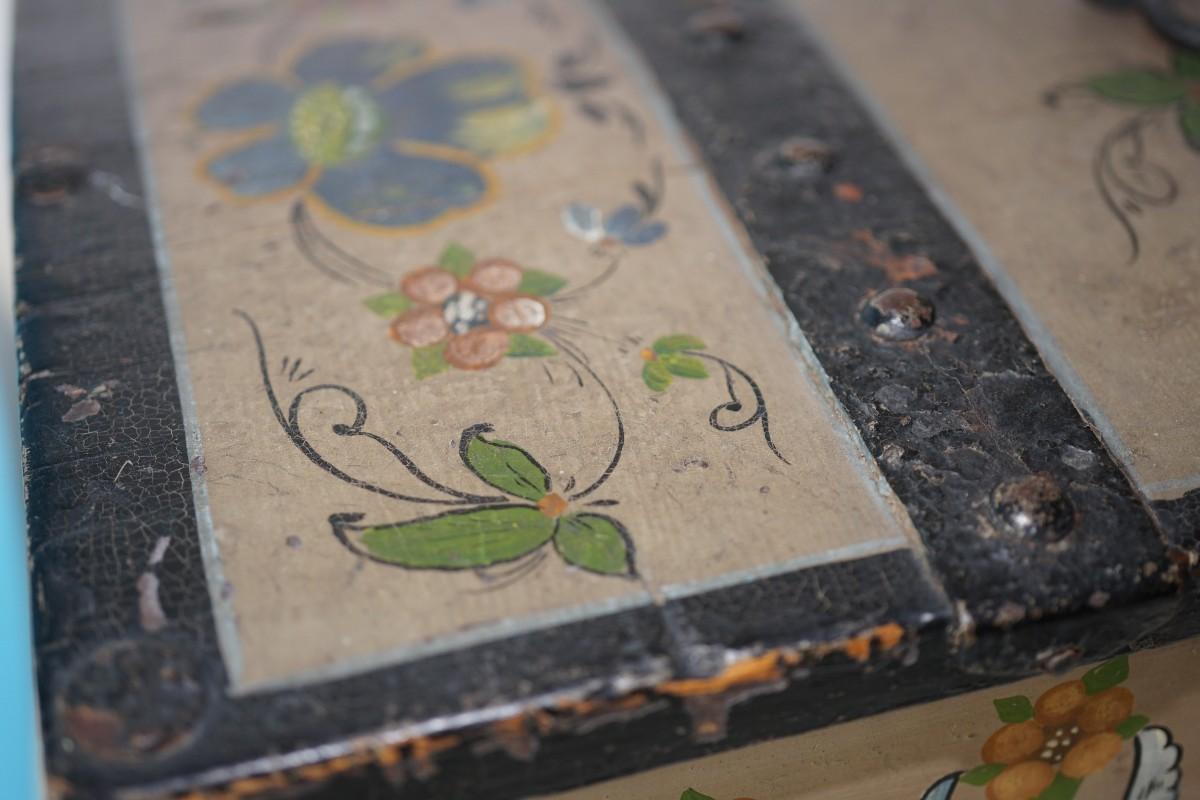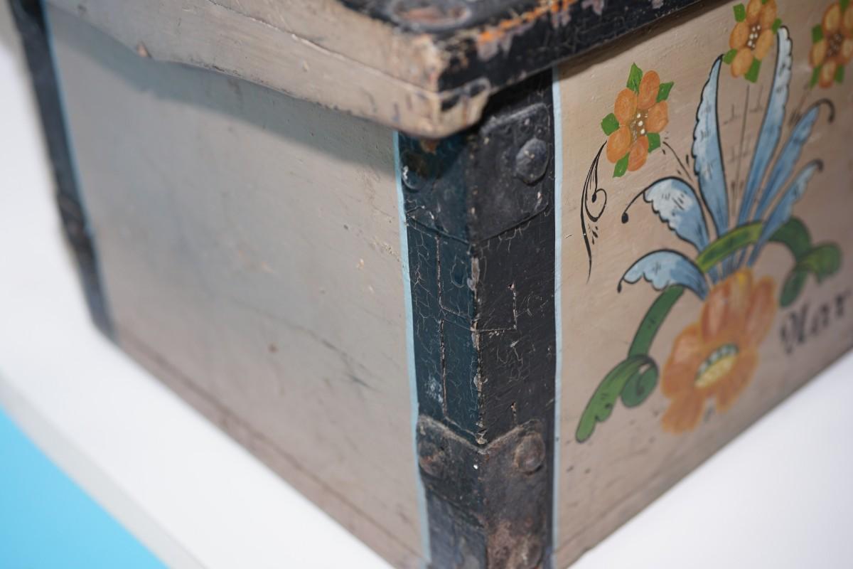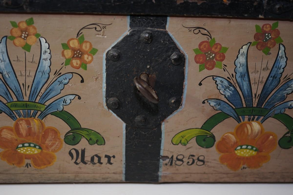 EUROPEAN HAND PAINTED TRAVEL CHEST DECORATED /DATED 1858