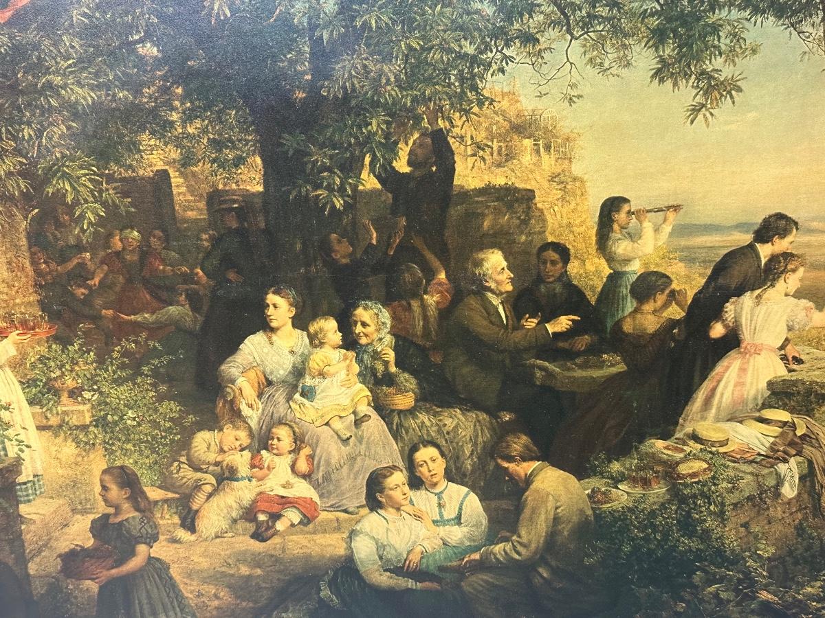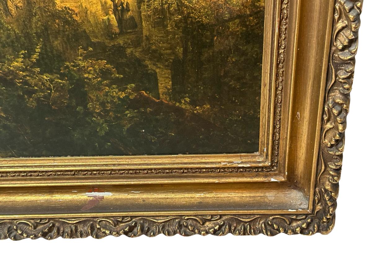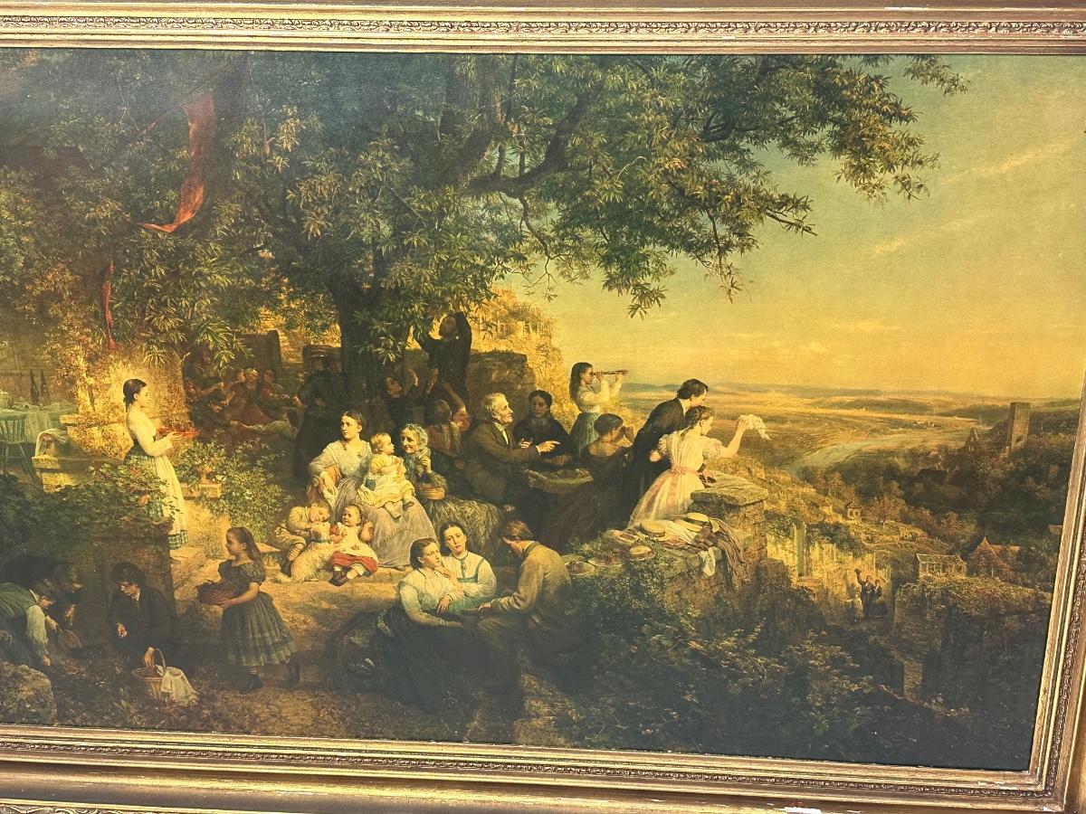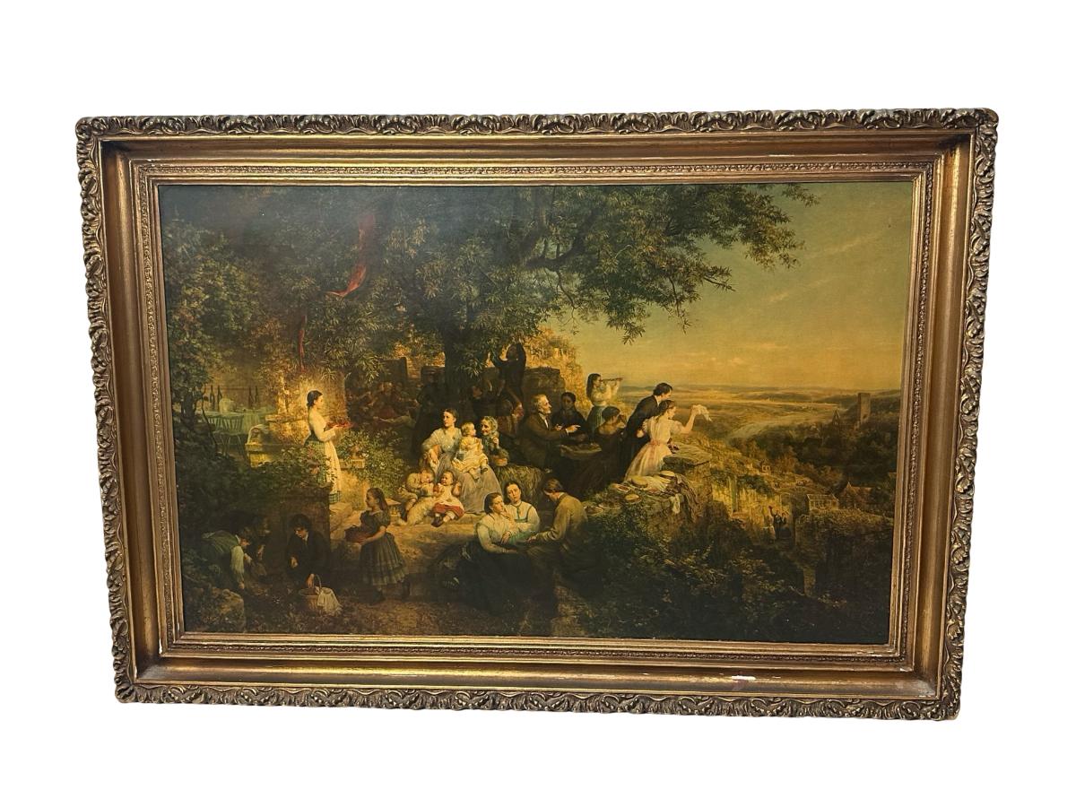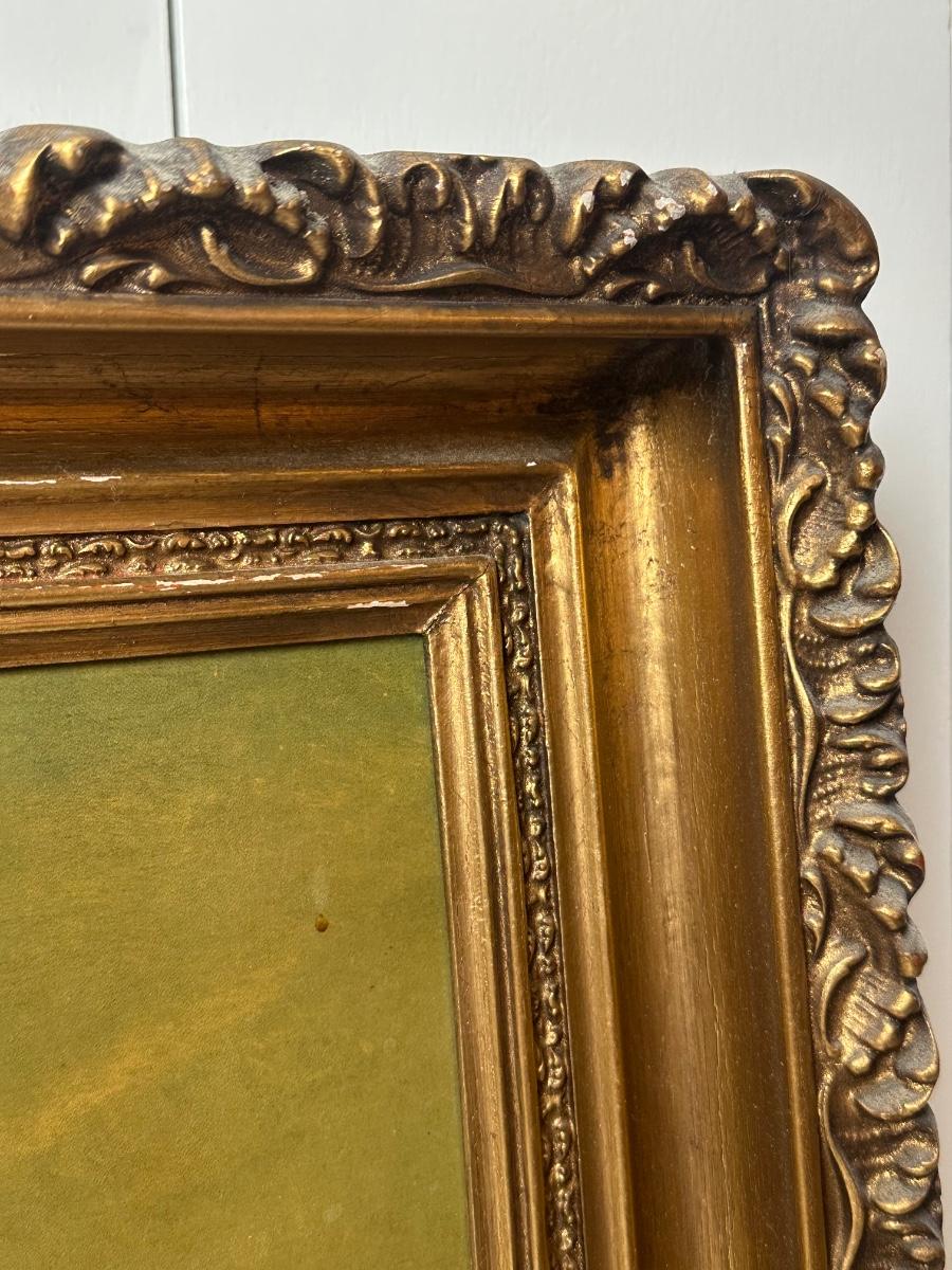 European Pastoral Scene Print in Ornate Gilt Frame