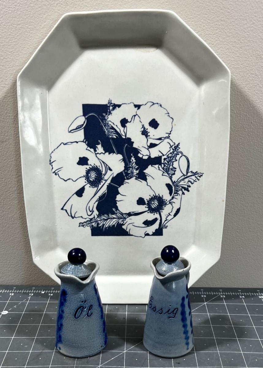 European Stoneware Tray Benn & Gallagher, Plus oil / vinegar Cruet's.