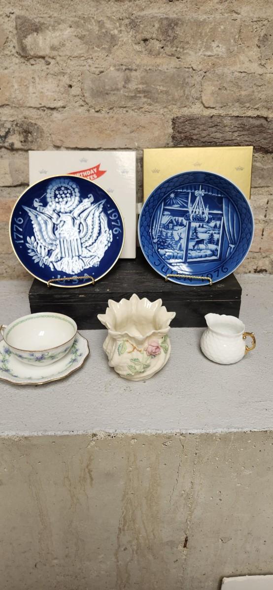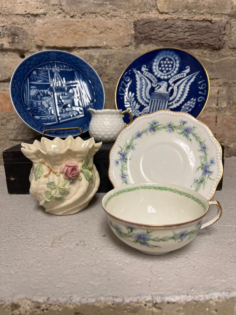 Spectacular piece of Beleek!! 2 Collector plates, a beautiful Limoges Teacup and Saucer and a sweet porcelain creamer with a chip near the spout