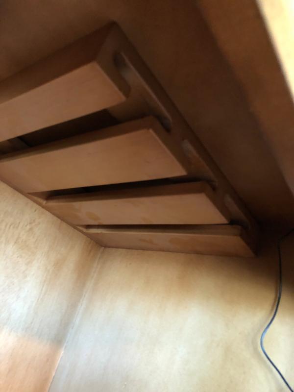 In excellent condition, some light wear from use, 40"x19"x88". Has wine glass holders in top.