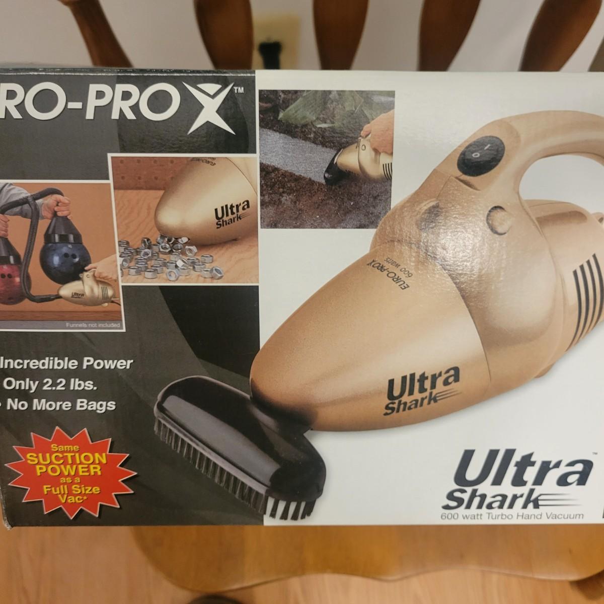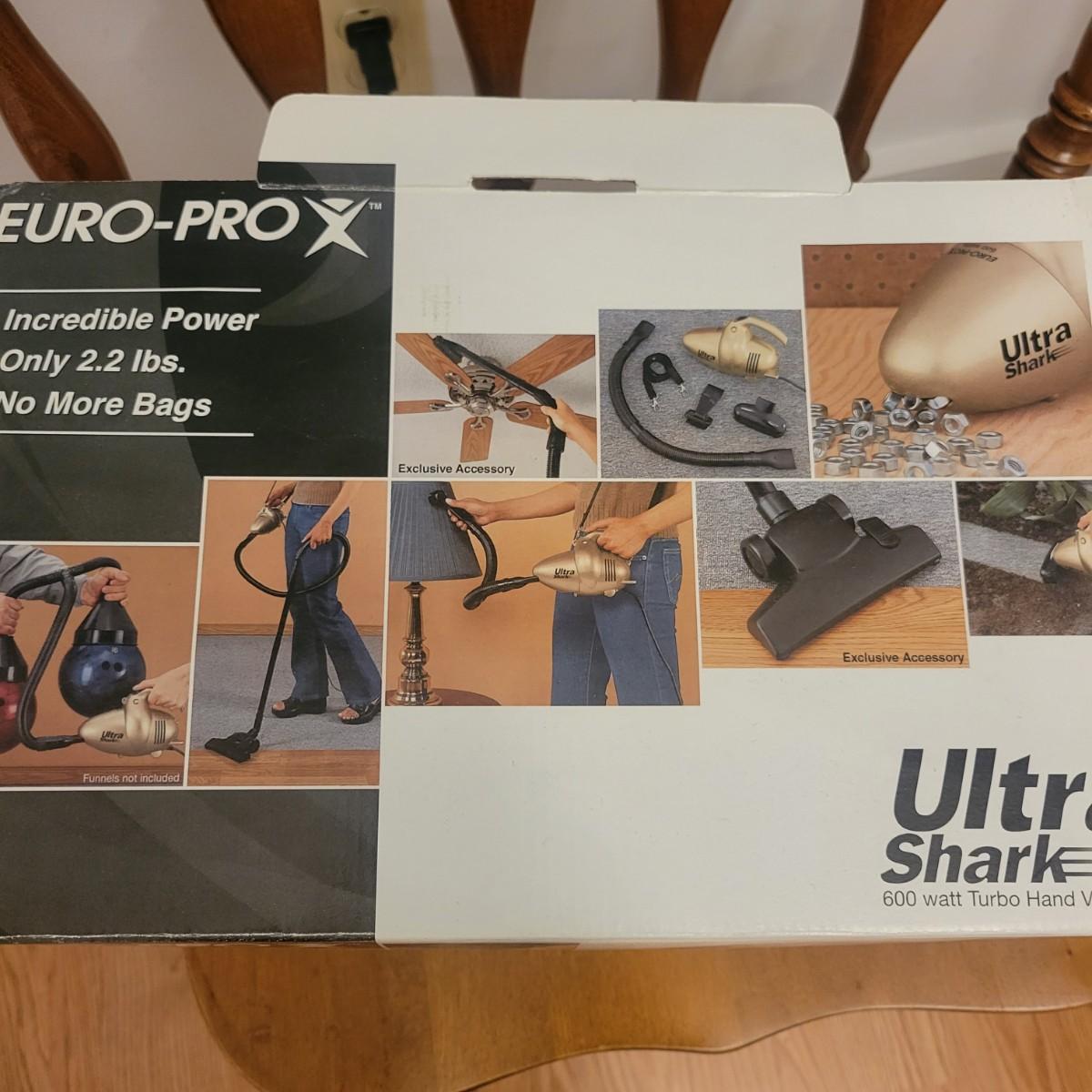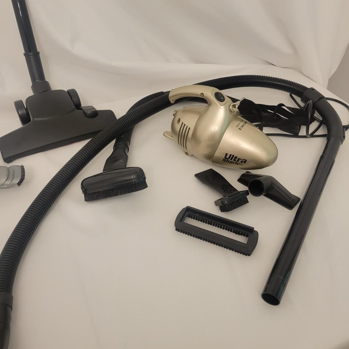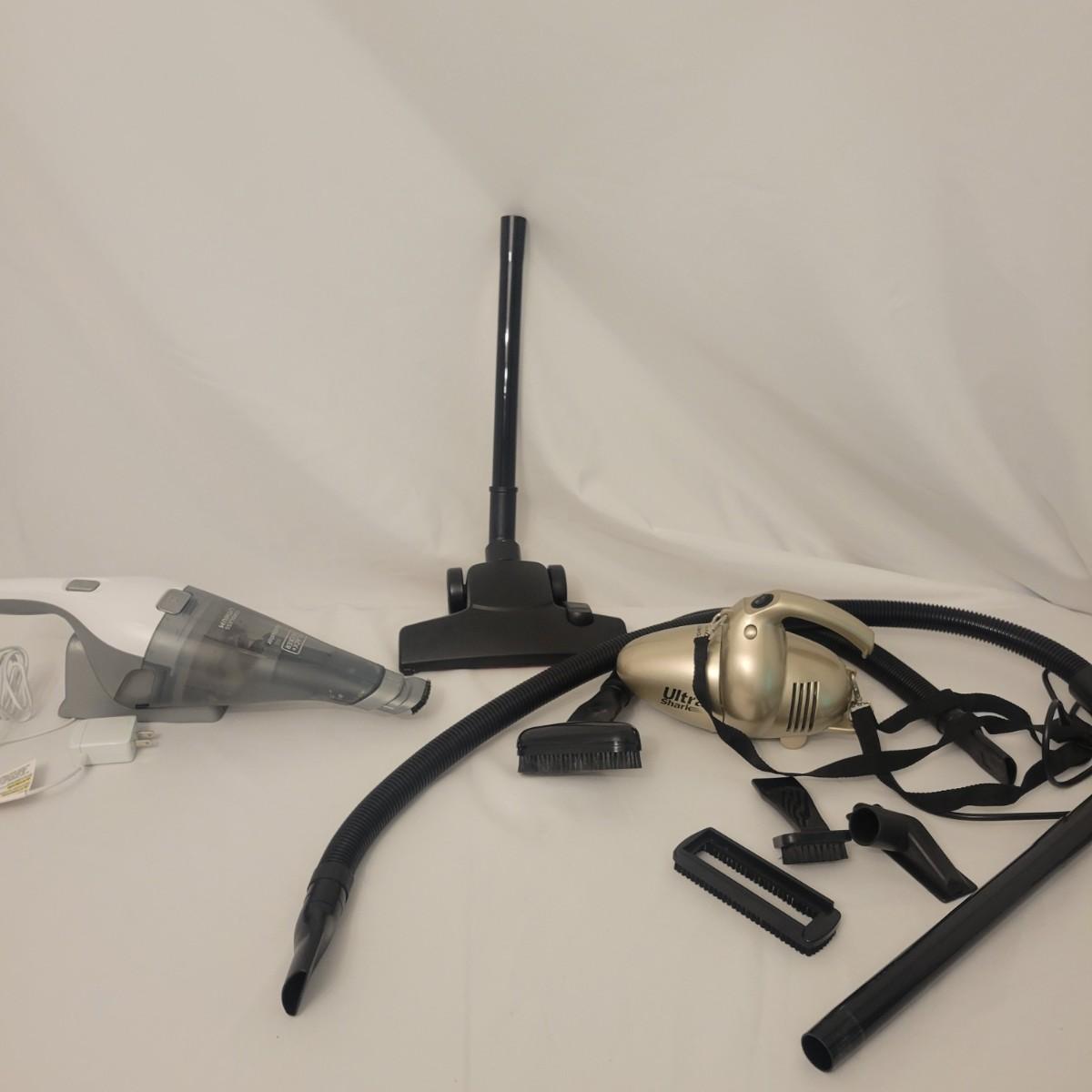 A Euro-Pro ultra Shark and Black and Decker dustbuster handheld vacuums in good condition but they have been used. B&D dustbuster has a lithium battery and charger. The Euro-Pro Ultra Shark is 600 watt and includes a variety of attachments. Both vacuums were tested and work. Local pickup only