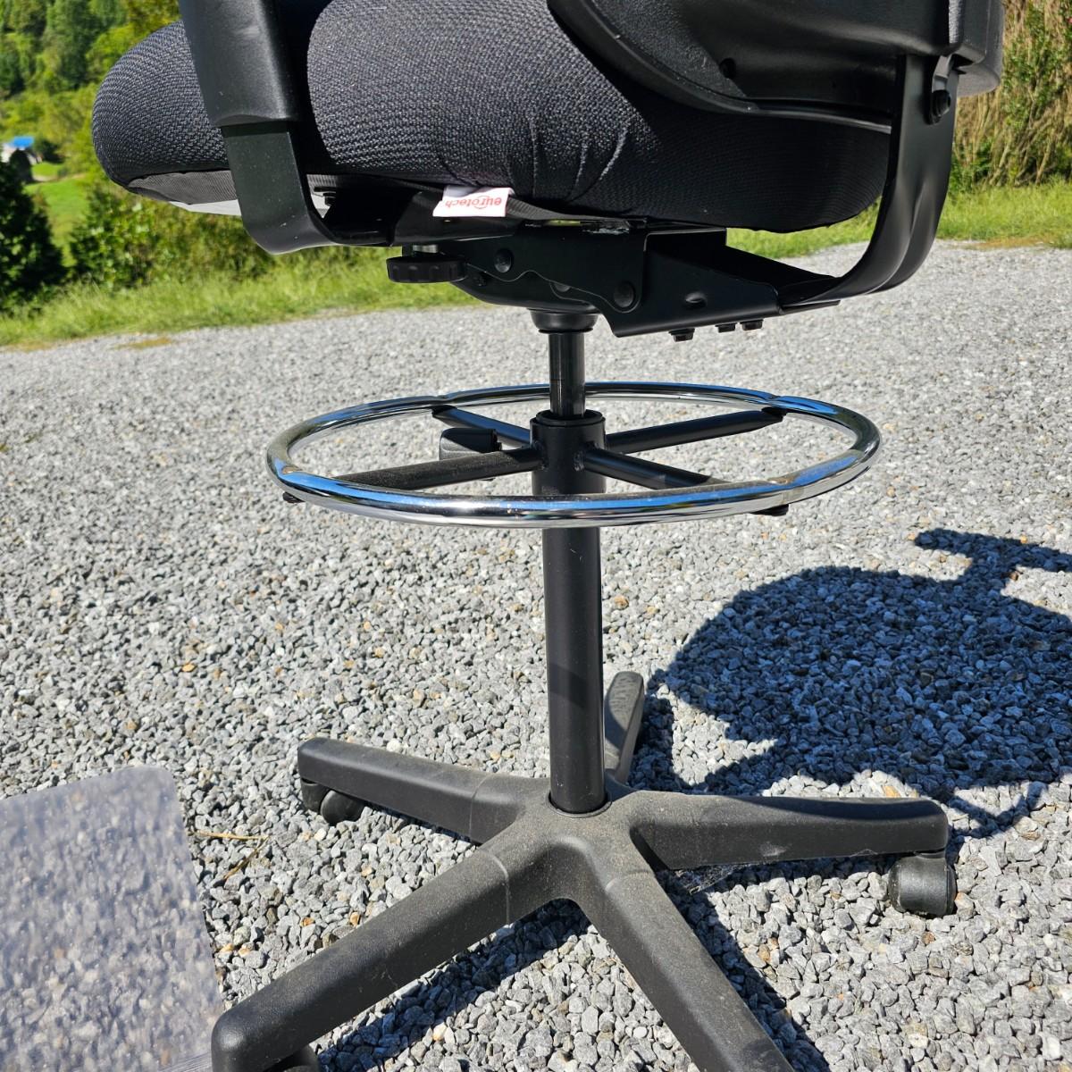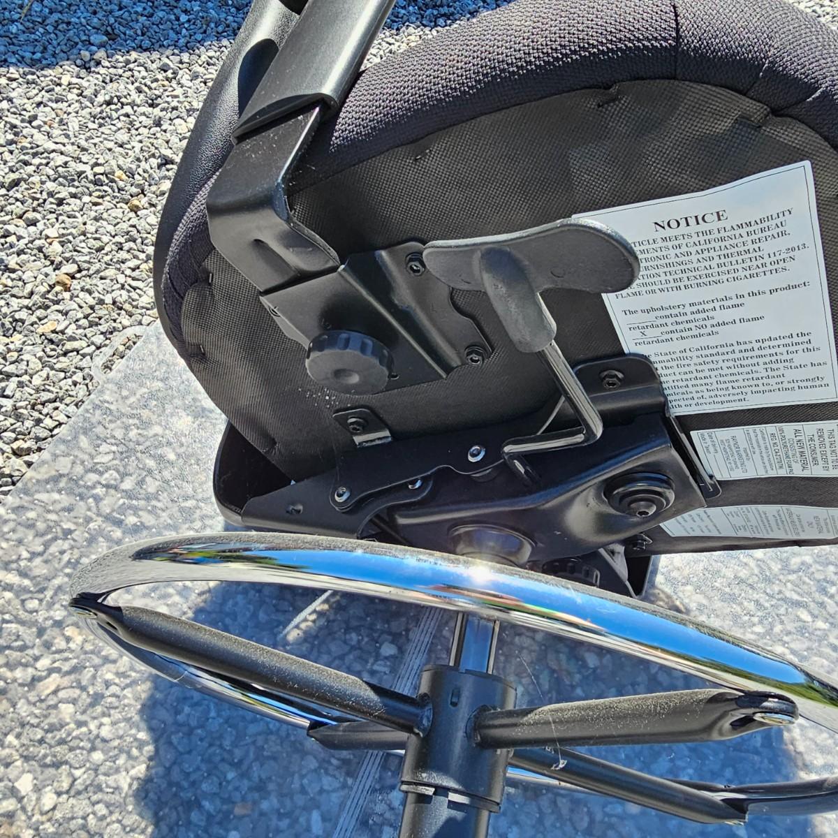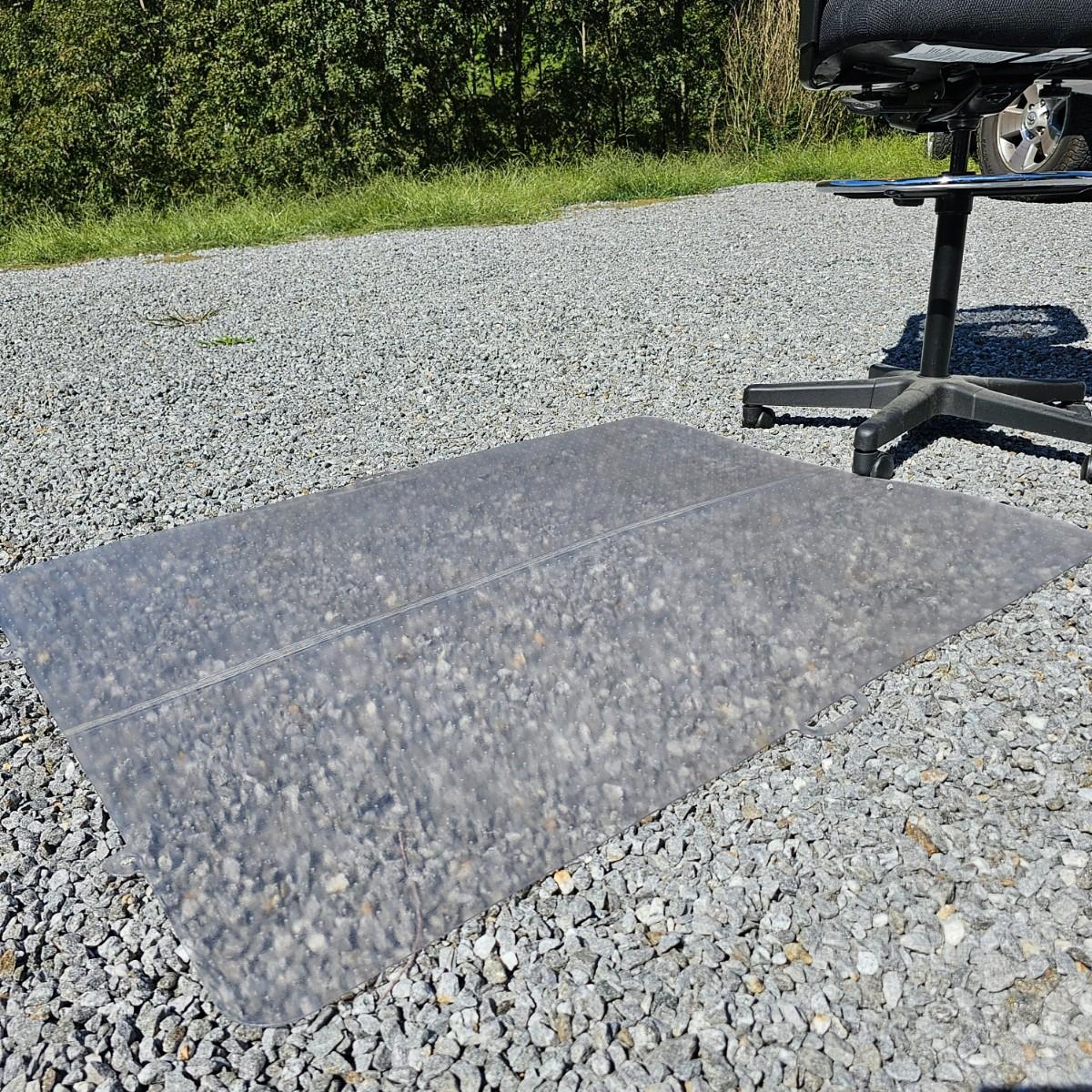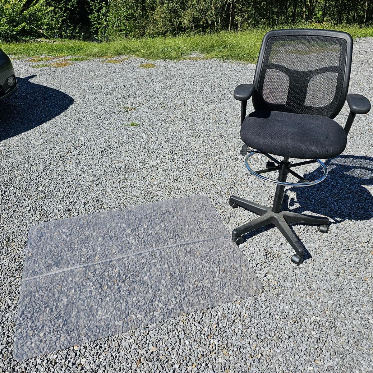 One Eurotech office/craft chair with multiple adjustment capabilities. Chair seat is foam with cool mesh back. Arms adjust up and down, swivel seat raises from 28" to 36"H. Chair has chrome foot ring for use at height. Overall it measures 25.5" x 25" x 42"H. Clear protective floor mat is 35" x 47", has standard teeth to grip carpet. See photos for details. Local pickup only.