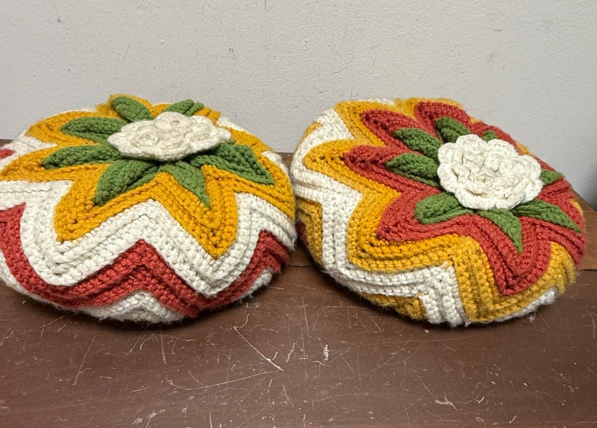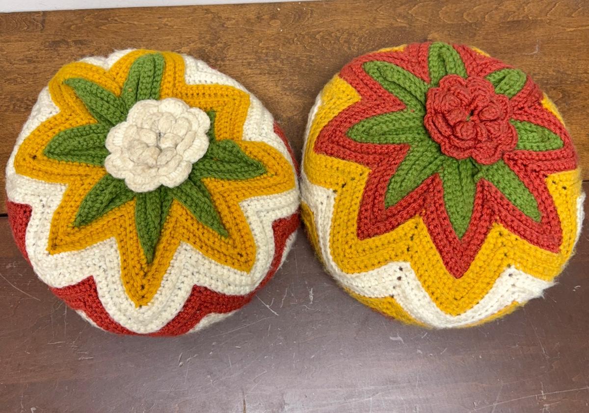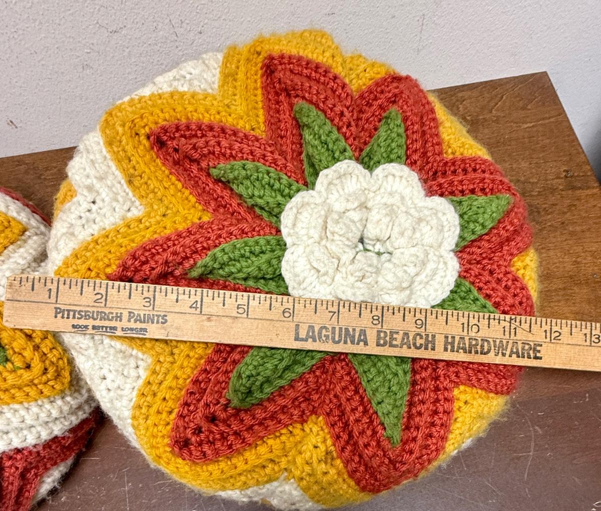 Vintage Handmade Crocheted Pillows - 70's Colors