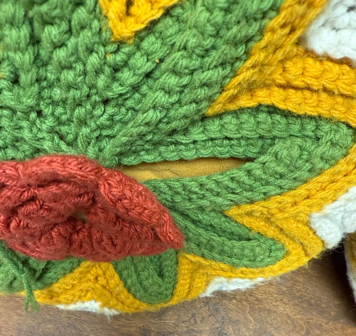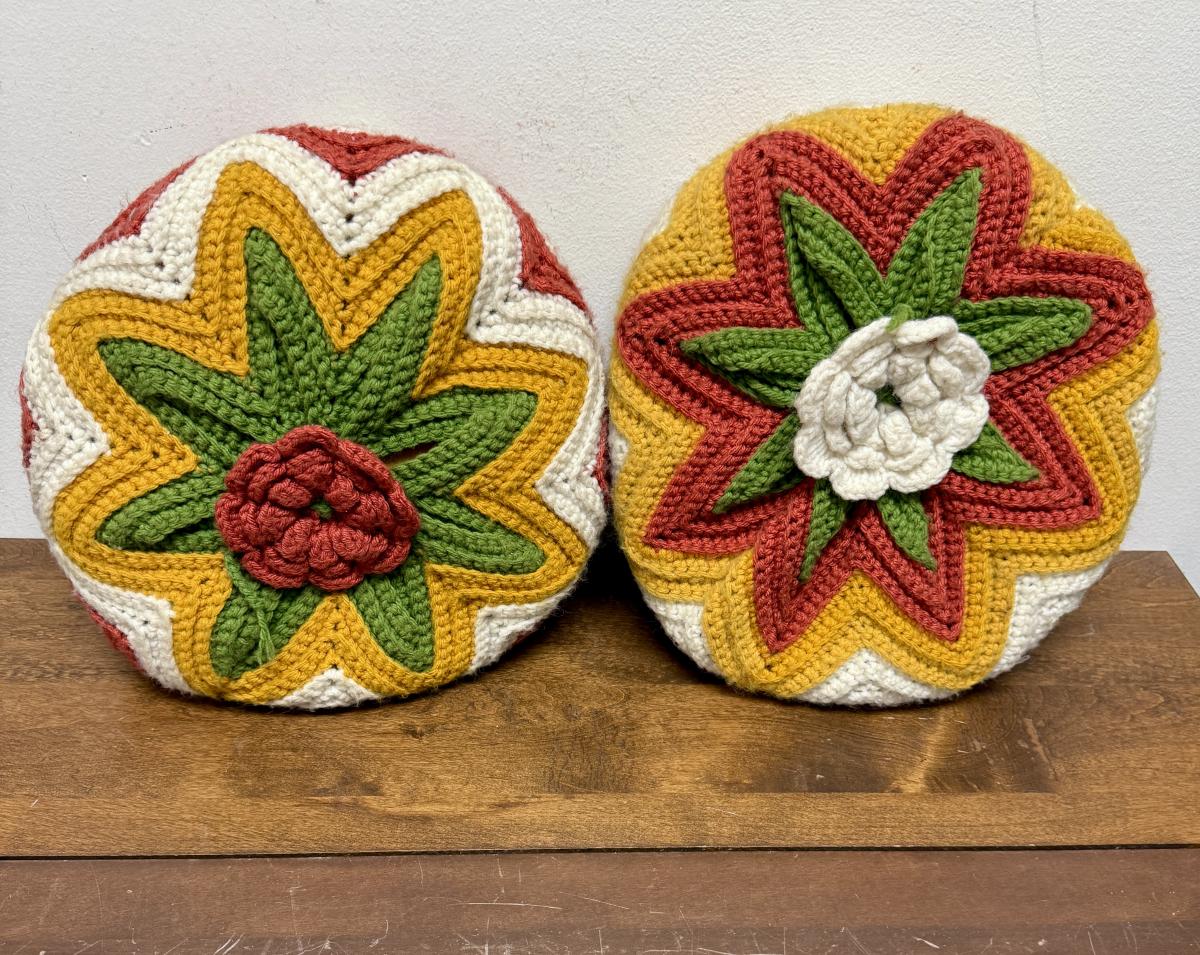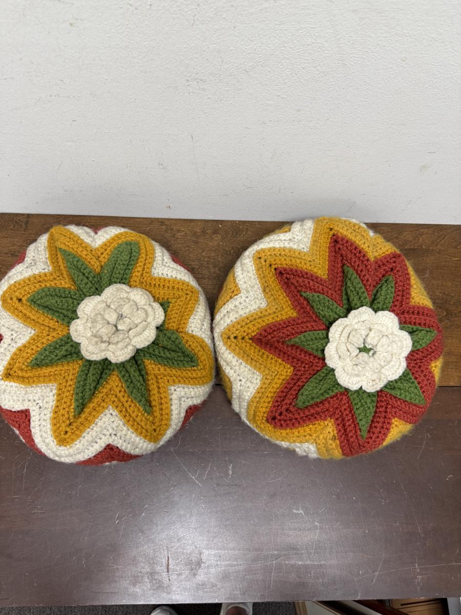 Vintage Handmade Crocheted Pillows - 70's Colors