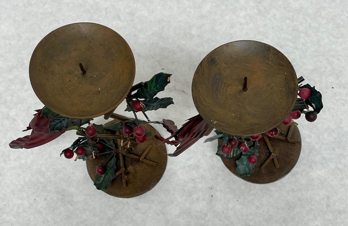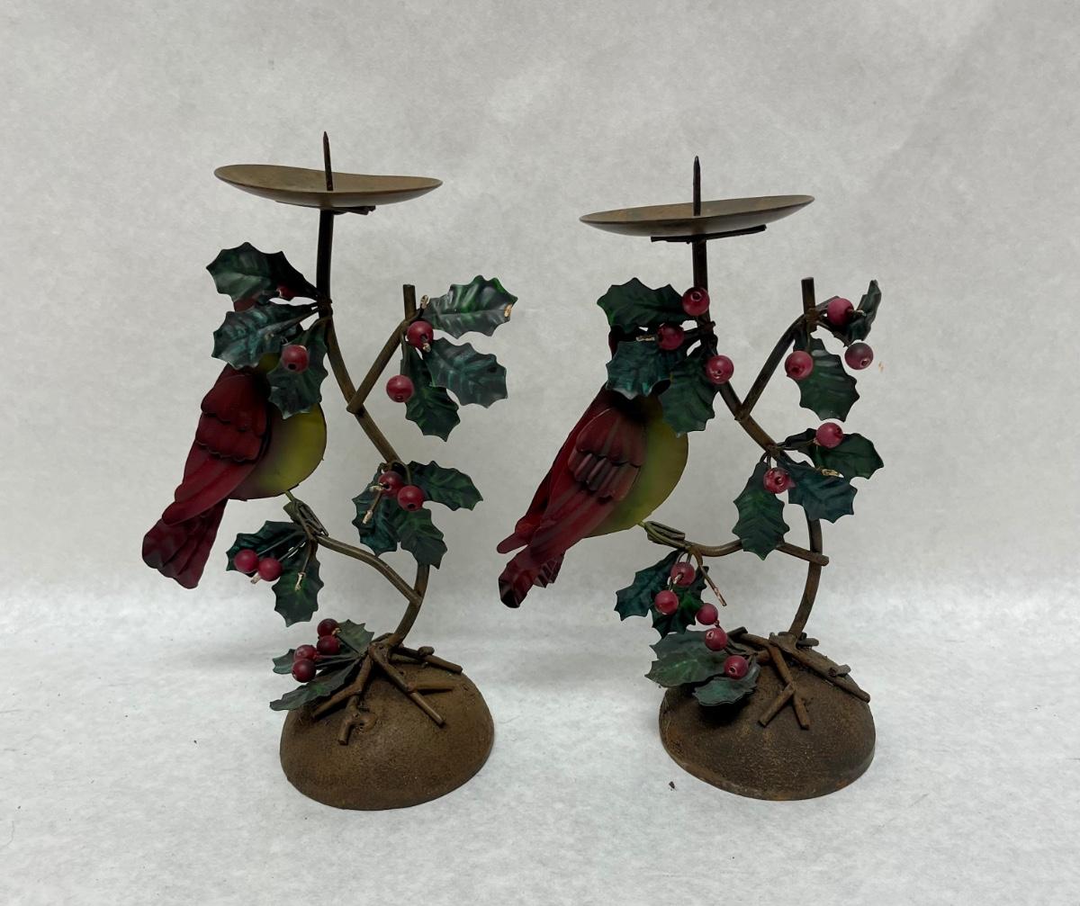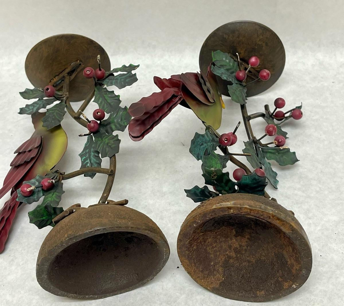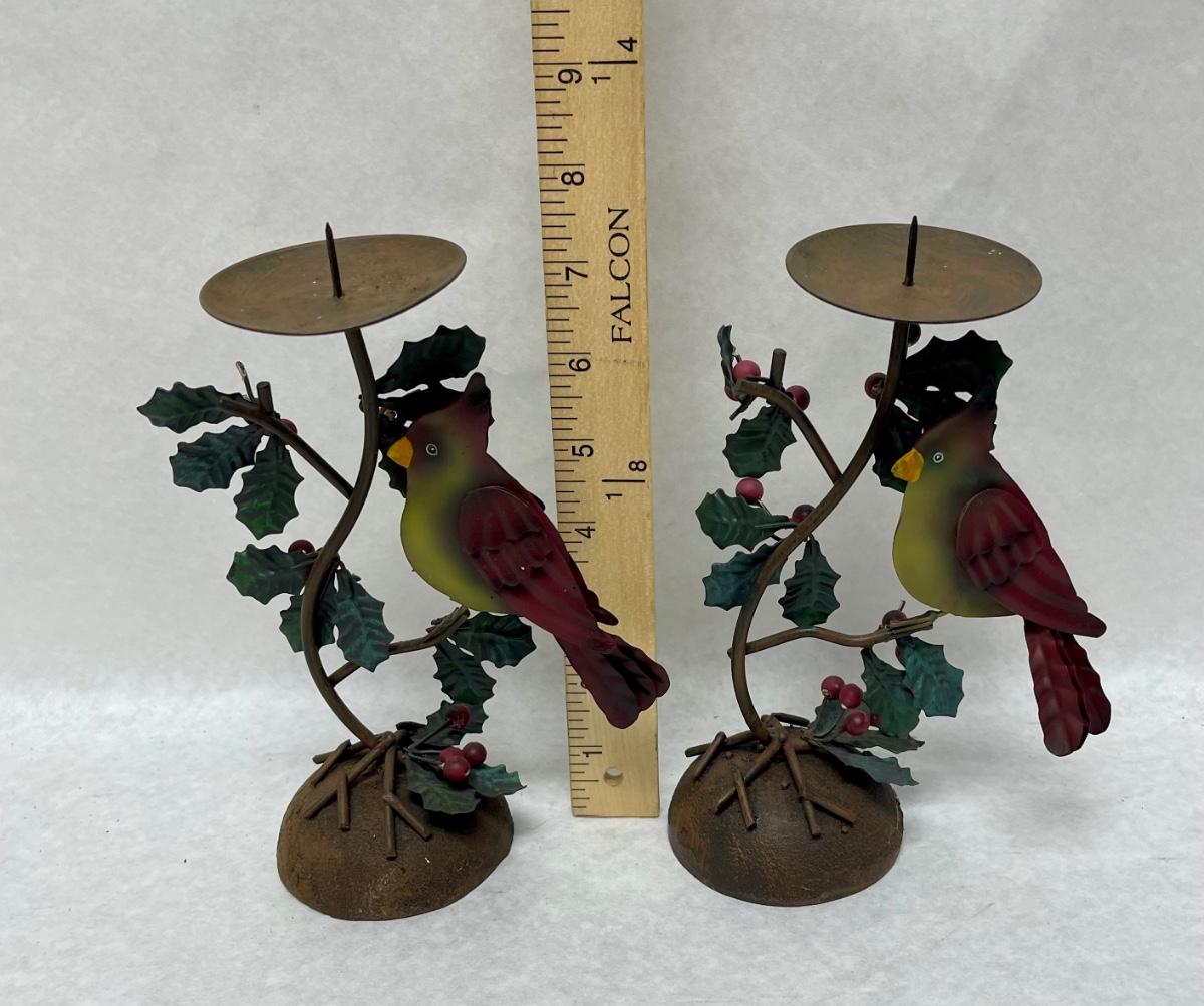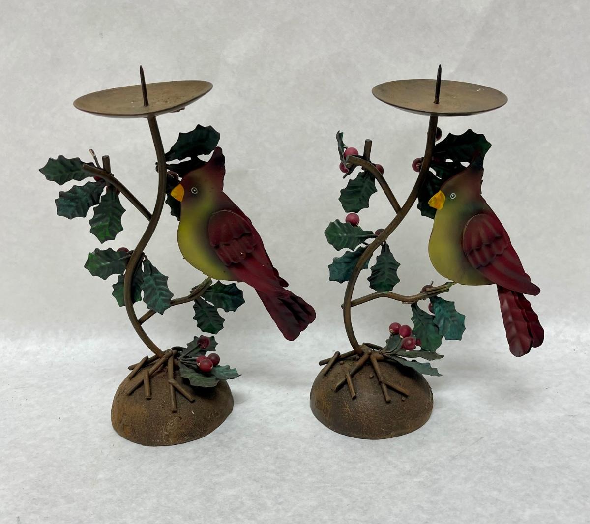 Rustic Metal Christmas Bird Candlestick Holders