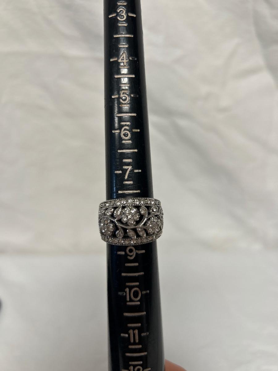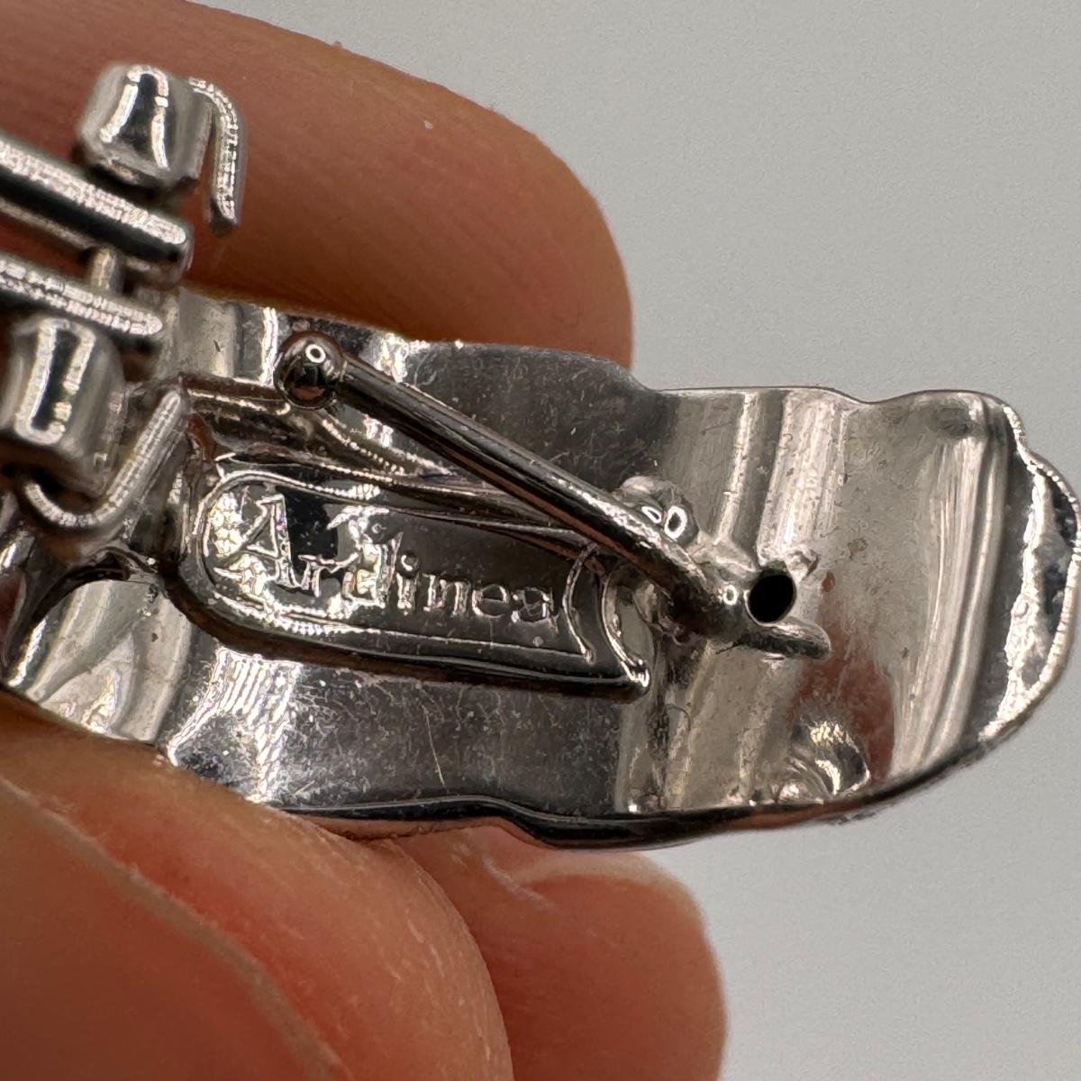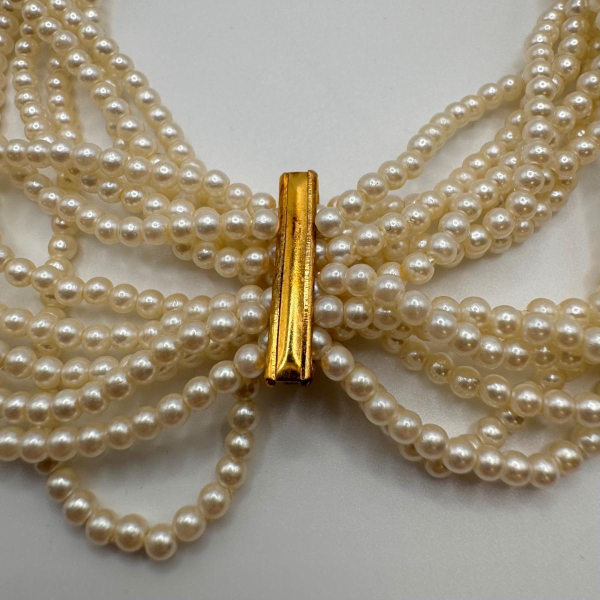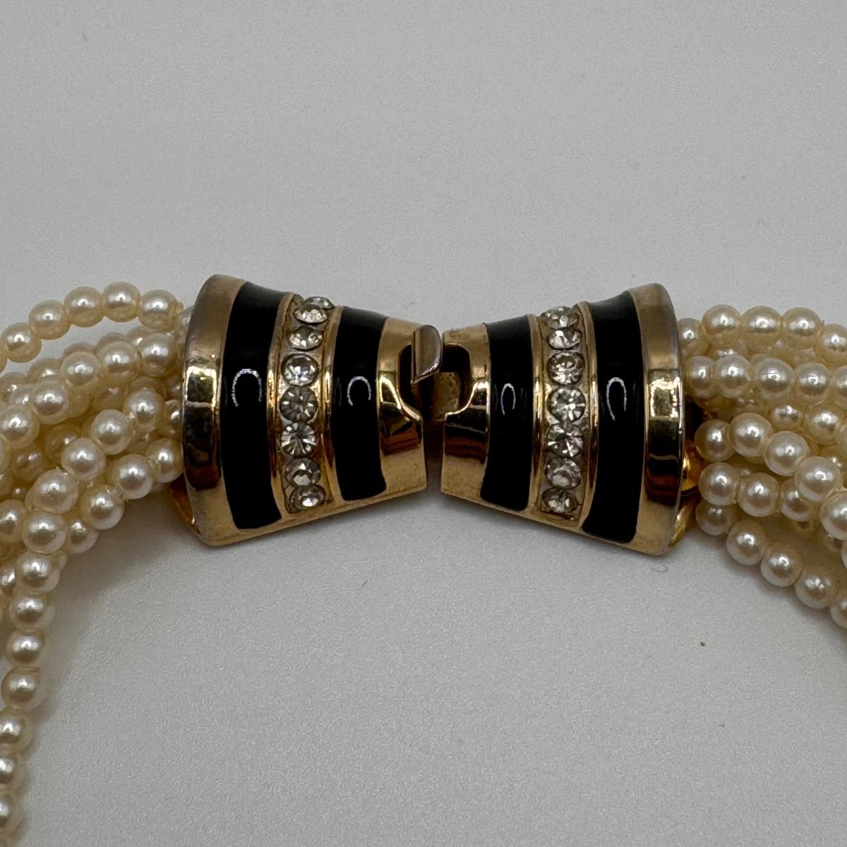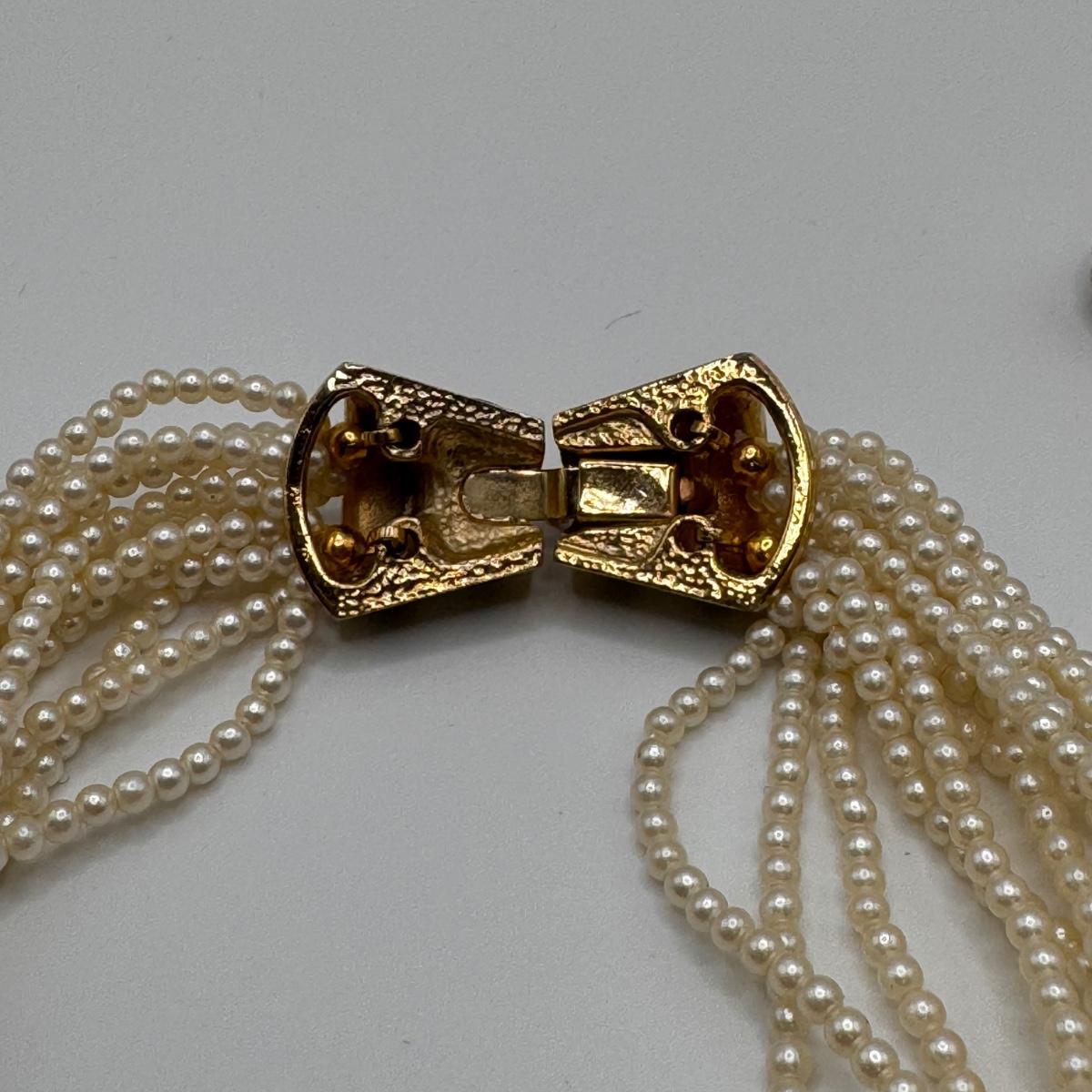 This lot includes a pair of Ardinea earrings and one pair of Les Bernard earrings for pierced ears. There are three necklaces with pearls or pearl-like beads including a layered necklace and a Miranda brand collar necklace. There are four pairs of earrings for unpierced ears: one pair of Monet magnetic “clip-on” earrings, one pair of multiple faux pearl clip-on earrings, and two pairs of small clip-on earrings with 925 stamped on the inside. There are also two rings: one is stamped with 925 and the other has a braided pattern.