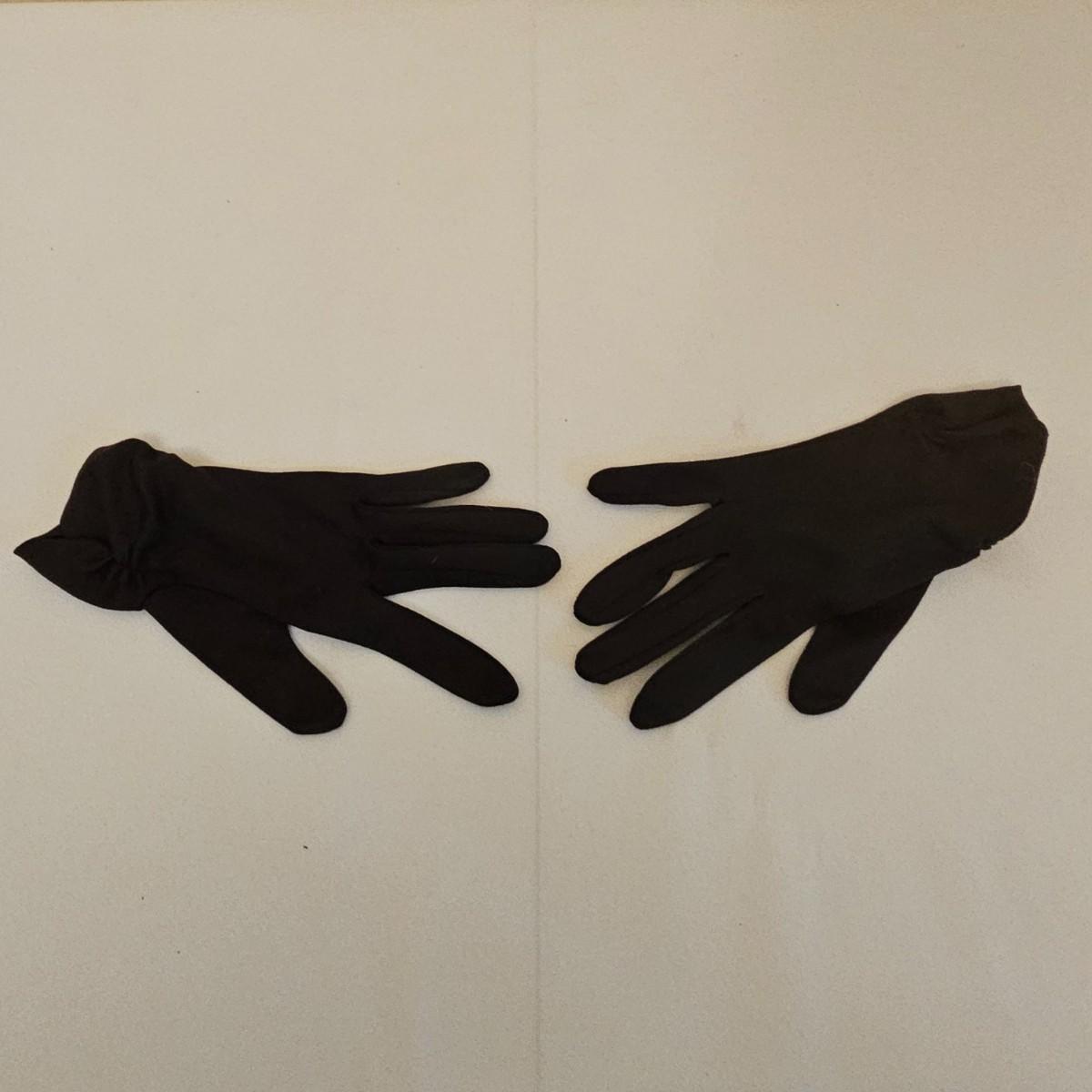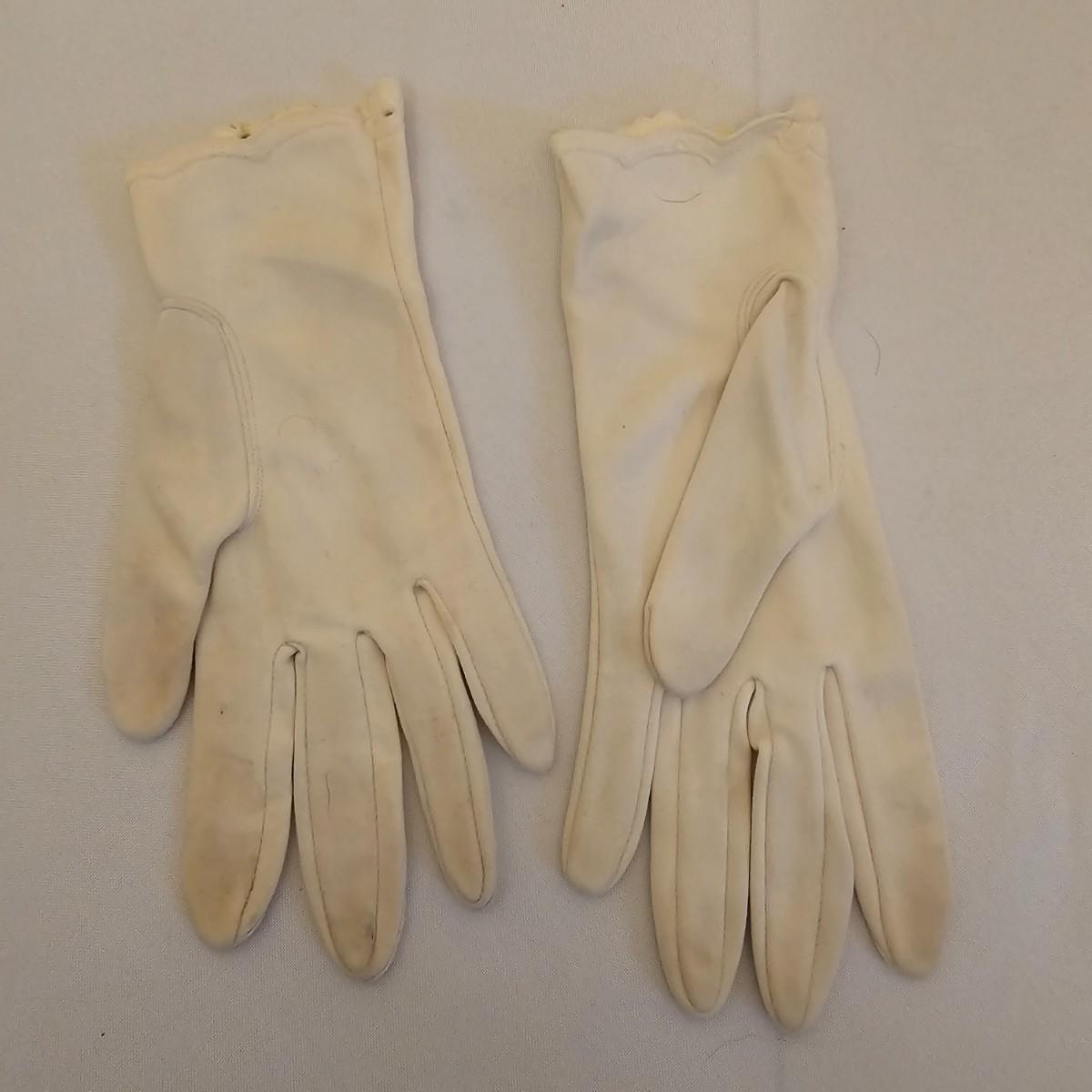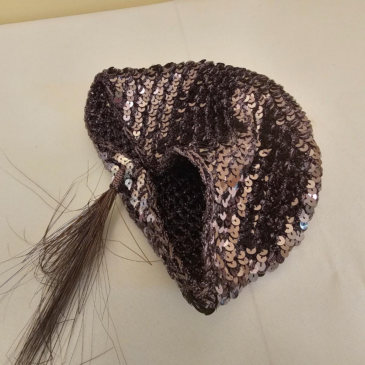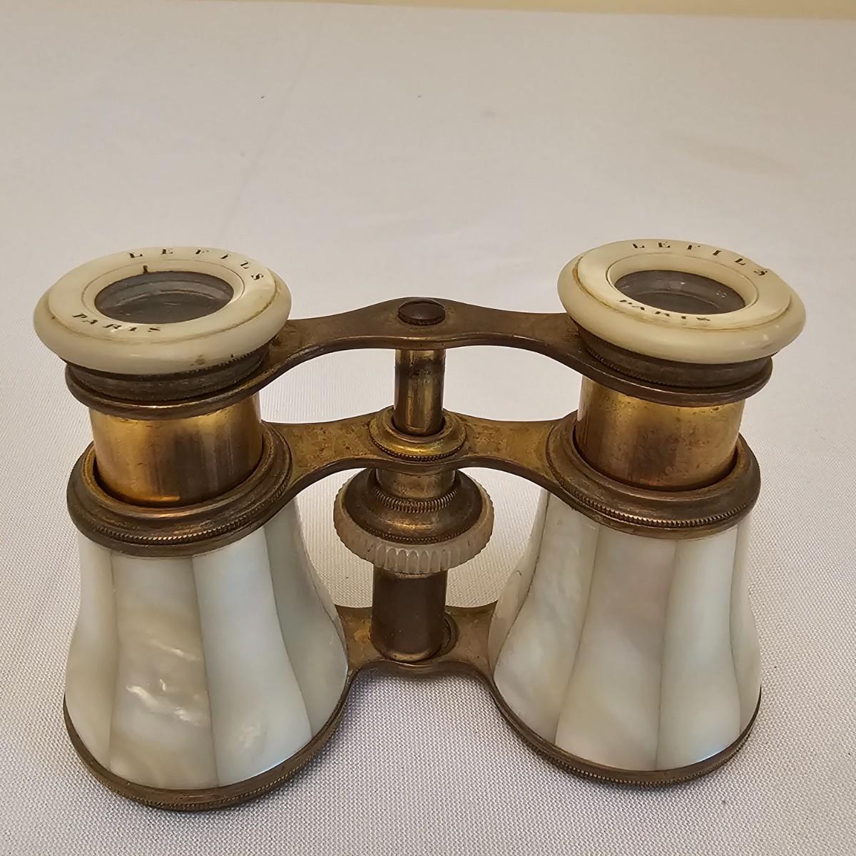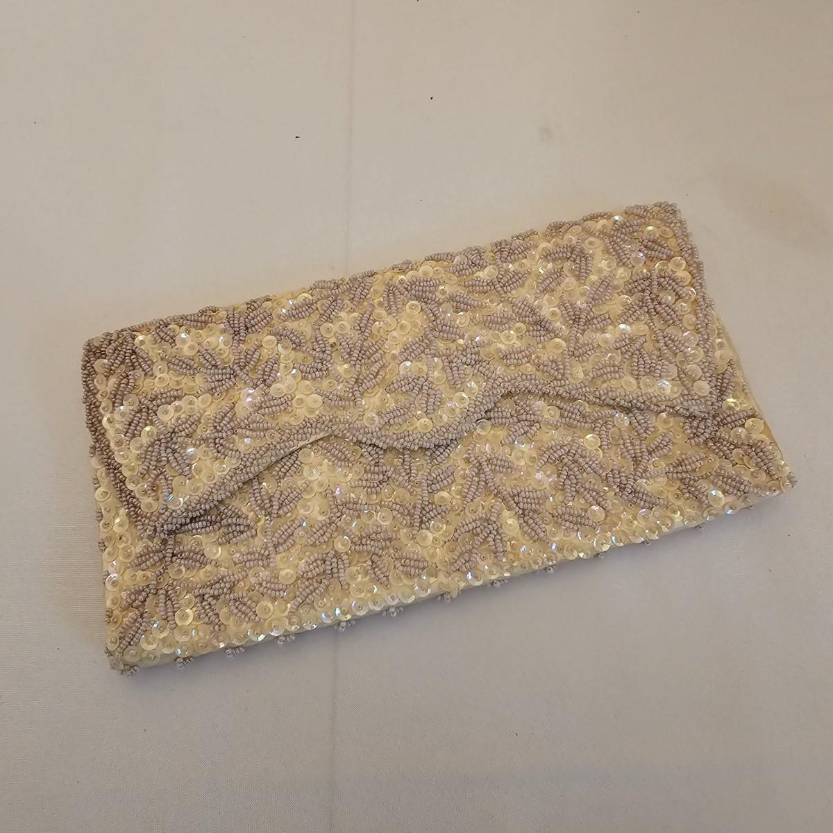 Evening gloves in a variety of colors and lengths and sparkly clutches and hats to complement the look. Two pair of full length opera gloves, both in off white, approximately 24". Black gloves, a pair of red suede, and a pair of women's doeskin gloves. Gold sparkle gloves are 15" length. Beaded and sequined adorned purses in several colors. Most about 10" in length, several lined in silk or satin. Two sequined hats, one a beret and one cap style. Two pair of opera glasses. White and gold Le Fils Paris pair appear to be mother of pearl and brass, measure 4" x 2" x 2.5"H. The other pair is Elyco brand. Some discoloring on both sets. See photos for details. Shipping available.