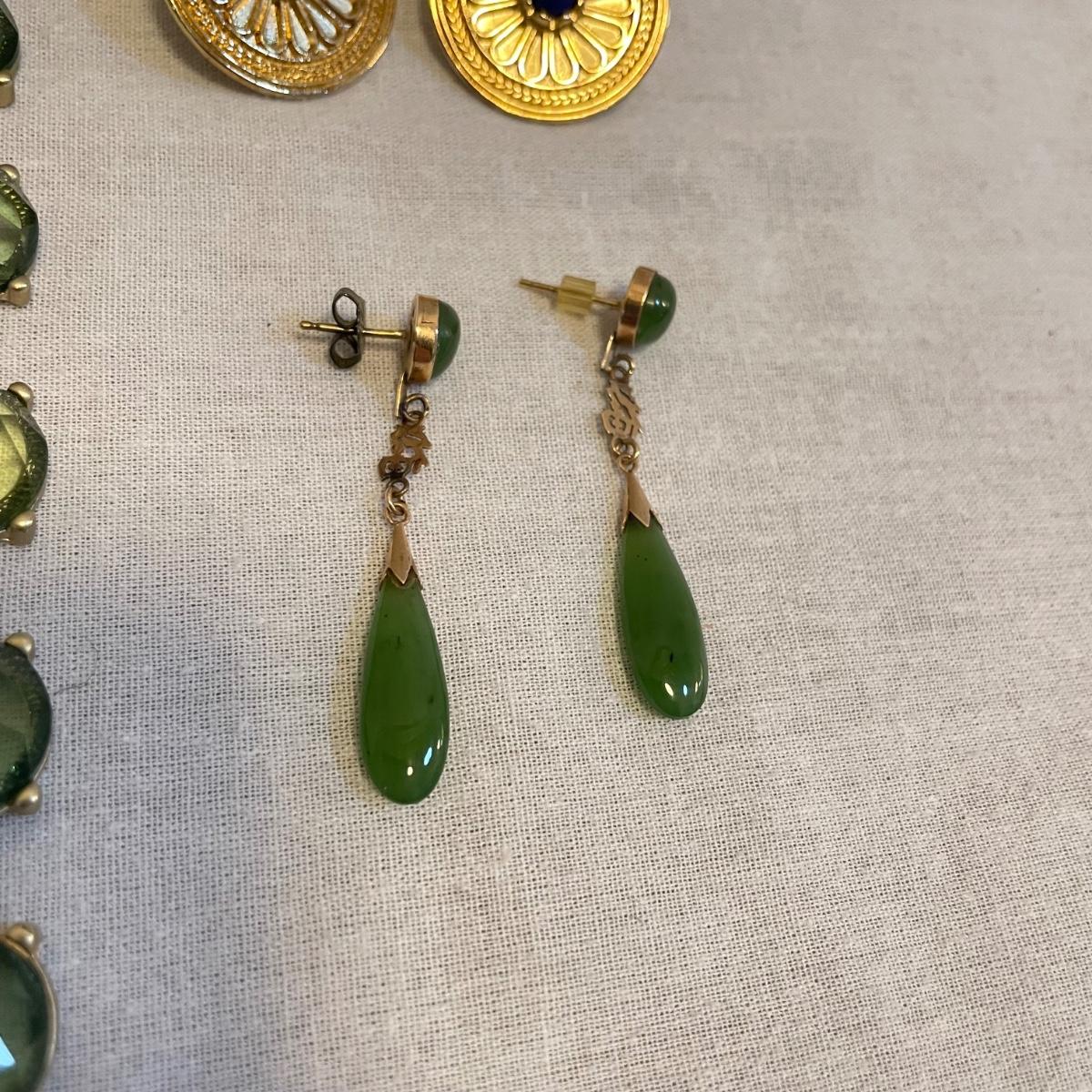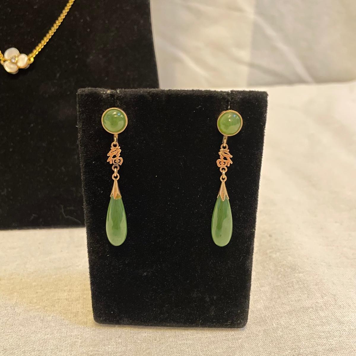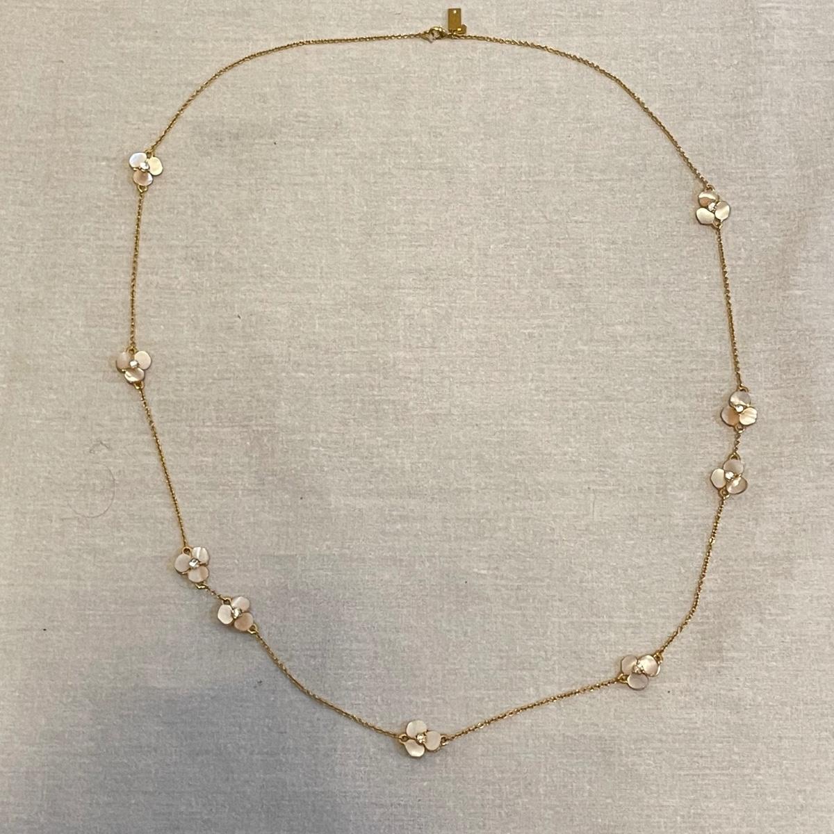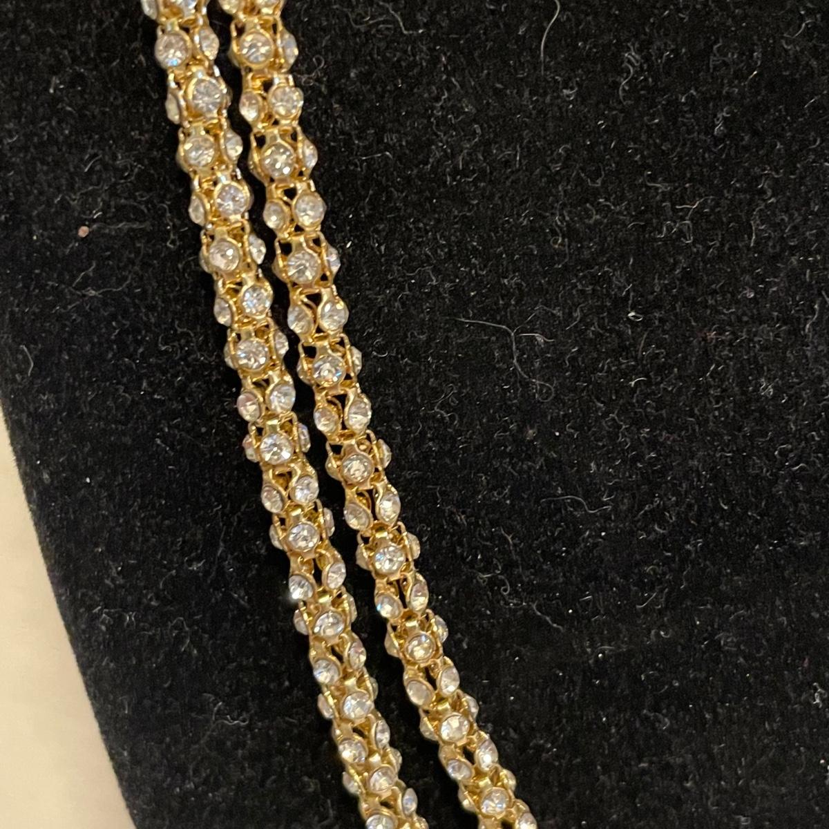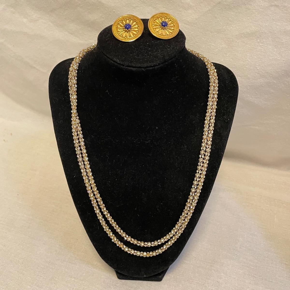 Combinations of necklaces and earrings perfect for evening events or even spruce up the daytime. The long rhinestone rope necklace has an Anne Klein hallmark, the pearlescent floral necklace is marked with the classic Kate Spade emblem. The round earrings appear to be WAG and the others do not have known markings, the green earrings look like jade. The Anne Klein necklace is the longest, just over 40”. Shipping available. All sales are final. No returns or refunds. Please bid accordingly.