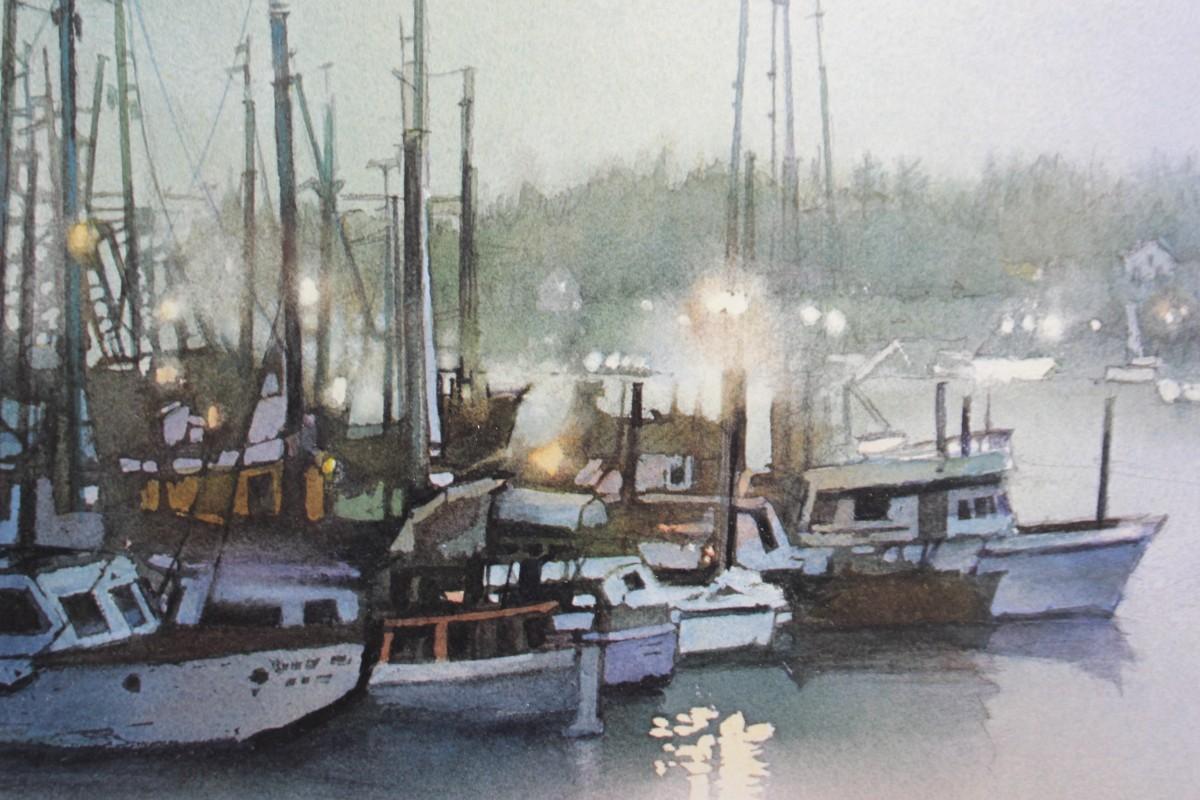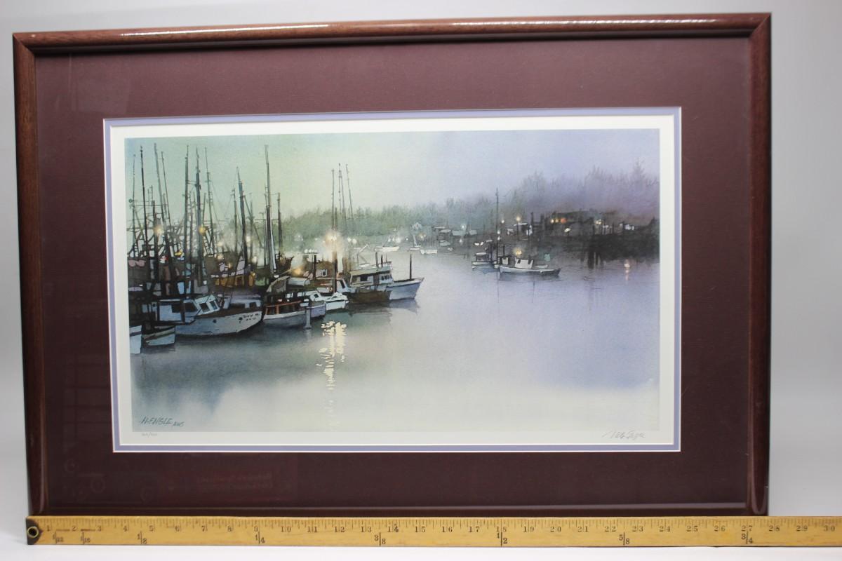 Evening Harbor Nita Engle Signed & Numbered Collectible Print Michigan Harbor Dock Landscape Art Print