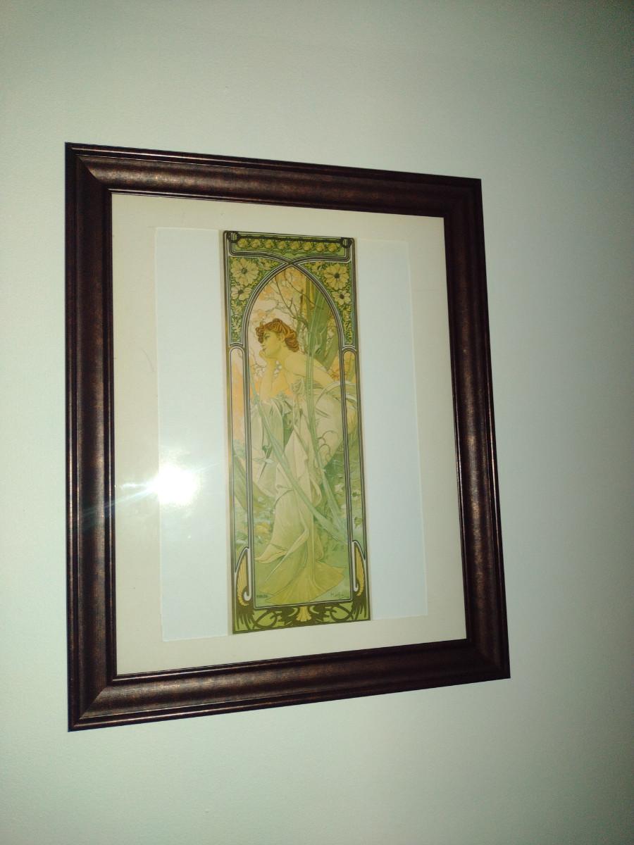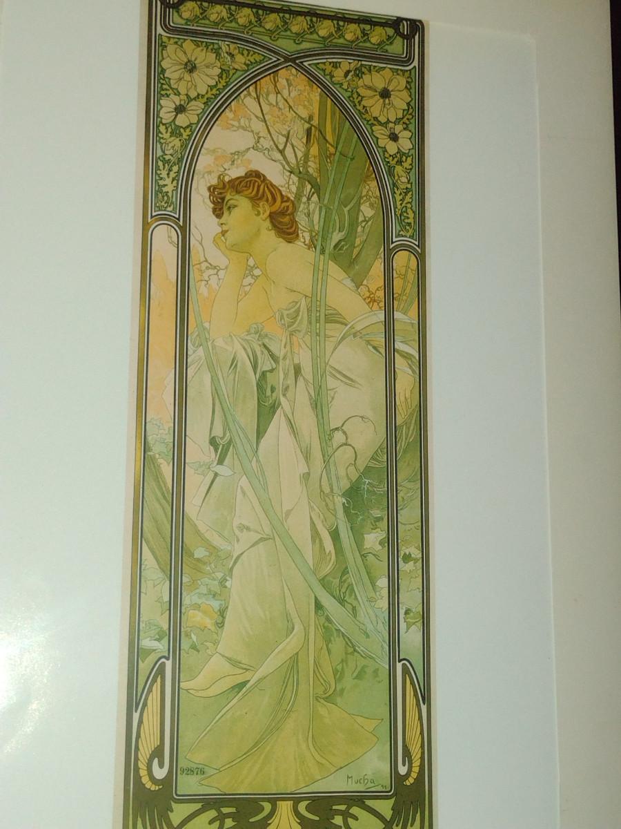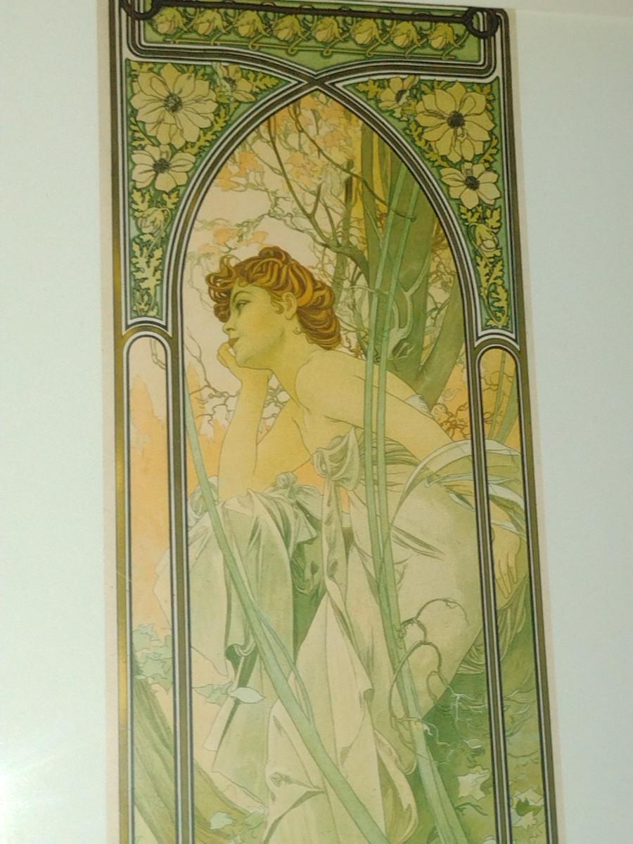 "Evening Reverie" by Alphonse Mucha Art Nouveau Style Print- Framed Under Glass- Approx 16 3/4" x 20 3/4"