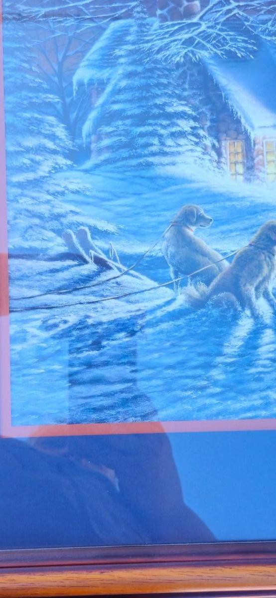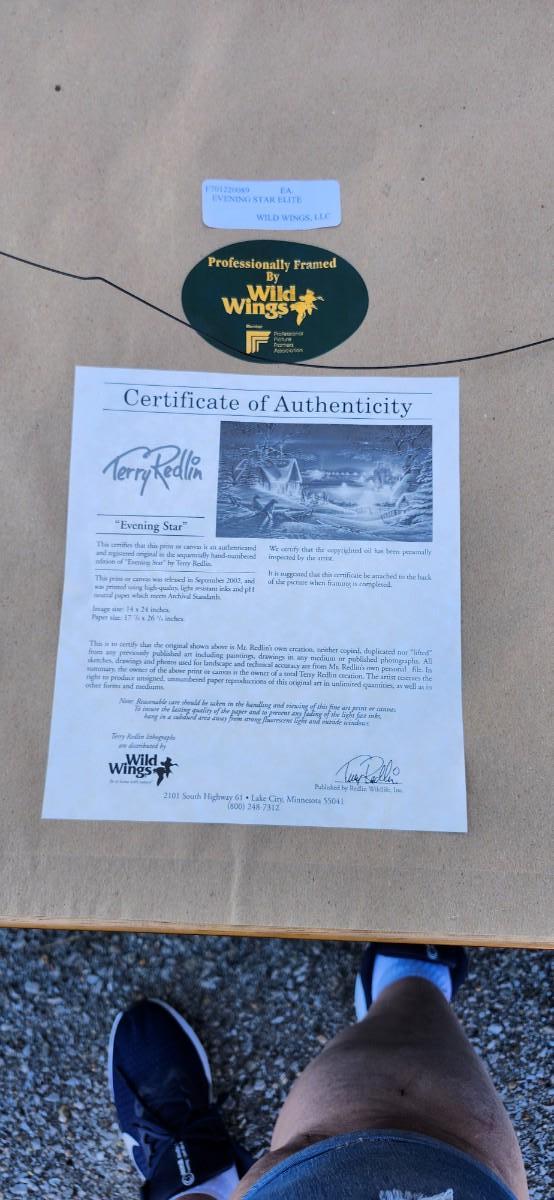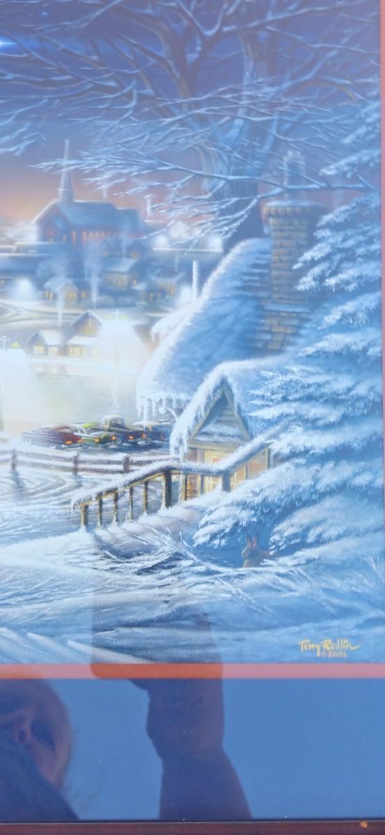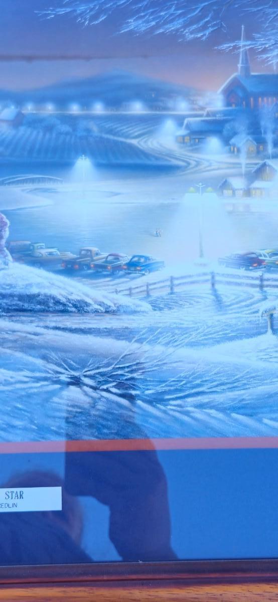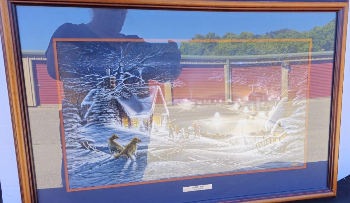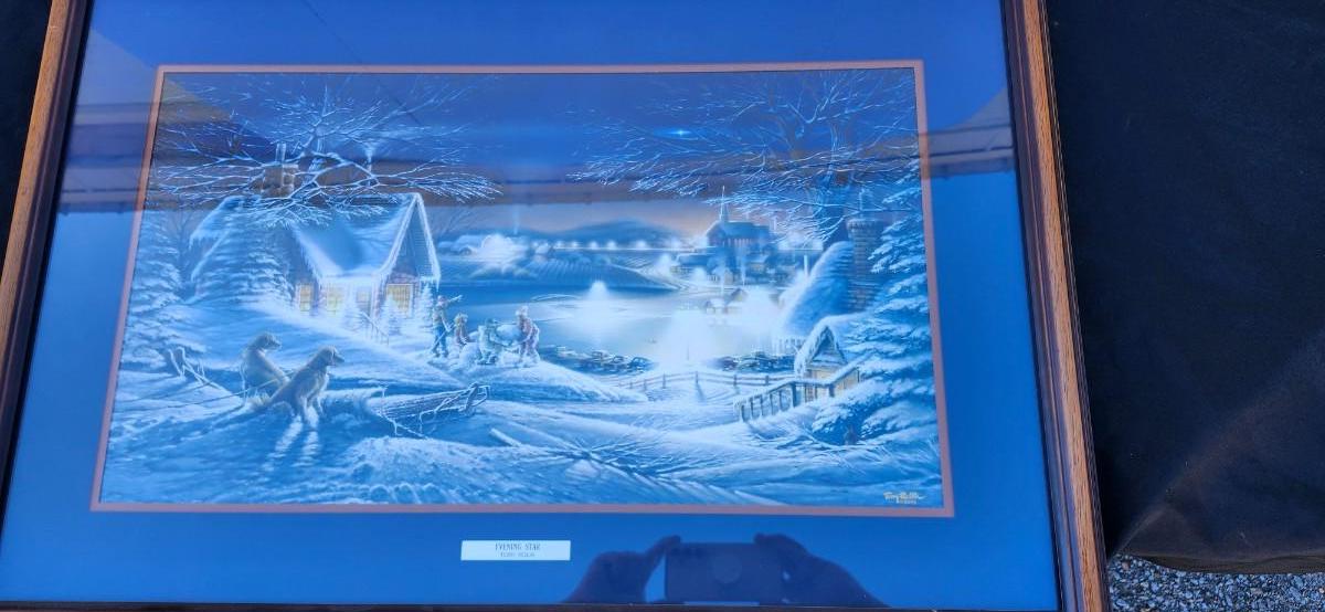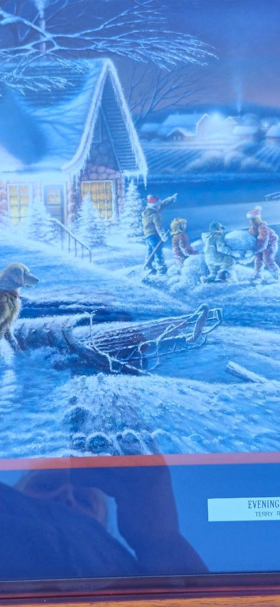 The first star to appear in the evening sky twinkles more brightly than the others. It is the planet Venus, but stargazers prefer to call it the Evening Star. The children have just finished a long day of tobogganing and sledding and are now working on their new friend, the snowman. The dogs are tired from playing in the snow, but not too tired to spot the rabbit. Beneath the hill, the skating rink is encircled with cars filled with spectators to the evening's entertainment. As the headlights burn through the ground fog, they become spotlights on the young skaters. In this image, Terry Redlin captures the magic of this snowy winter playground.