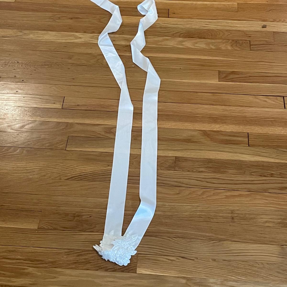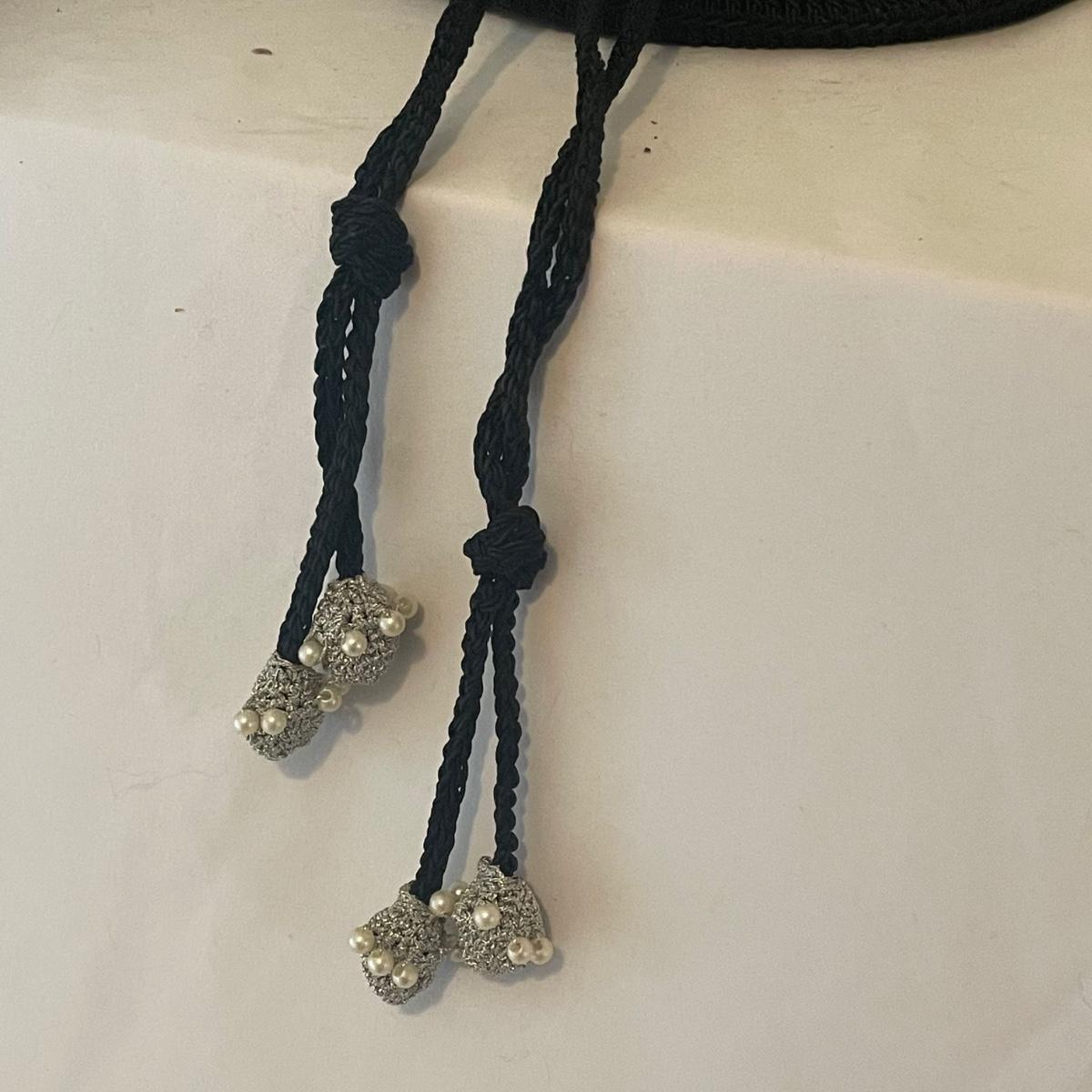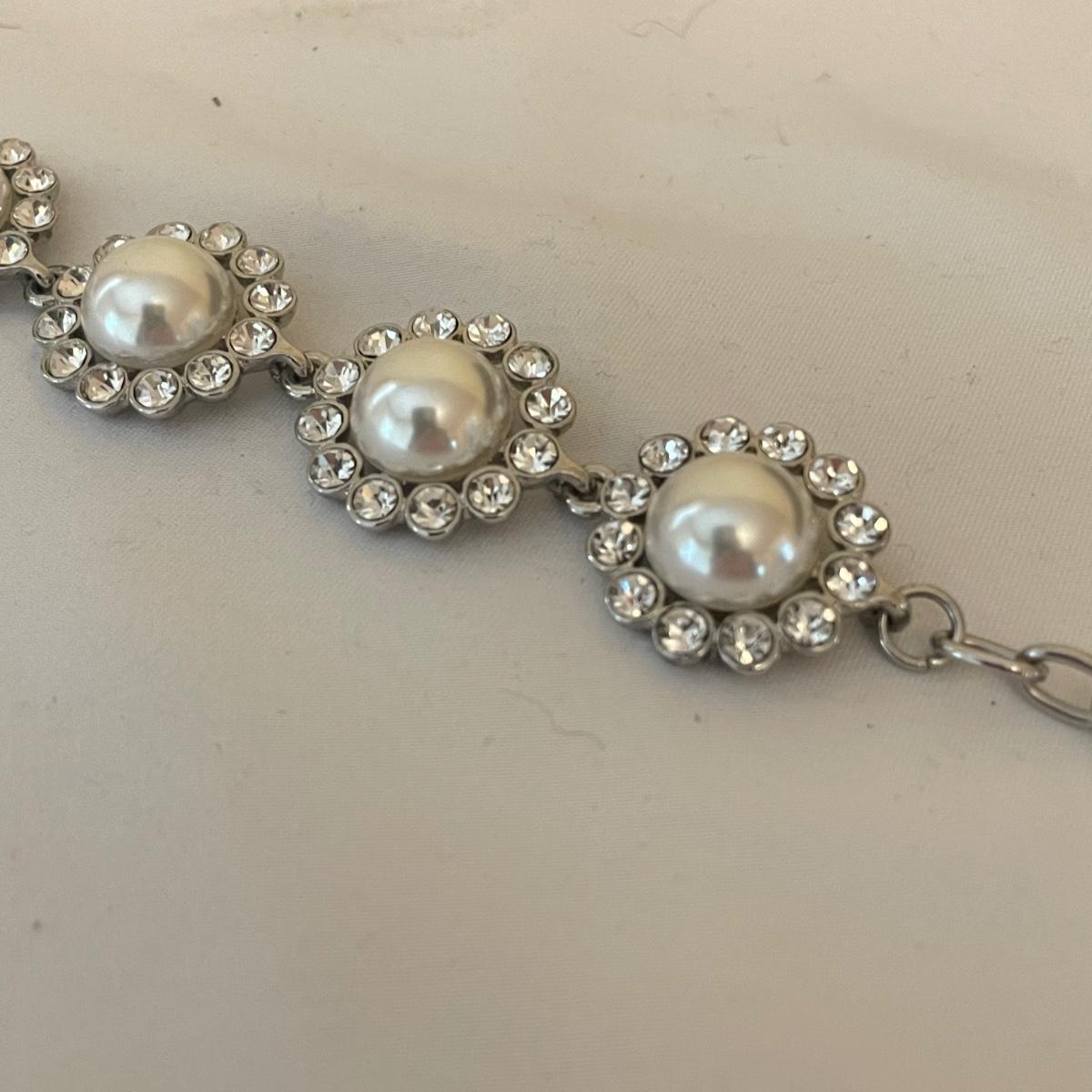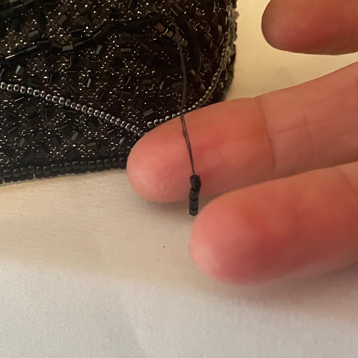This sparkly assortment of evening wear accessories includes three pairs of diamonte style earrings for pierced ears and a similar style bracelet, along with, a black crocheted purse with bead accents, a black beaded belt (has one loose thread) and a long white sash/belt that’s silk with white beaded embellishments.