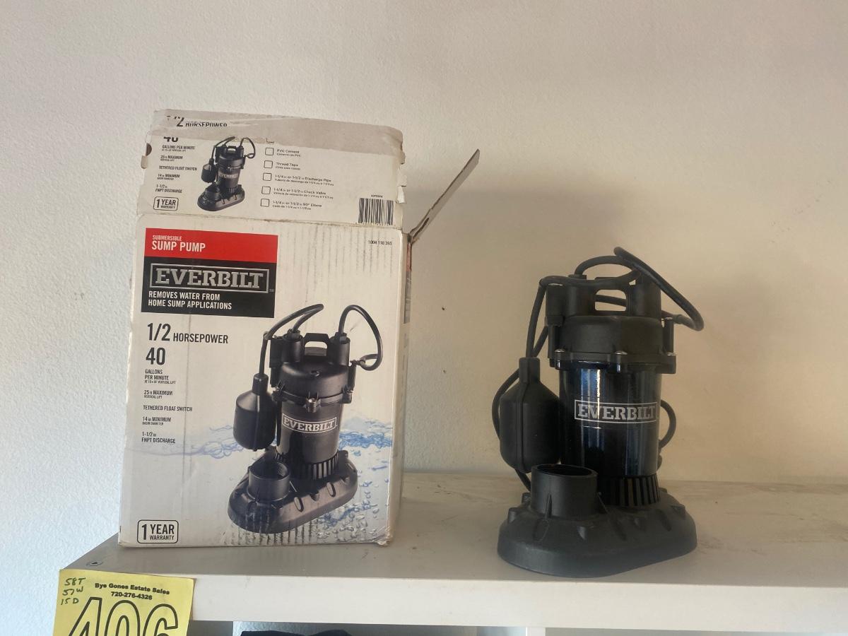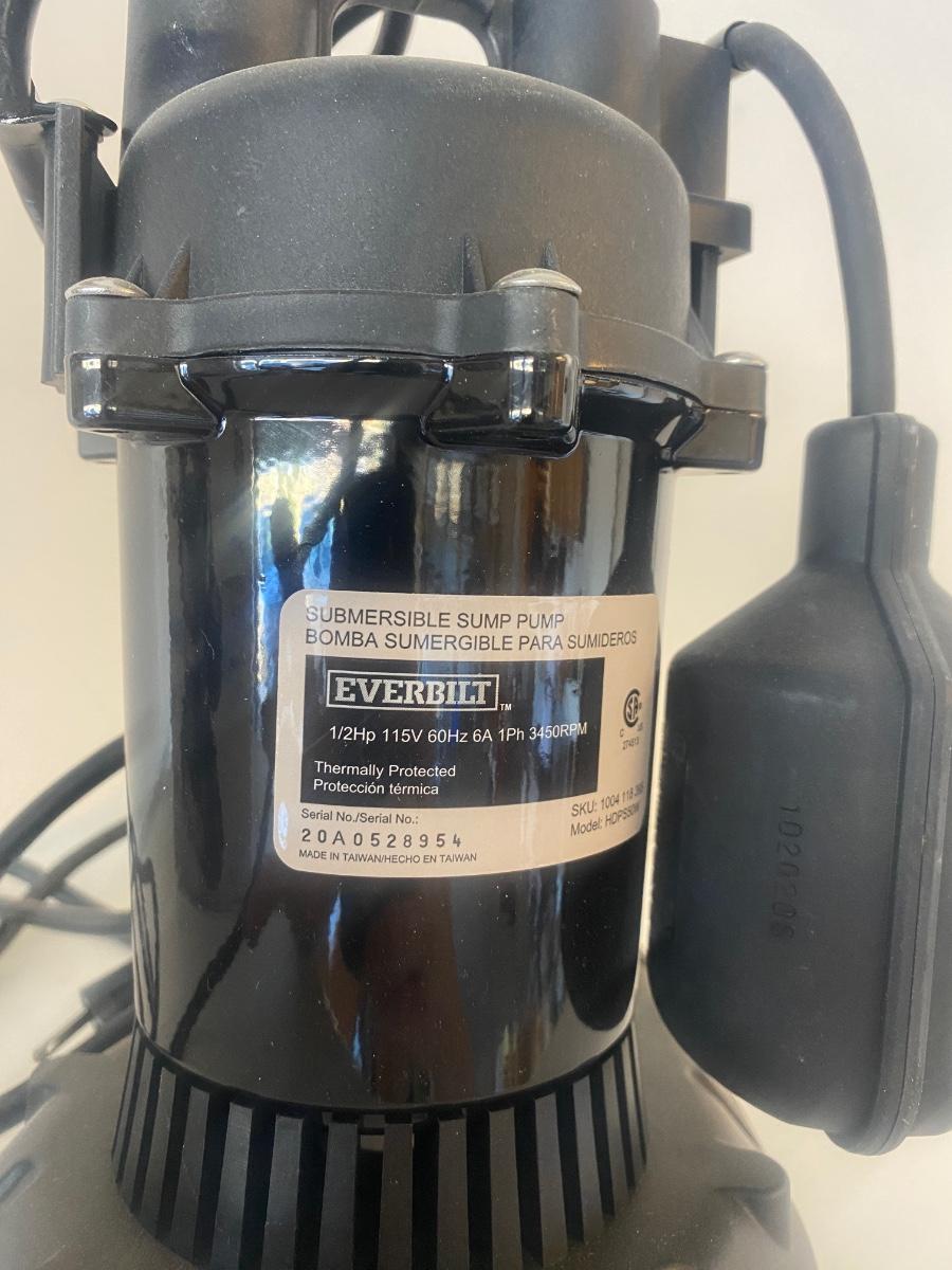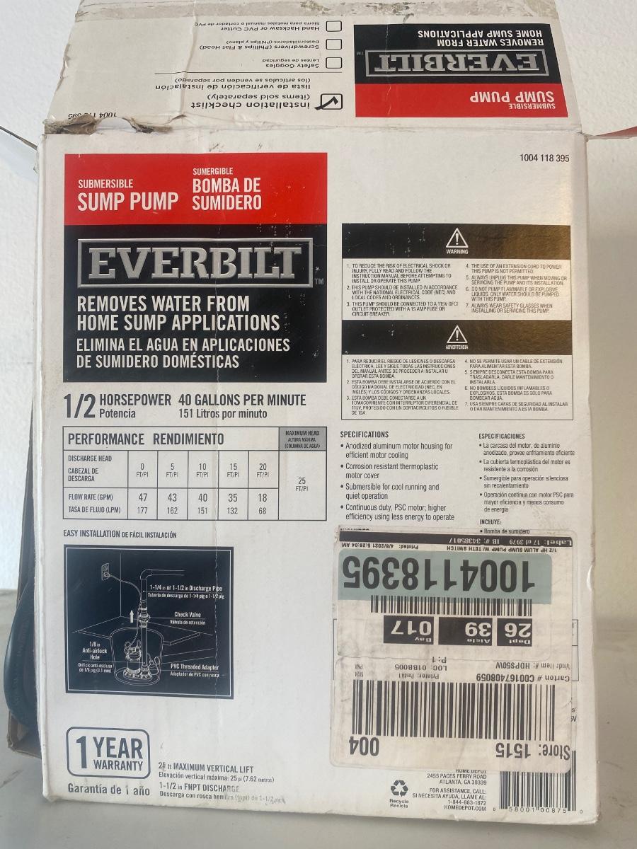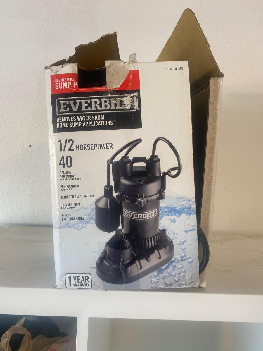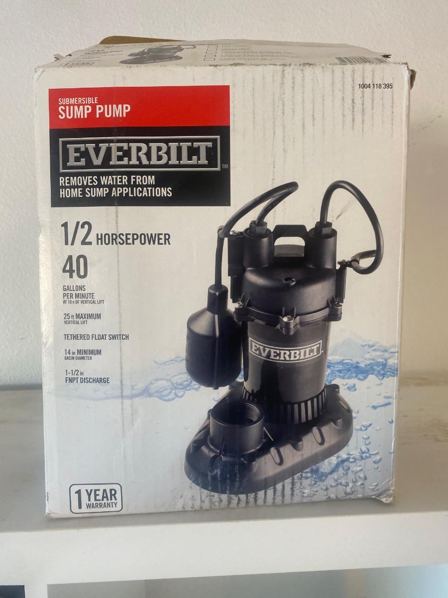 NIB EVERBILT 1/2HP, 40 GPM SUMP PUMP