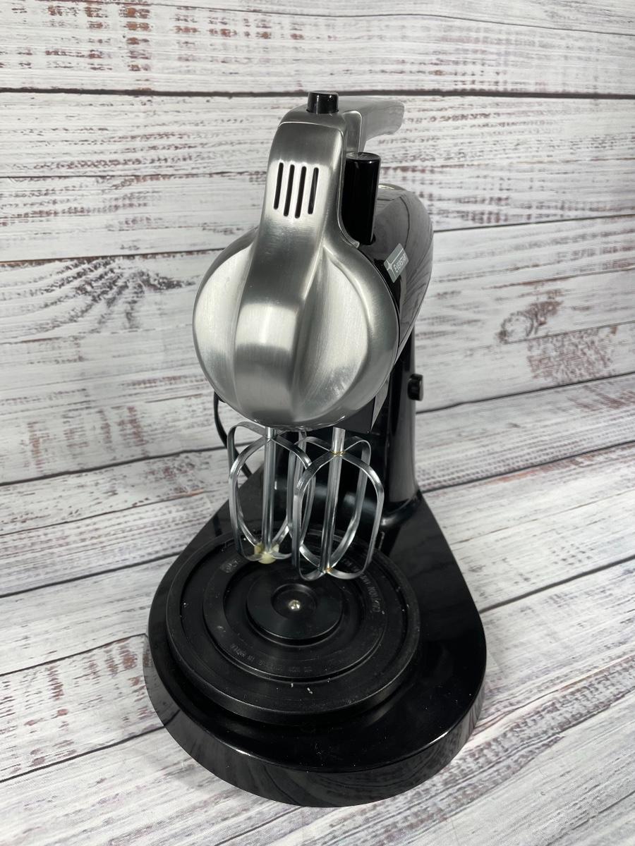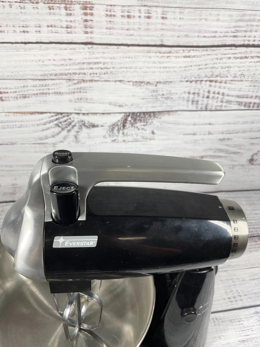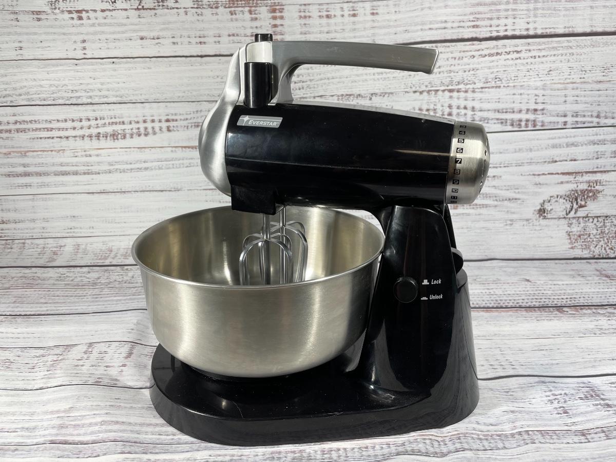 Mixer is In great condition. Item’s highest mixing level is a 12. It comes with a steel bowl to mix things in. Item plugs into a wall, the plug is not that long.