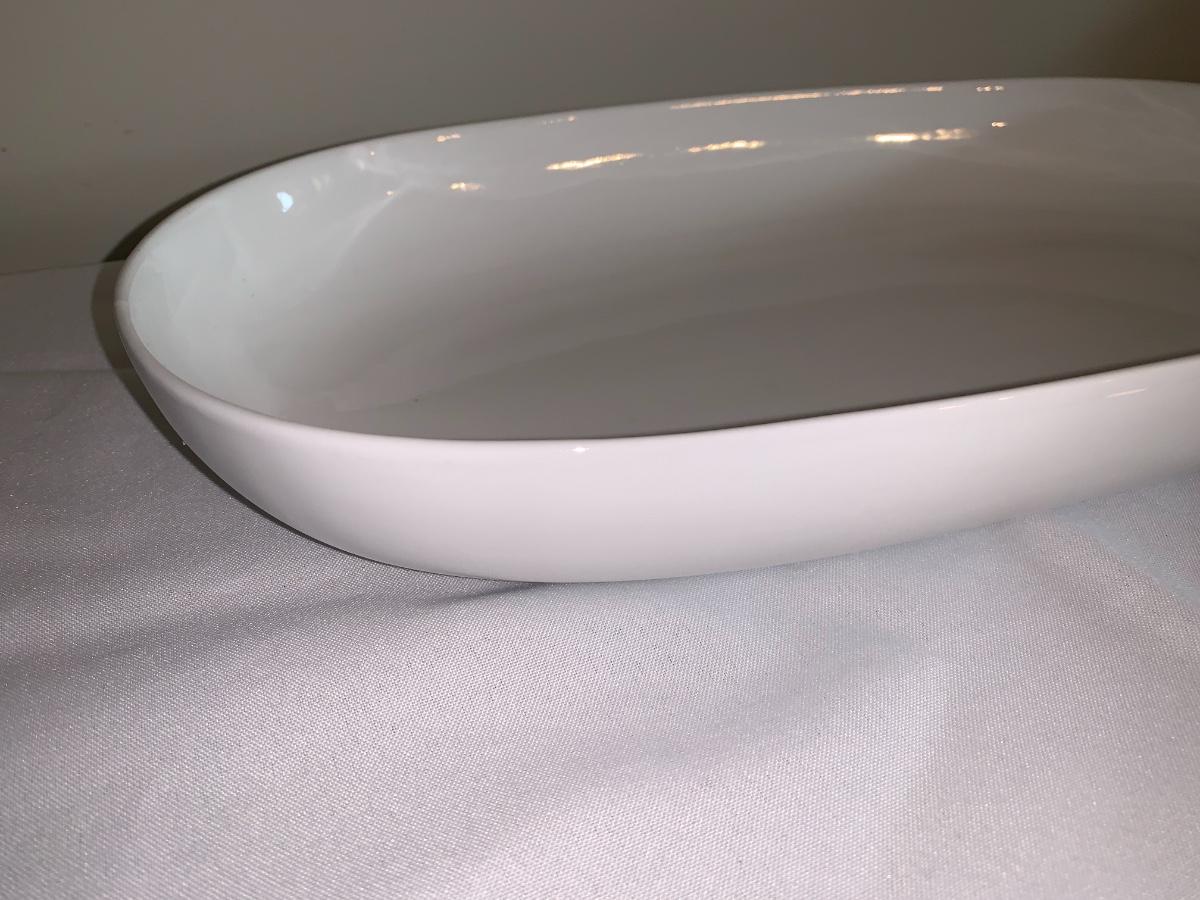 Everyday White by Fitz and Floyd Porcelain Rectangular Vegetable Bowl. Dishwasher, microwave and oven safe.17" long