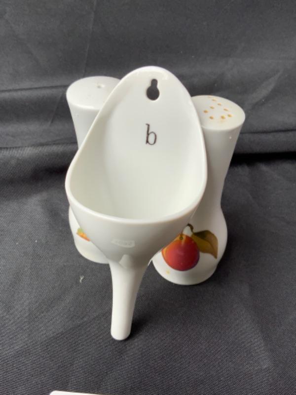 Evesham Porcelain Salt and Pepper Shakers (England) and wall pocket lot 1995