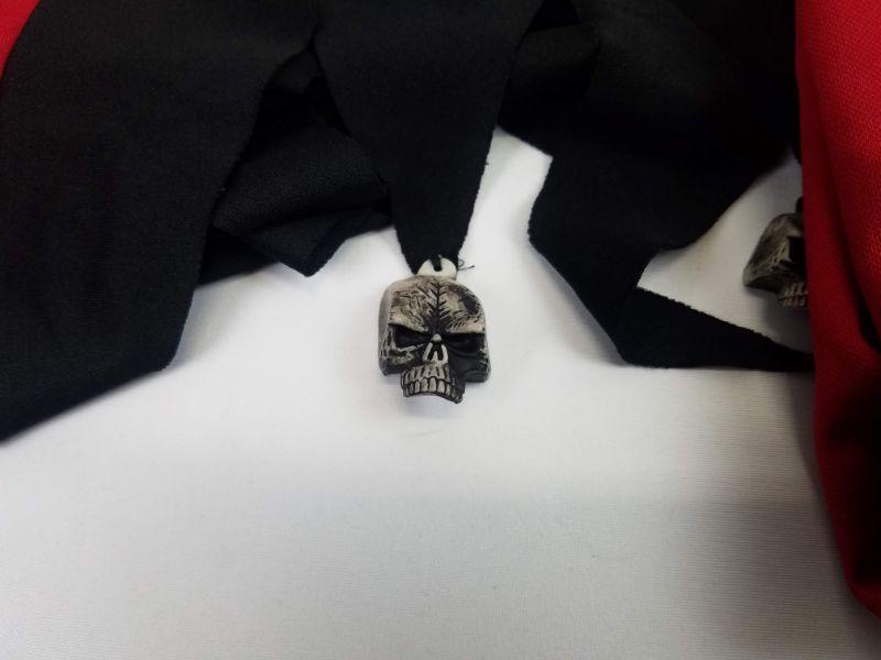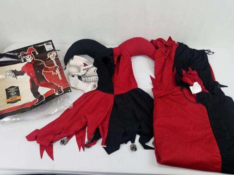 Evil Jester Adult X-Large Costume, Black & Red. Includes Shirt, Pants, Headpiece, Mask, & Waist Sash. Like new, clean