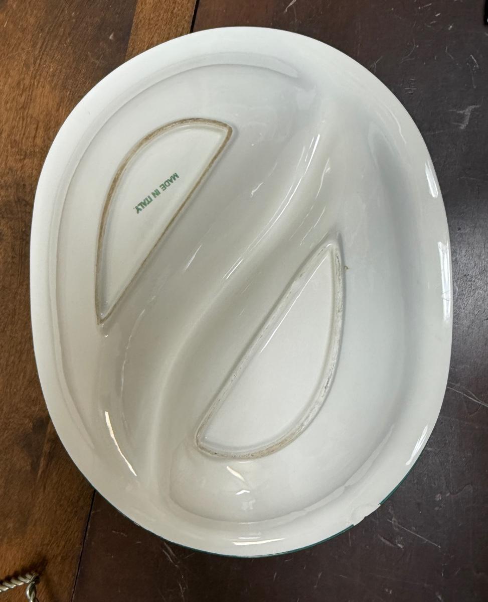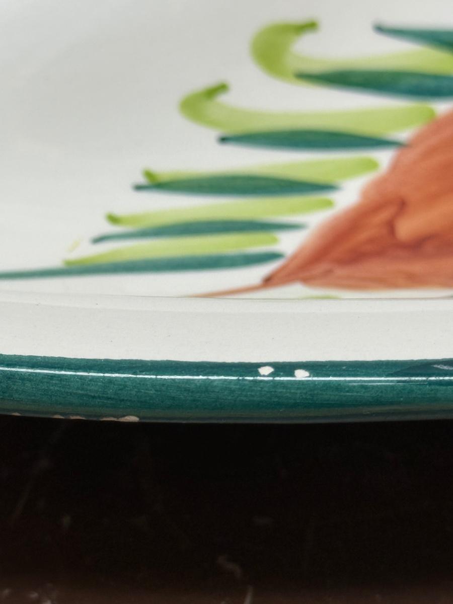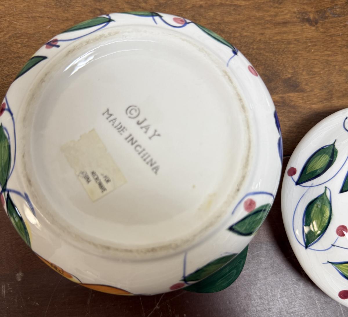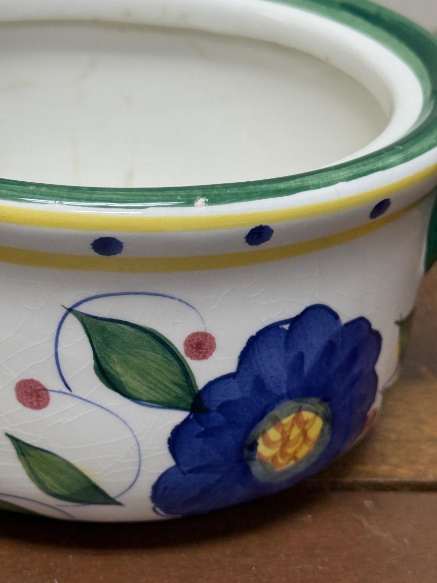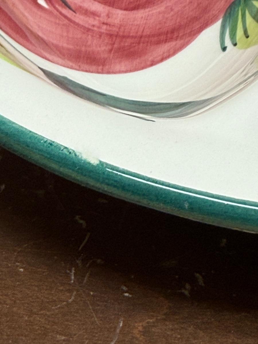 There are chips on the edges of serving bowl, see photos. Otherwise in good used condition.
