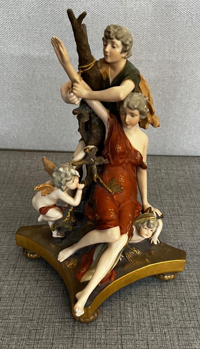 Not sure if he's tying her up or untying? Good overall condition late 19th century piece nicely done. Turin EW Vienna Austria. Earnst Wahliss