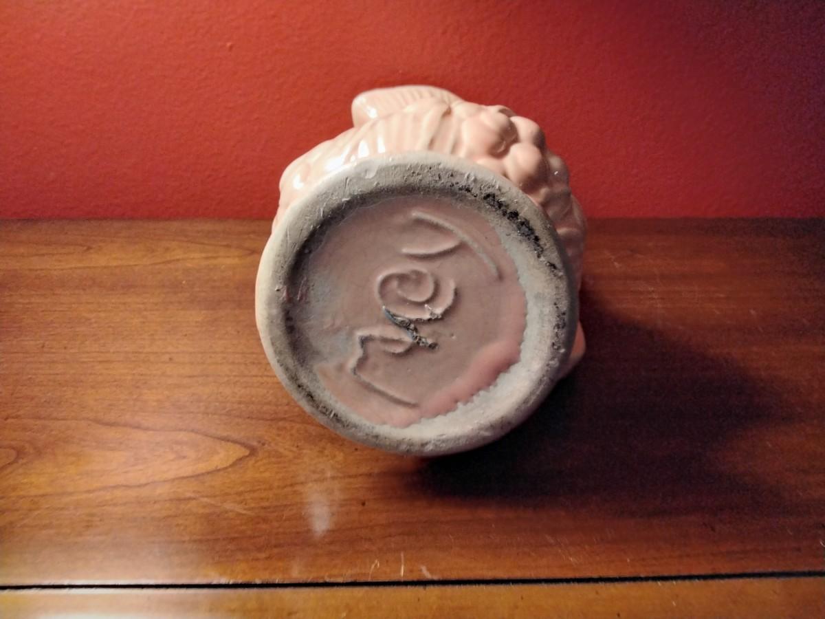 Here's a 1940's McCoy vase made with a crisp mold and a hi-gloss salmon color finish. It's 9x5.75x4.5 inches. No Chips, Cracks, or Repairs of any sort. Tier 2.