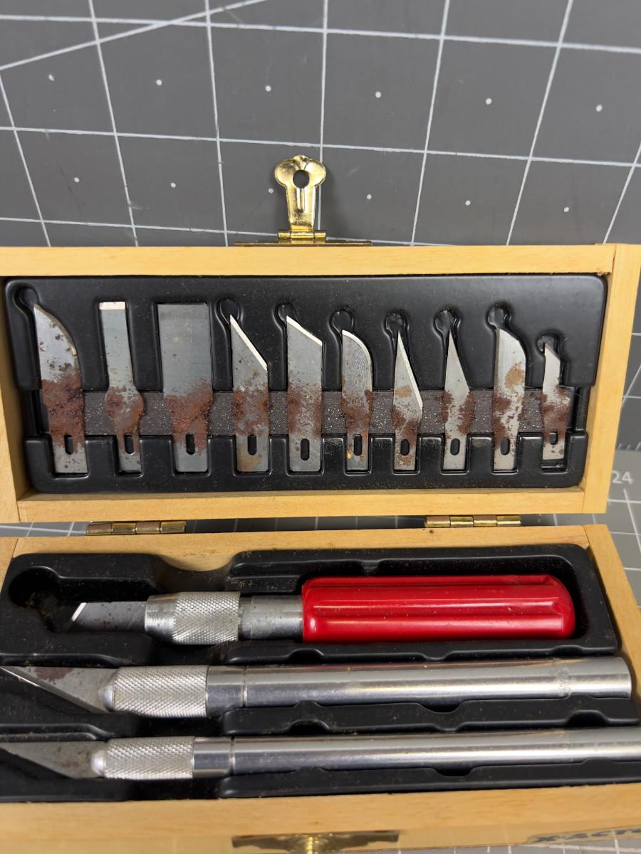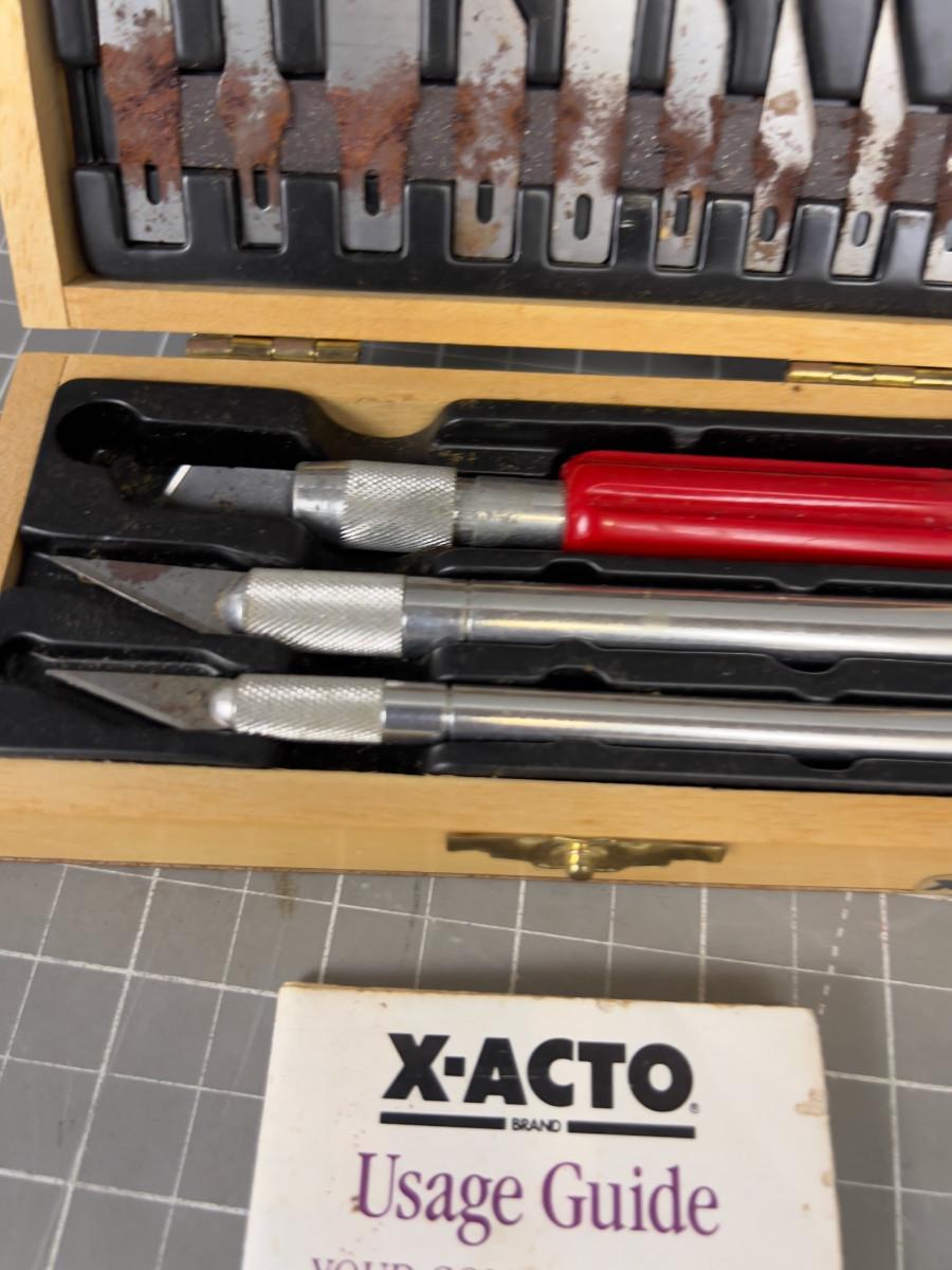 Exacto Knife Set in Wood Case.
