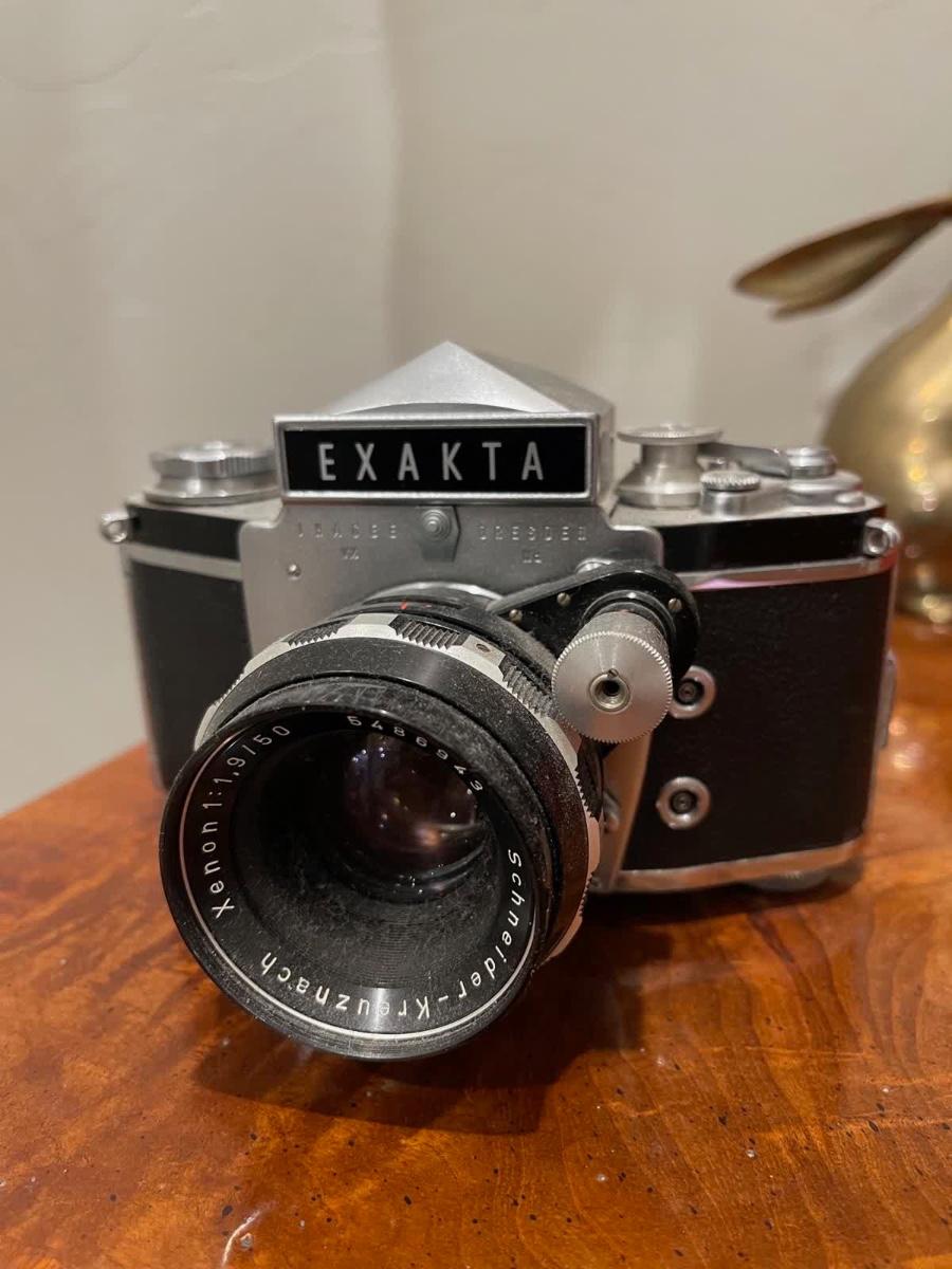 Exakta Varex IIb 35mm SLR camera with a Schneider-Kreuznach Xenon 1:1.9/50 lens.