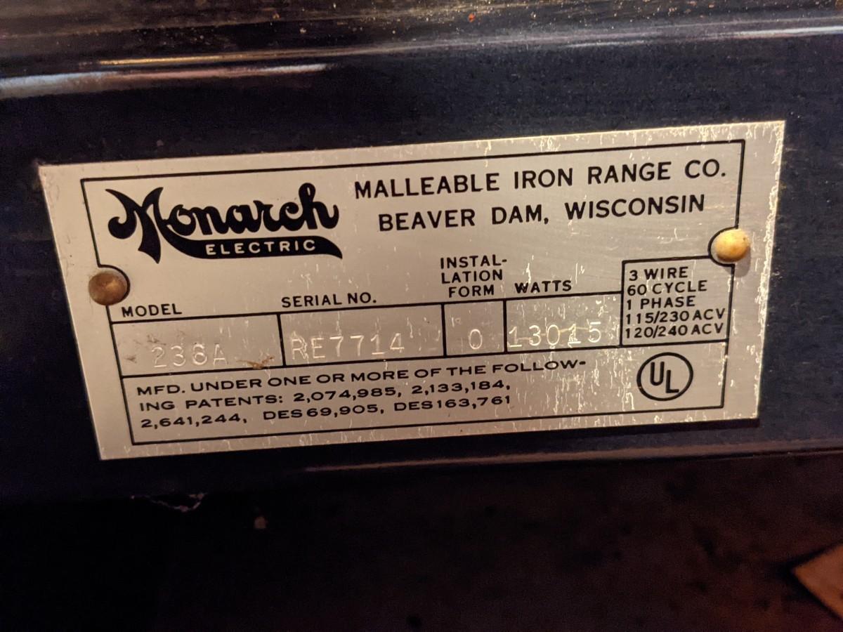 Exc Cond Retro Monarch Electric Range. Made in Beaver Dam!
