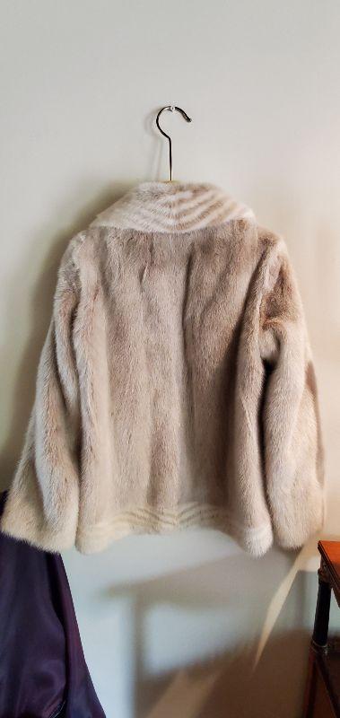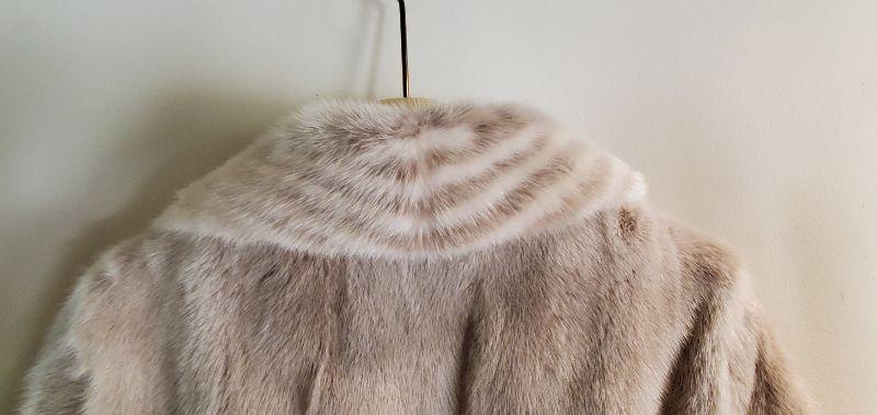 Antique blond mink fur coat with elegant trim detail. No shedding or wear. Comes from a smoke free home, no odors.
