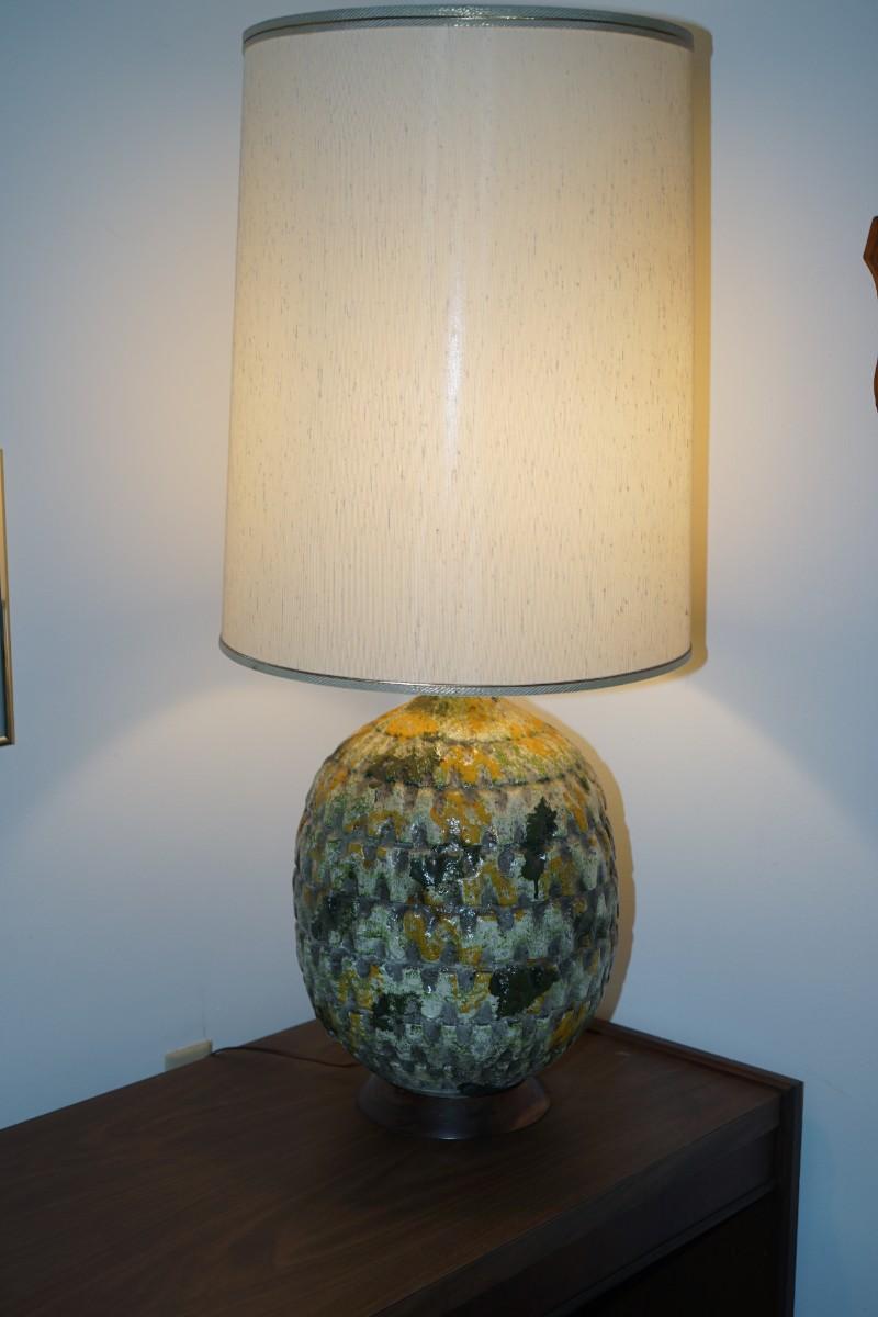 shade is clean slightly discolored from age but very nice condition. This is a larger lamp .
