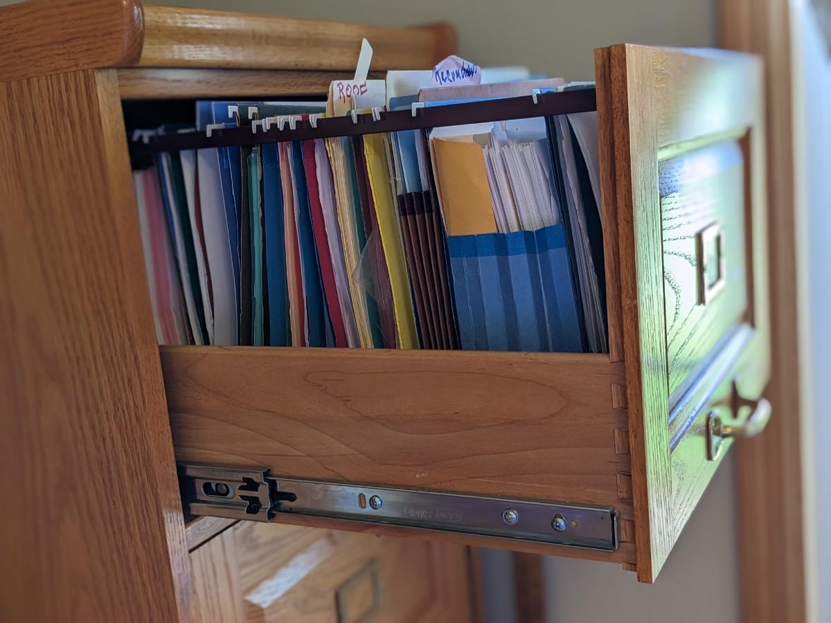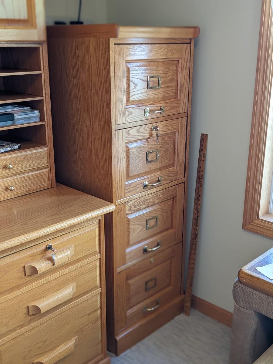Solid unit, quality grade pulls and glides. If downsizing paper, this would make a tasteful storage to secure items.