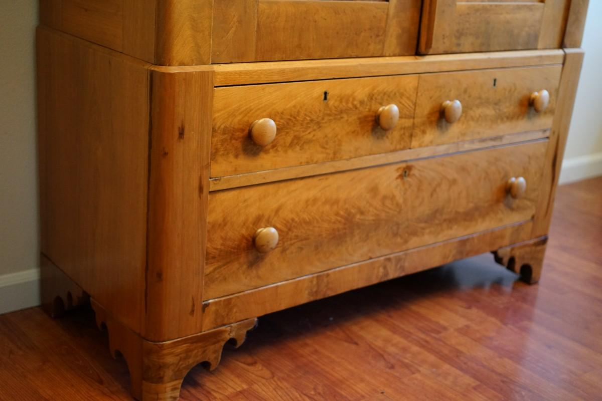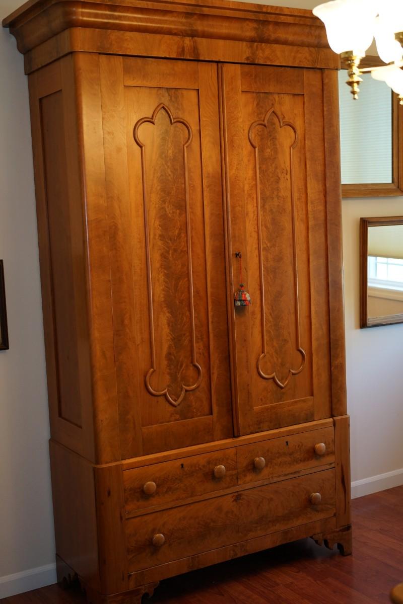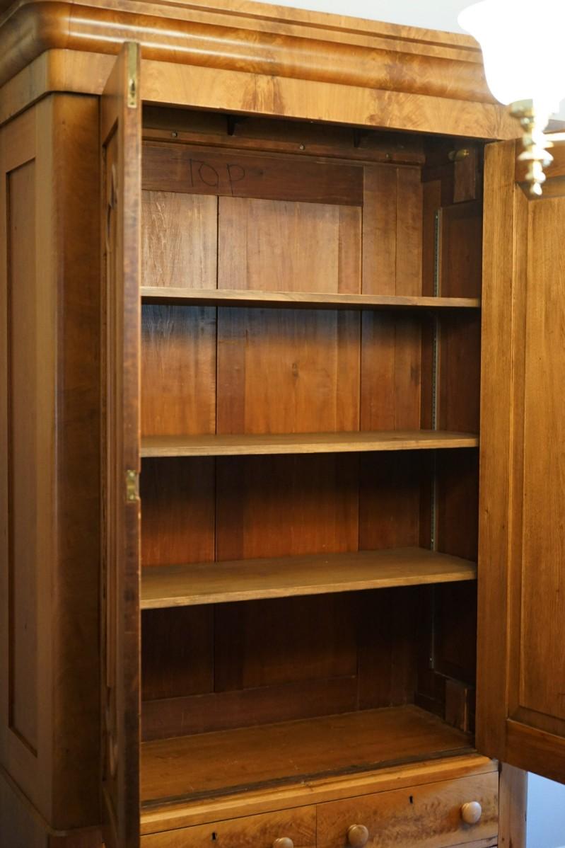 EXCEPTIONAL MID 19TH CENTURY MAHOGANY WARDROBE CABINET/TWO PIECE/DRAWERS AND SHELVES