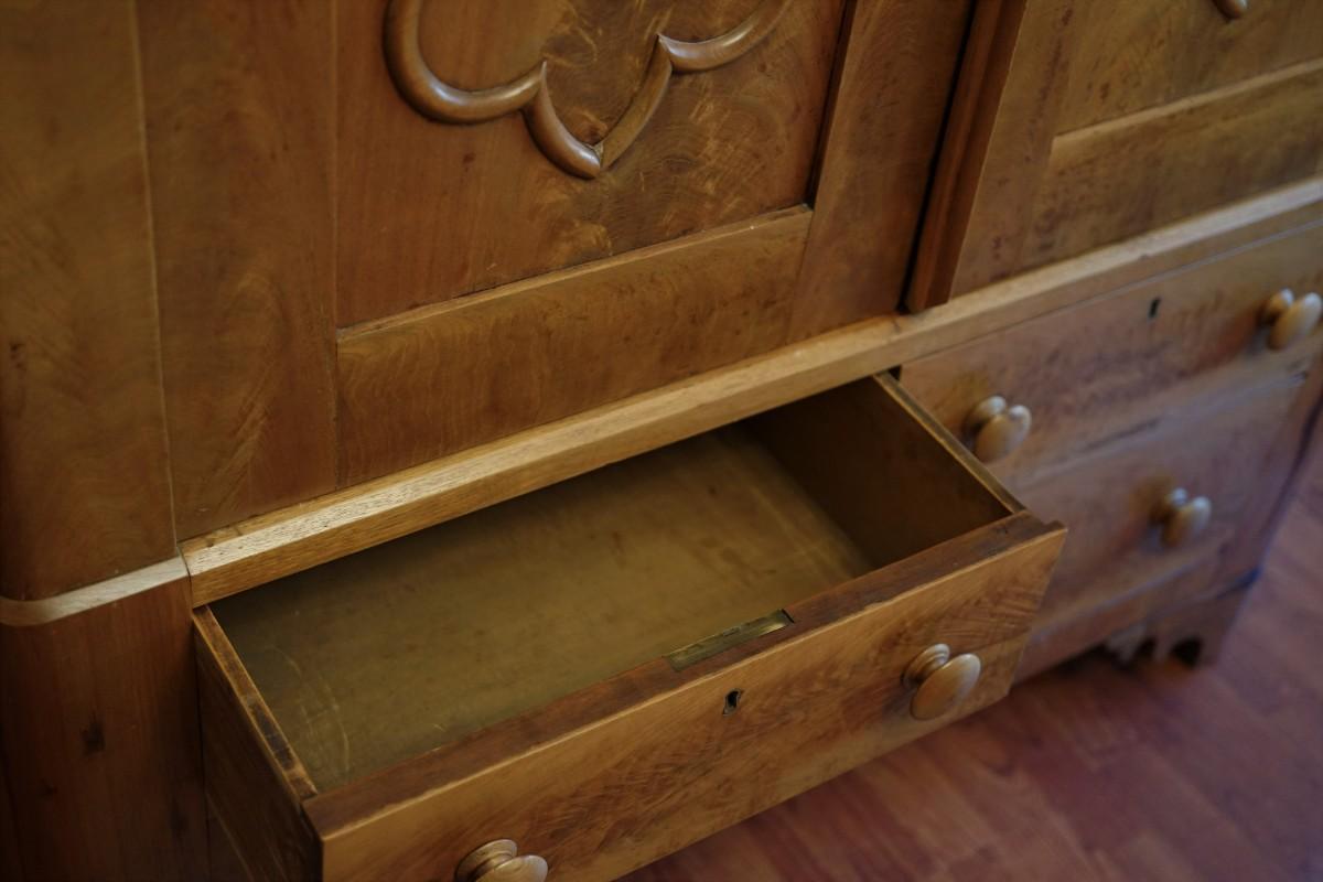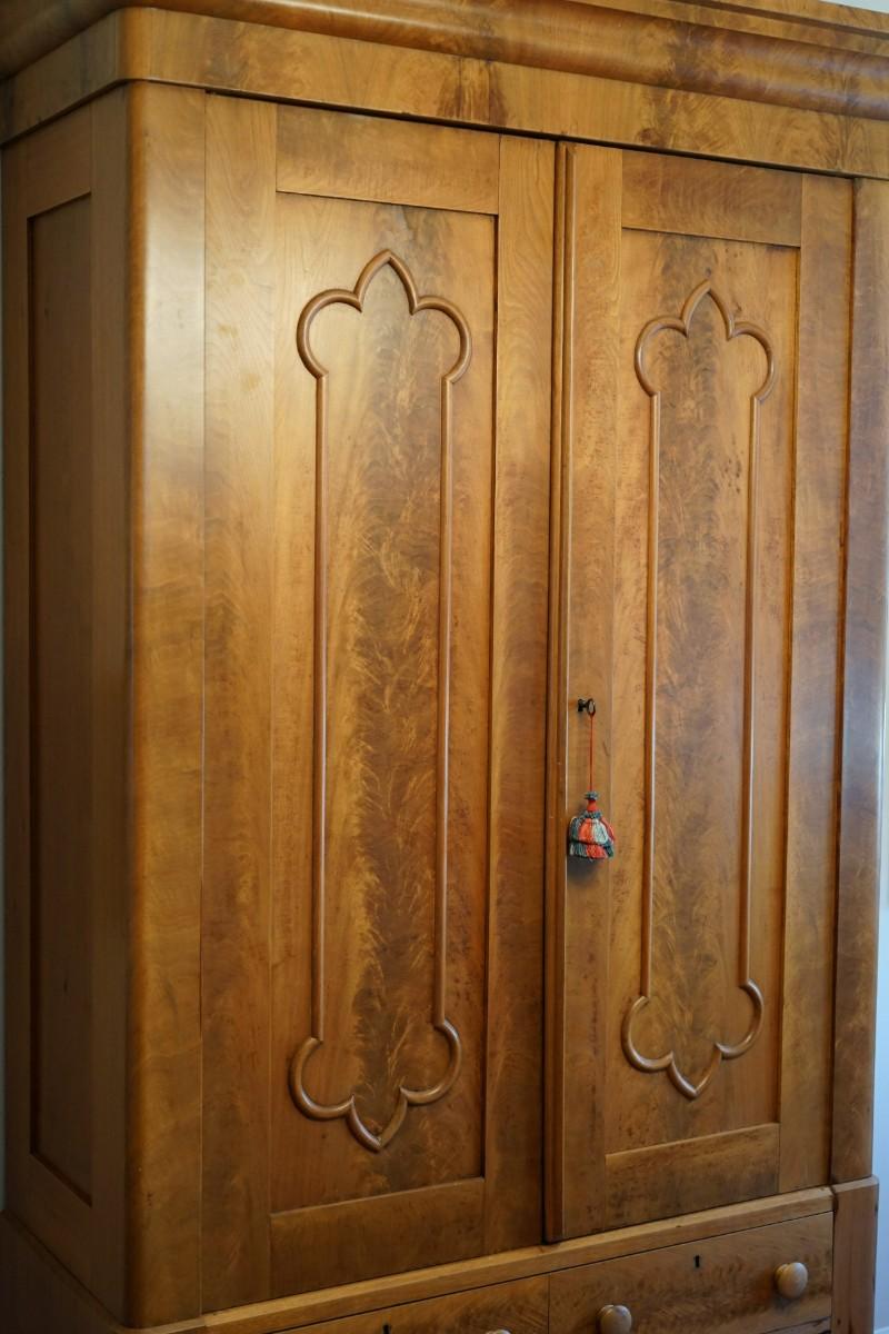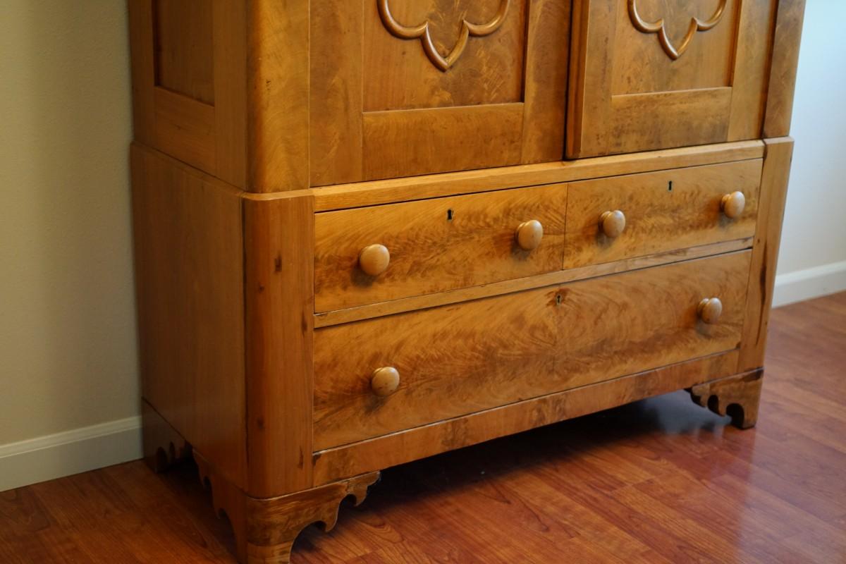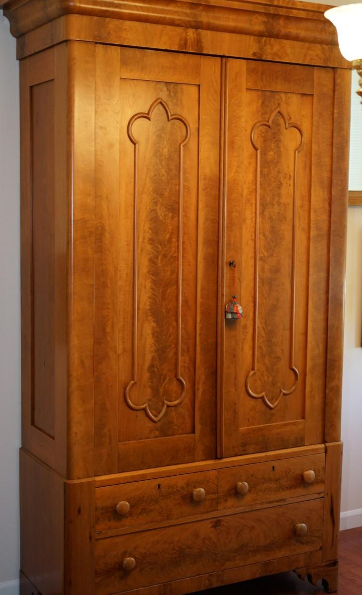 EXCEPTIONAL MID 19TH CENTURY MAHOGANY WARDROBE CABINET/TWO PIECE/DRAWERS AND SHELVES